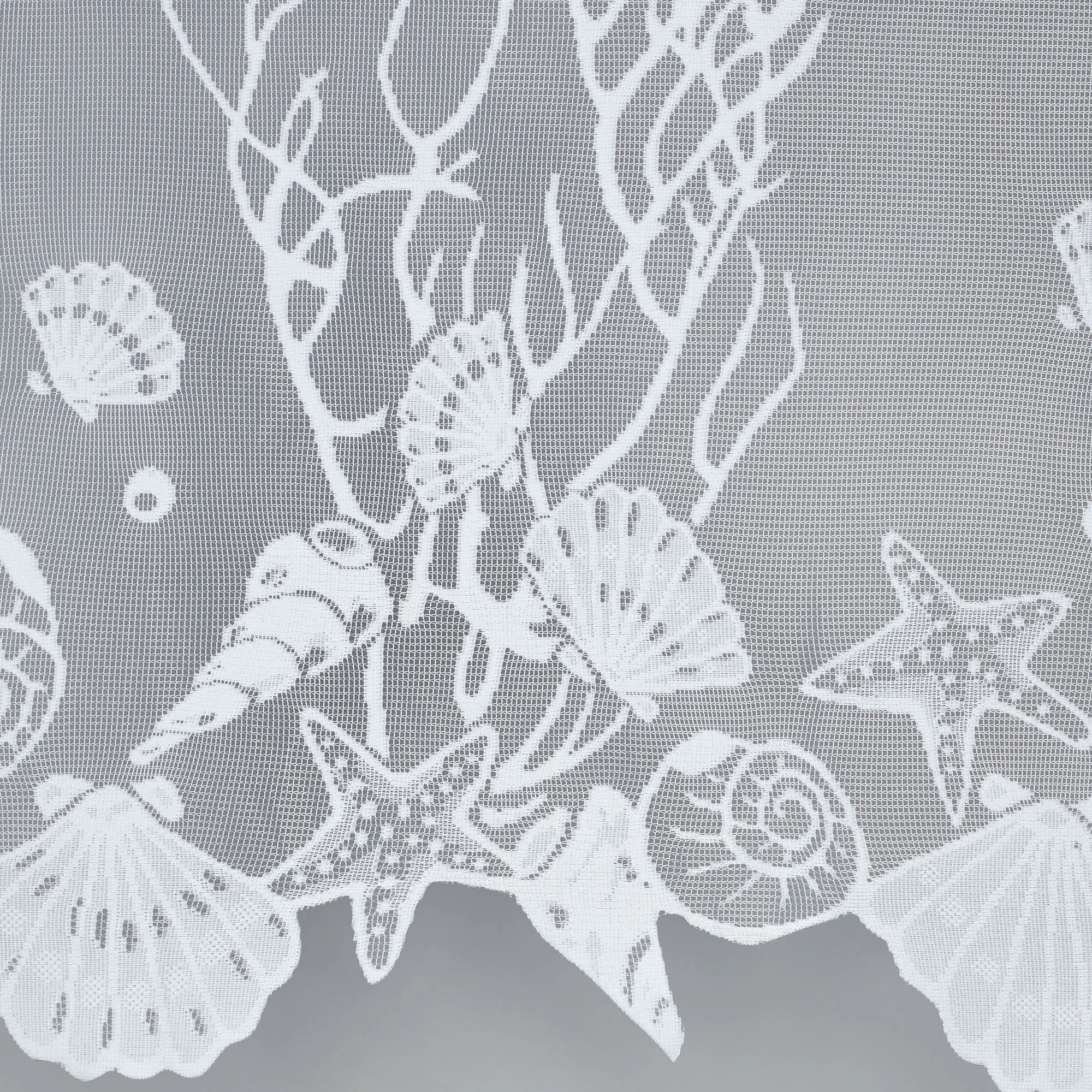The Sea Treasures Lace Window Treatment is made of polyester. Imported.