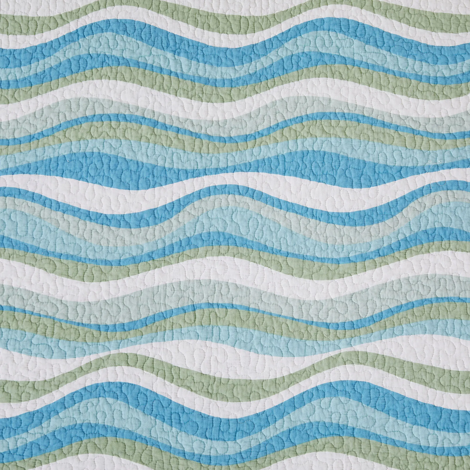 The Mini Quilt Set includes quilt and sham(s). Quilt has printed sea motifs on a white vermicelli-quilted background and bound ends; reverses to printed wavy line designs. Sham(s) mimics the quilt and has bound ends and a French back closure(s). For mini quilt set, choose Twin, Queen, or King.