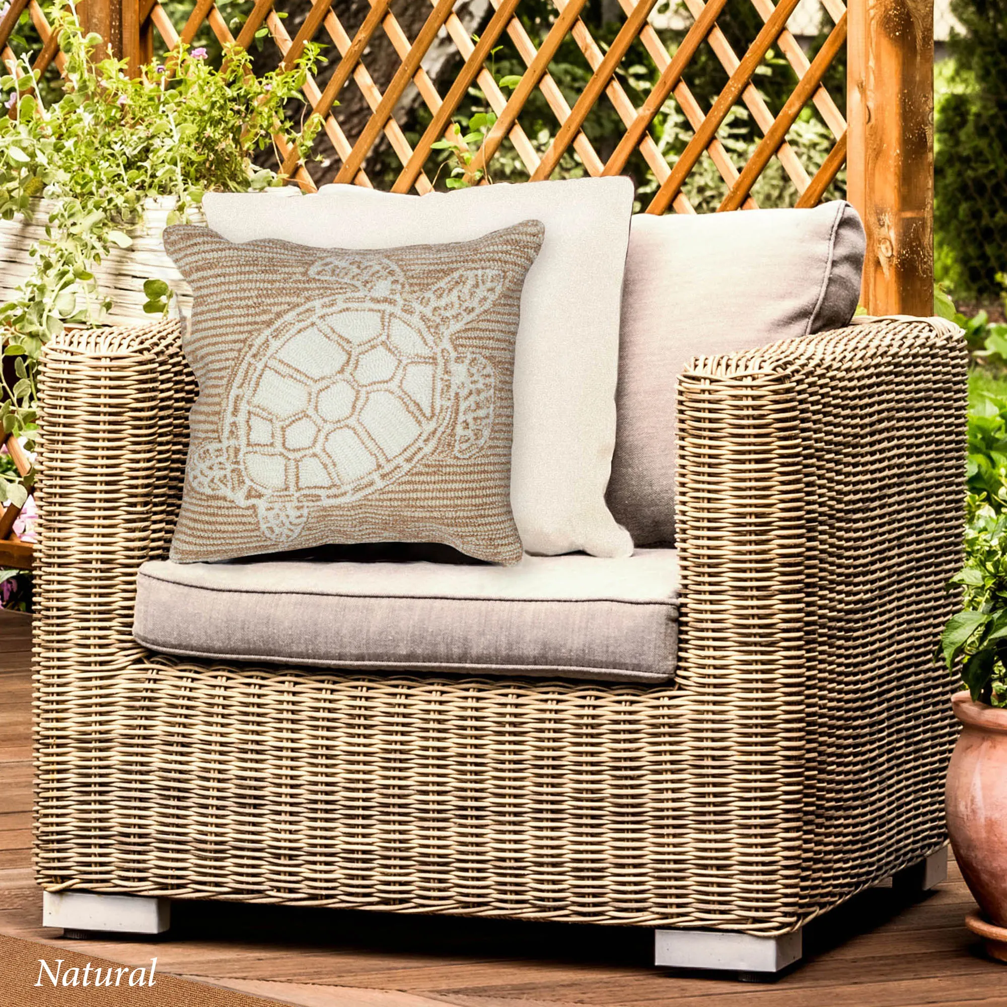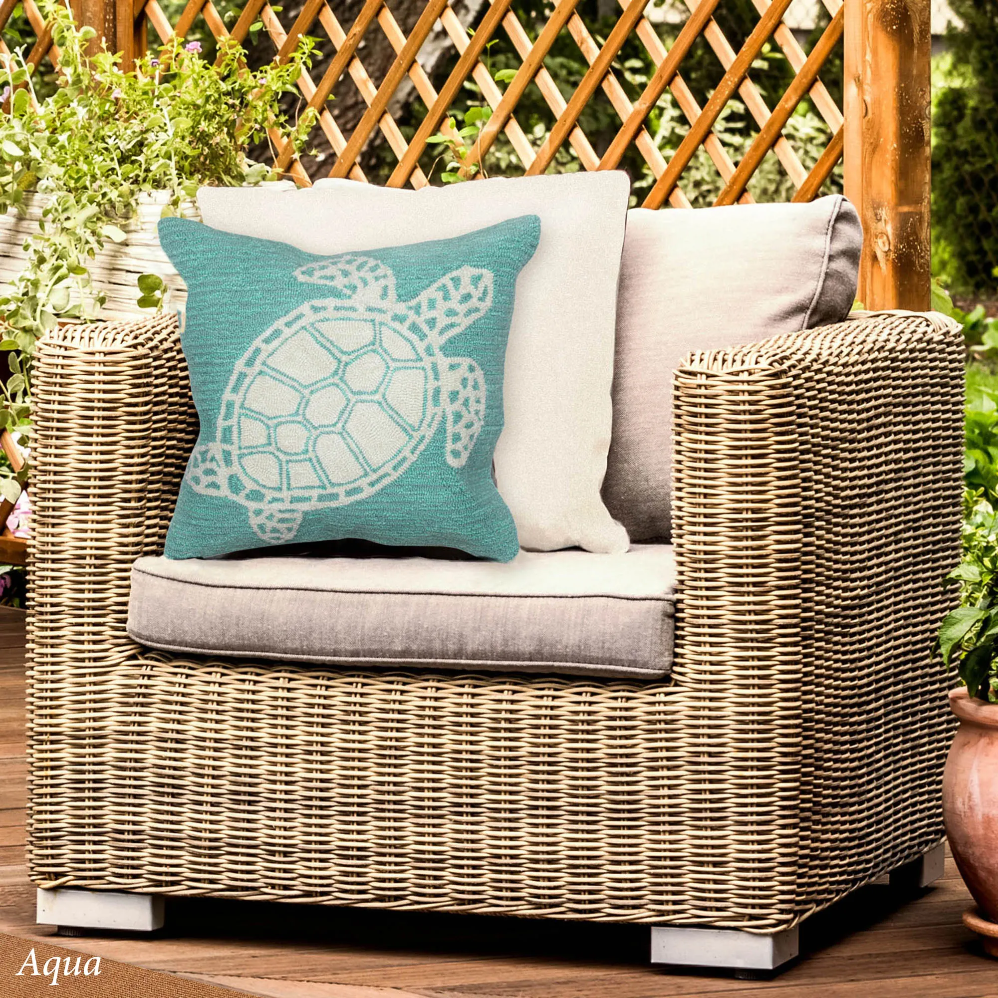 Sea Turtle Coastal Everywear(TM) Indoor Outdoor Decorative Pillow by Liora Manne