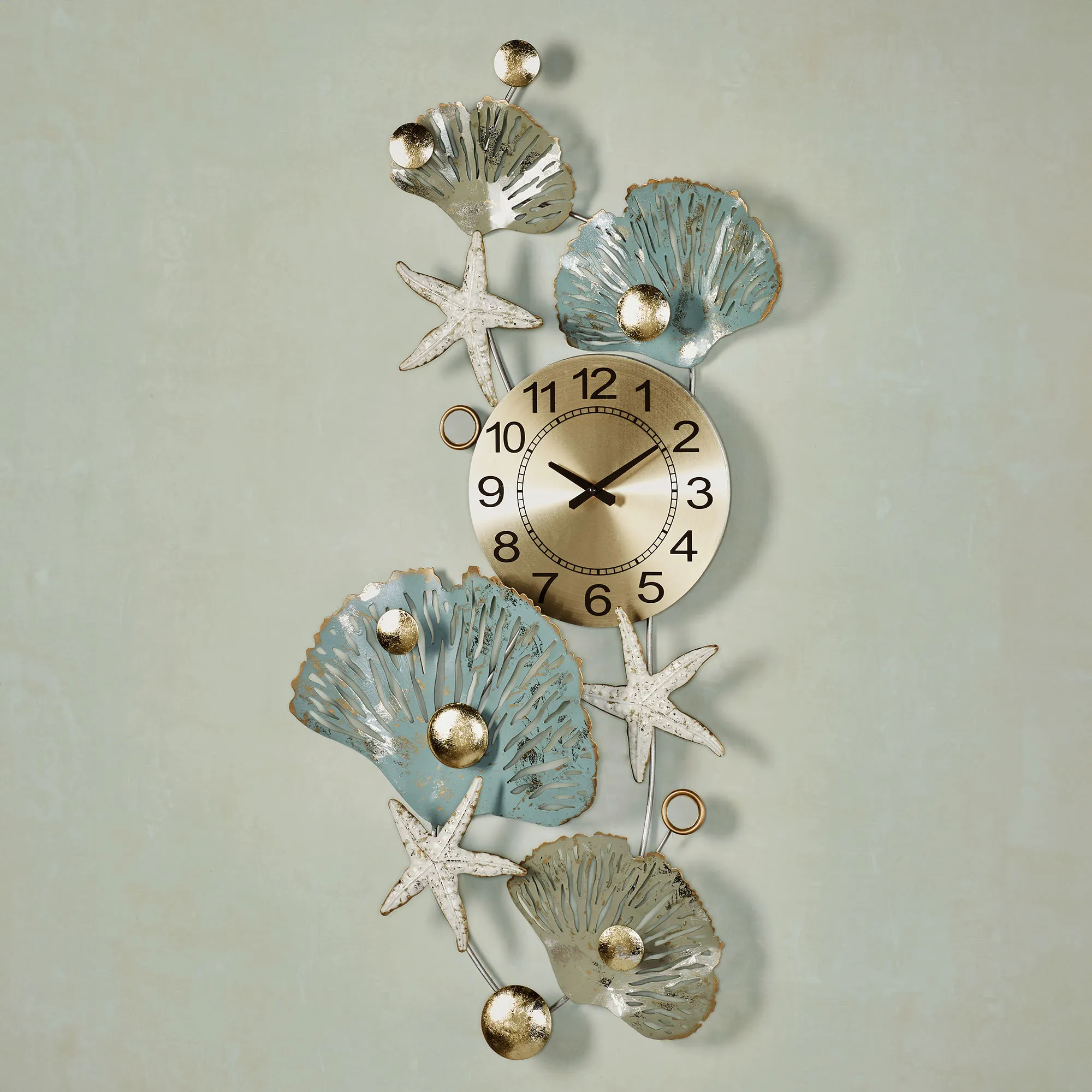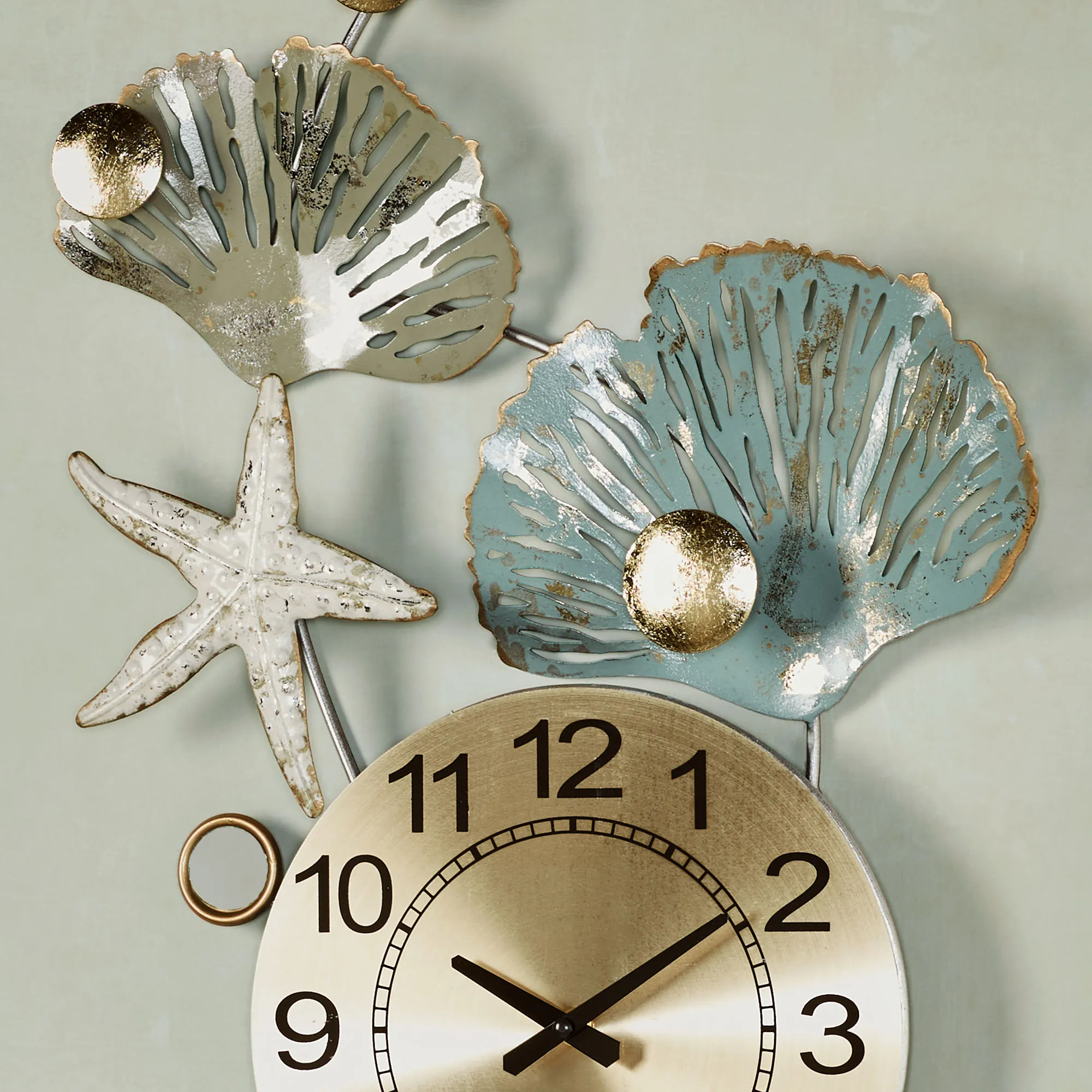Seafan and Starfish Coastal Metal Wall Art Clock