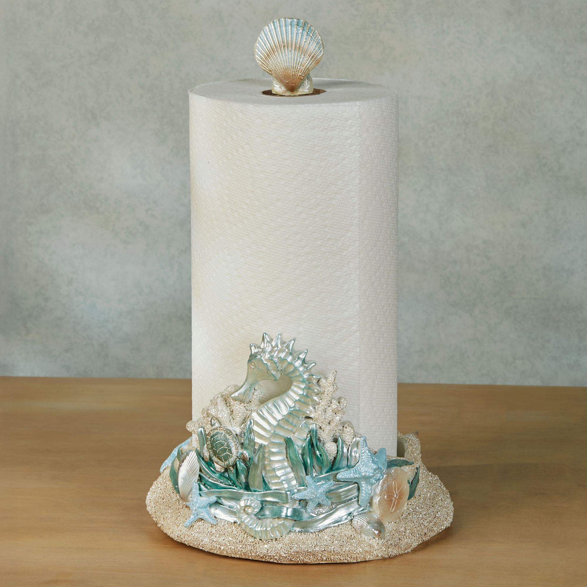 Seahorse Sea Turtle Pearlescent Coastal Kitchen Countertop Paper Towel Holder