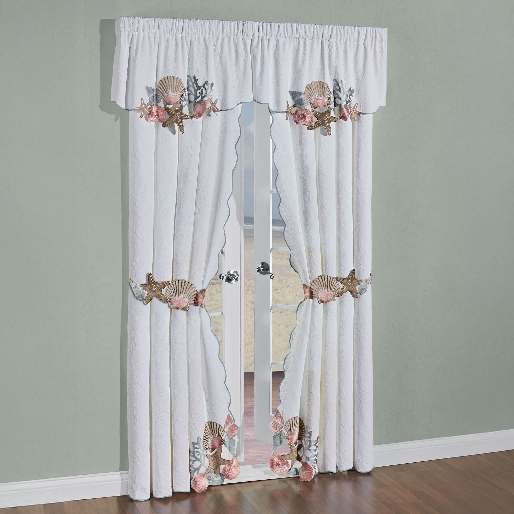 Seashell Medley White Woven Matelasse Beach Coastal Ascot Window Treatment