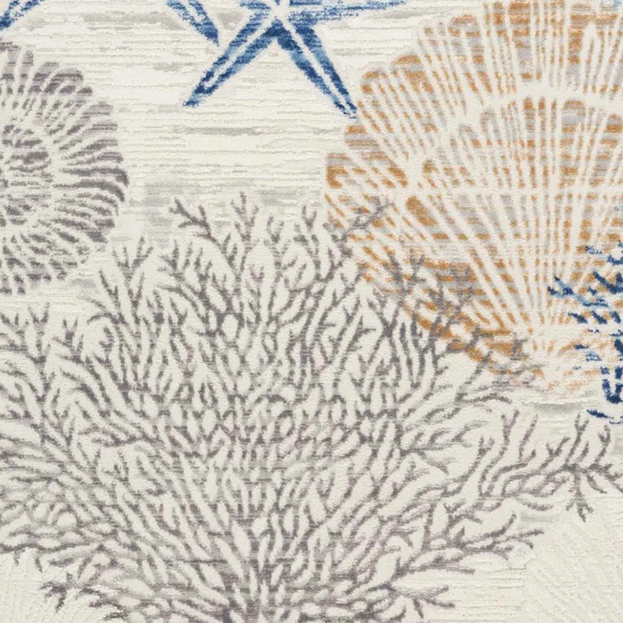 The Seaside Treasures Coastal Rug is polypropylene/polyester with a latex backing. Imported.