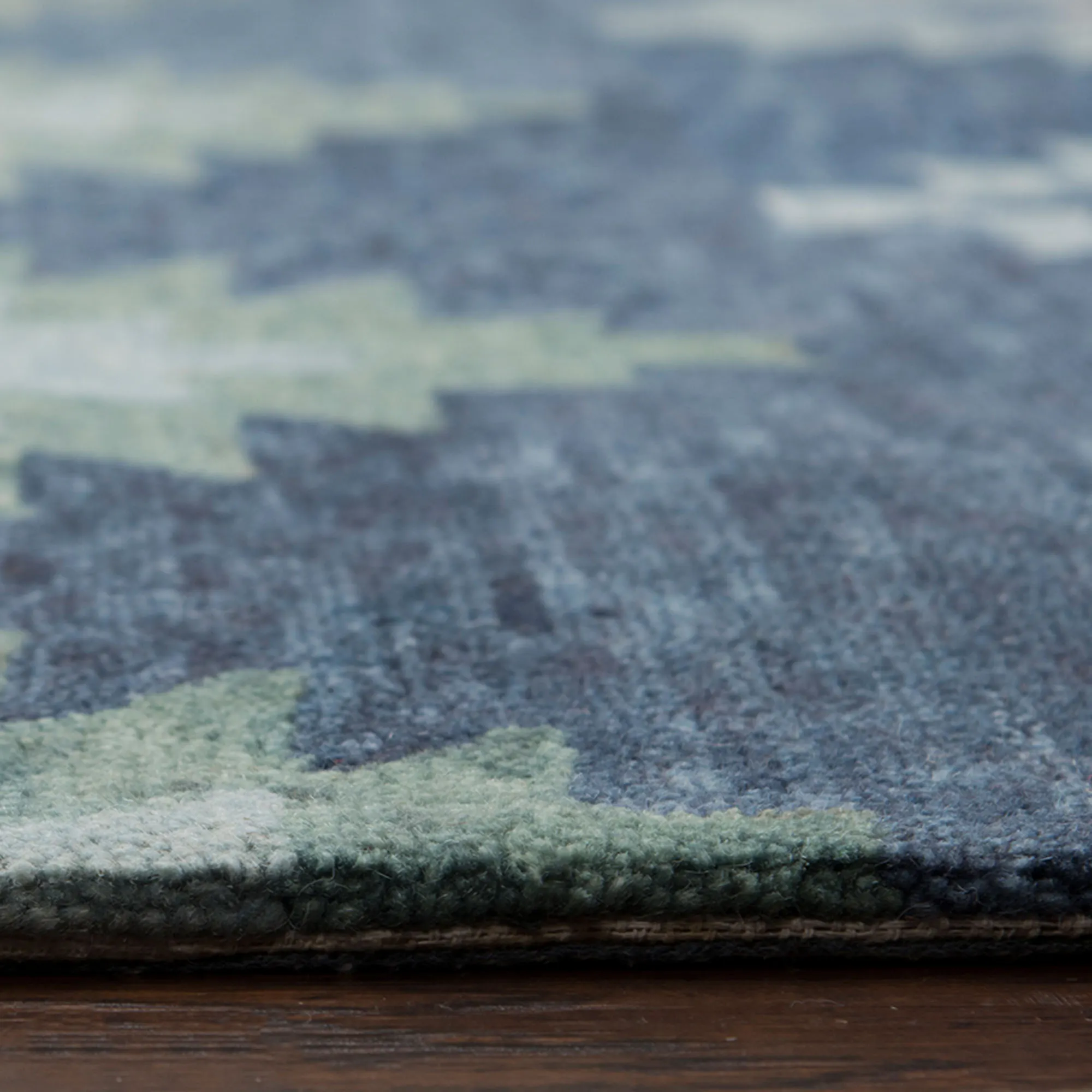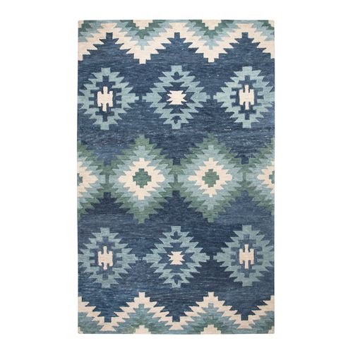 Temper the bold spirit of the Southwest with the cool hues of the Selena Southwest Rug. Hand-tufted from pure wool, the .6" thick rug features classic Southwestern geometric diamonds and angles in a hand-washed and hand-serged rug design. Indigo blue, sky blue, ivory, and green shades fill the rug with mottled tones. Backing is cotton canvas. We recommend professional cleaning by a rug cleaner. Imported.