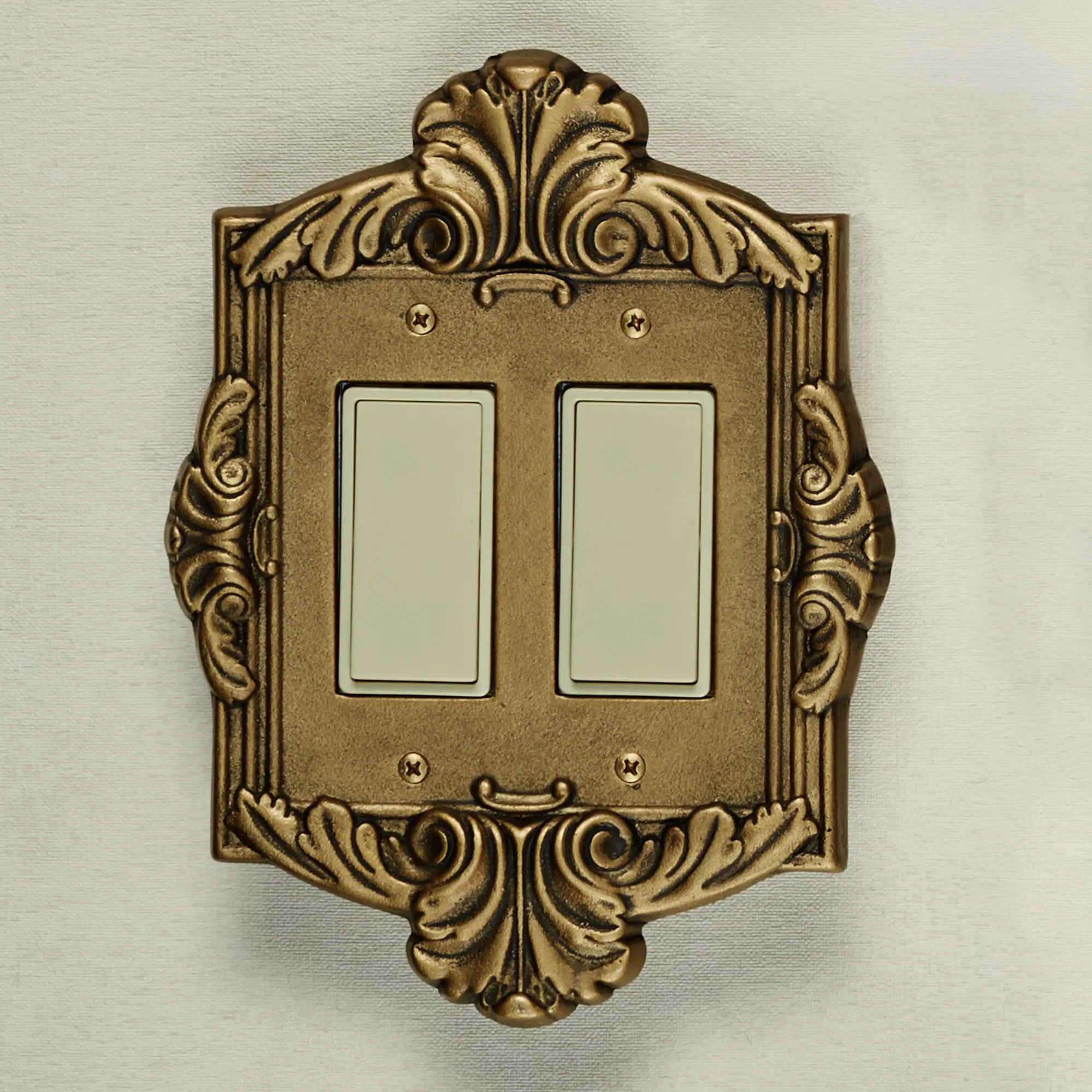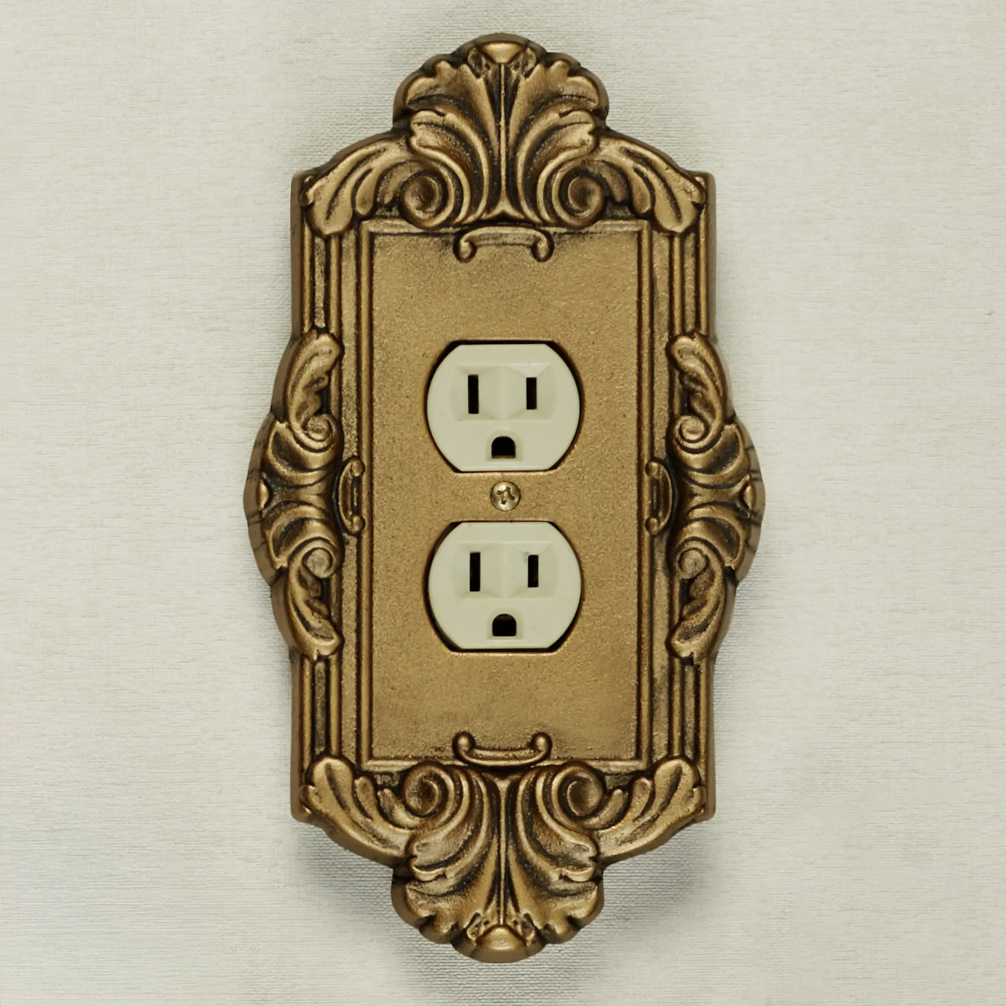 Elegantly decorate any living space with the traditional look of the Sephoria Aged Gold Switchplates. These hand-cast aluminum accents have ornate motifs and are beautifully hand-finished in aged gold. The Dimmer/Rocker Switch will also fit a dimmer switch and GFCI outlet. Choose Single Switch, Double Switch, Single Outlet (two sockets), Single Dimmer/Rocker, or Double Dimmer/Rocker. Do not over-tighten the screws.