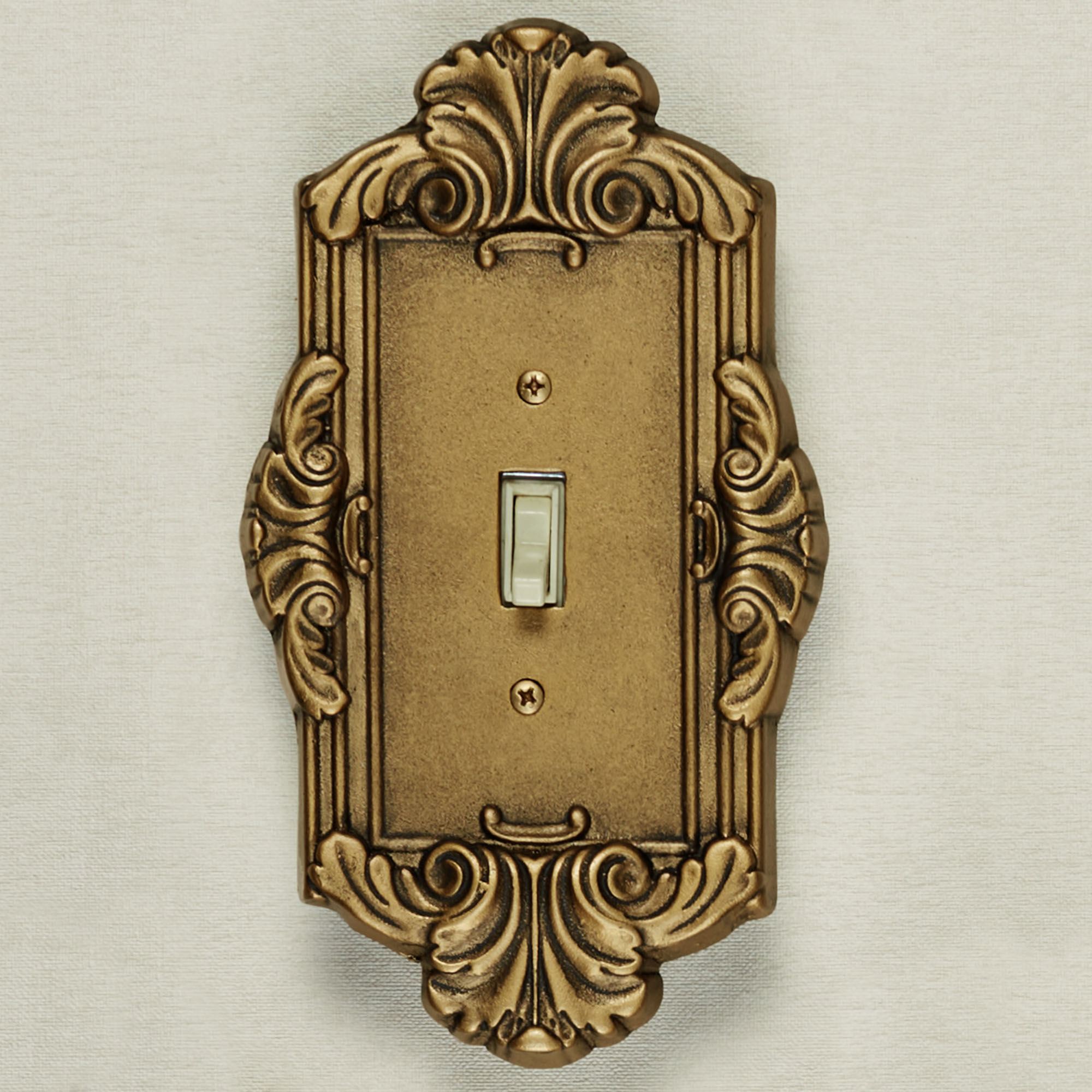 Elegantly decorate any living space with the traditional look of the Sephoria Aged Gold Switchplates. These hand-cast aluminum accents have ornate motifs and are beautifully hand-finished in aged gold. The Dimmer/Rocker Switch will also fit a dimmer switch and GFCI outlet. Choose Single Switch, Double Switch, Single Outlet (two sockets), Single Dimmer/Rocker, or Double Dimmer/Rocker. Do not over-tighten the screws.