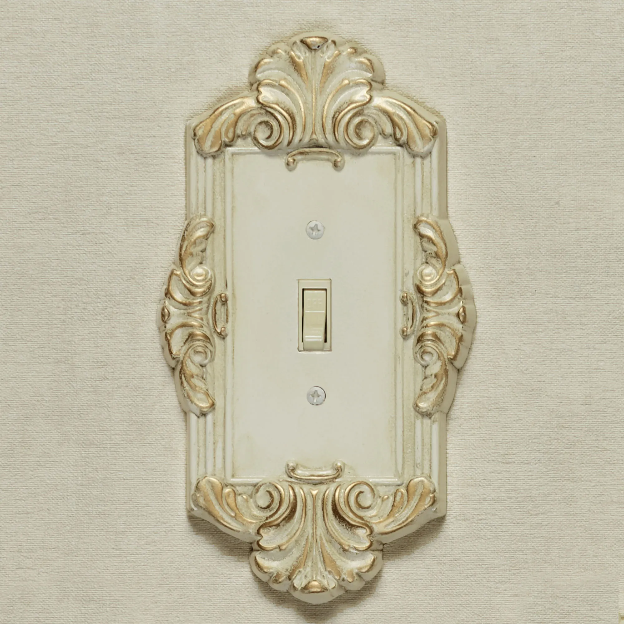 Elegantly decorate any living space with the traditional look of the Sephoria Ivory/Gold Switchplates. These hand-cast aluminum accents have ornate motifs and are beautifully hand-finished in ivory/gold. The Dimmer/Rocker Switch will also fit a dimmer switch and GFCI outlet. Choose Single Switch, Double Switch, Single Outlet (two sockets), Single Dimmer/Rocker, or Double Dimmer/Rocker. Do not over-tighten the screws.