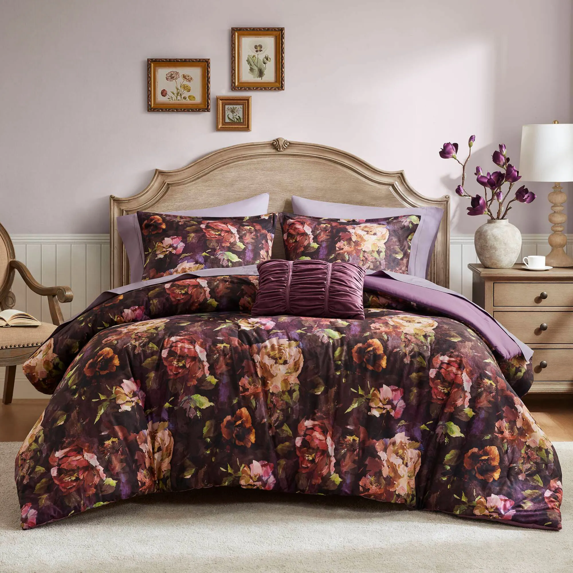 Seraphina Floral Purple Velvet 4 pc Comforter Bed Set by Madison Park