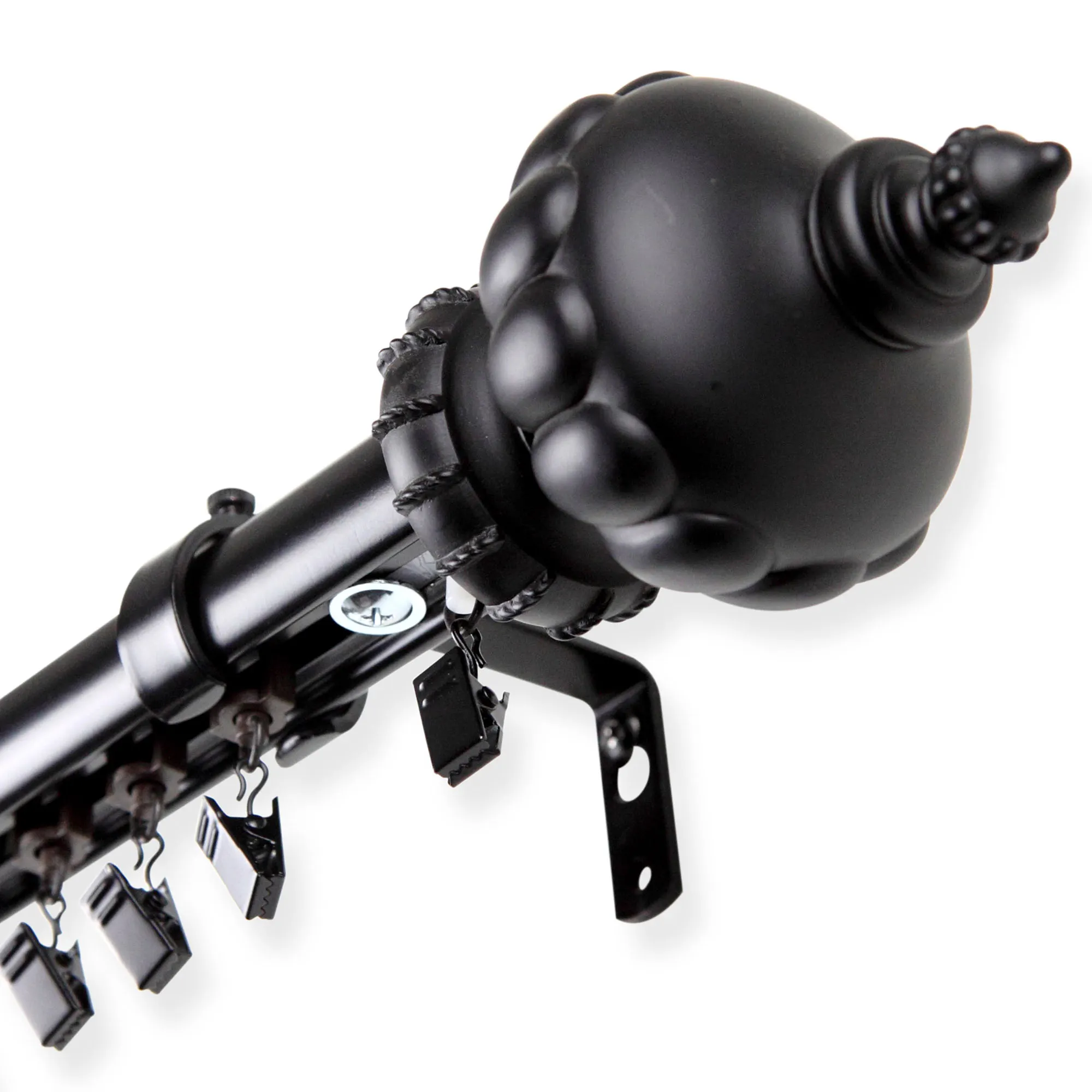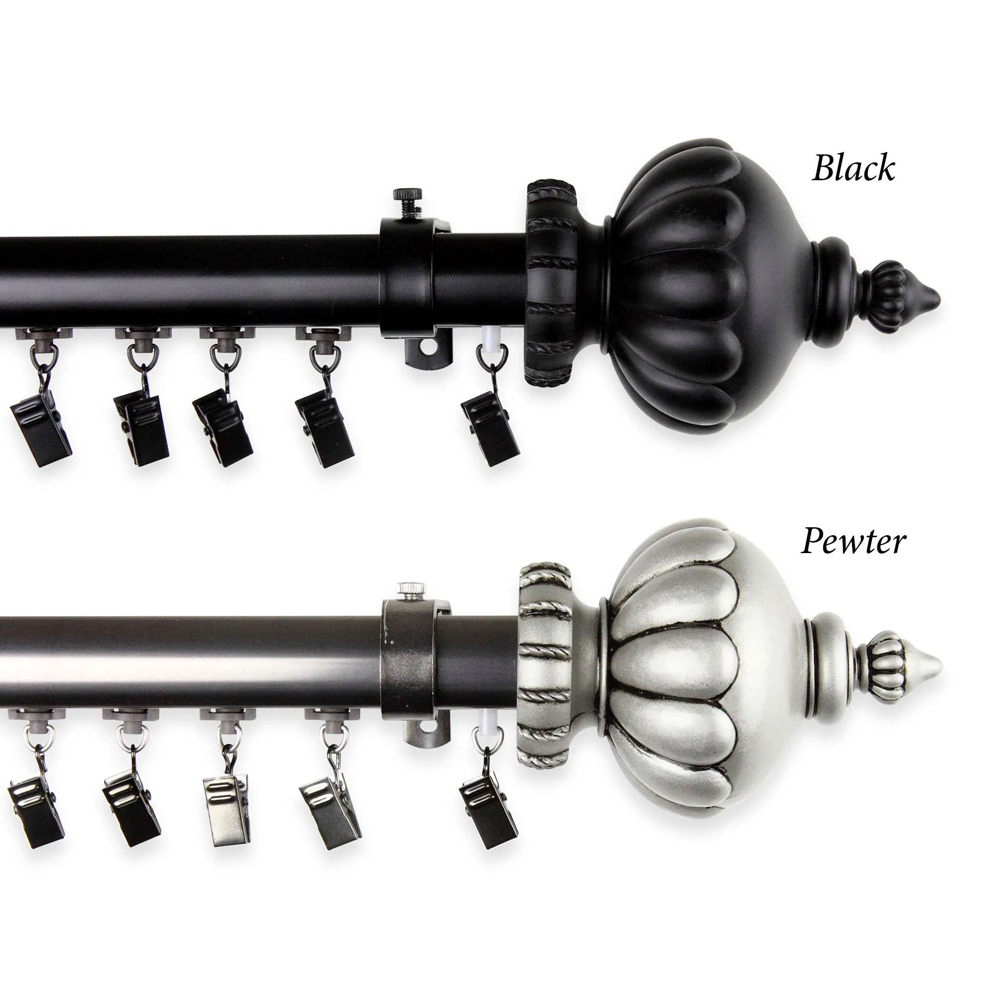 Seraphine Decorative Traverse Curtain Rod and Finial Set with Sliding Clips