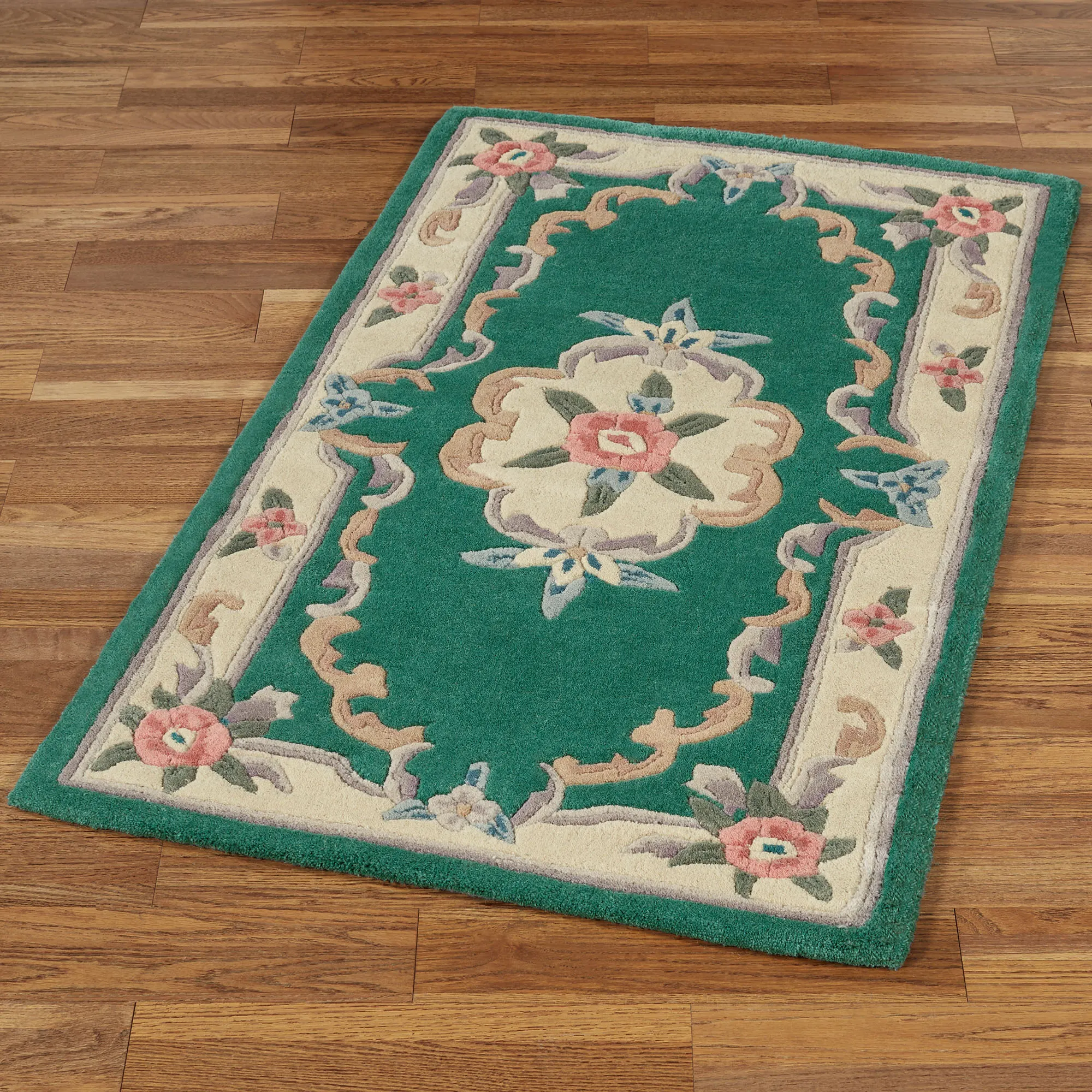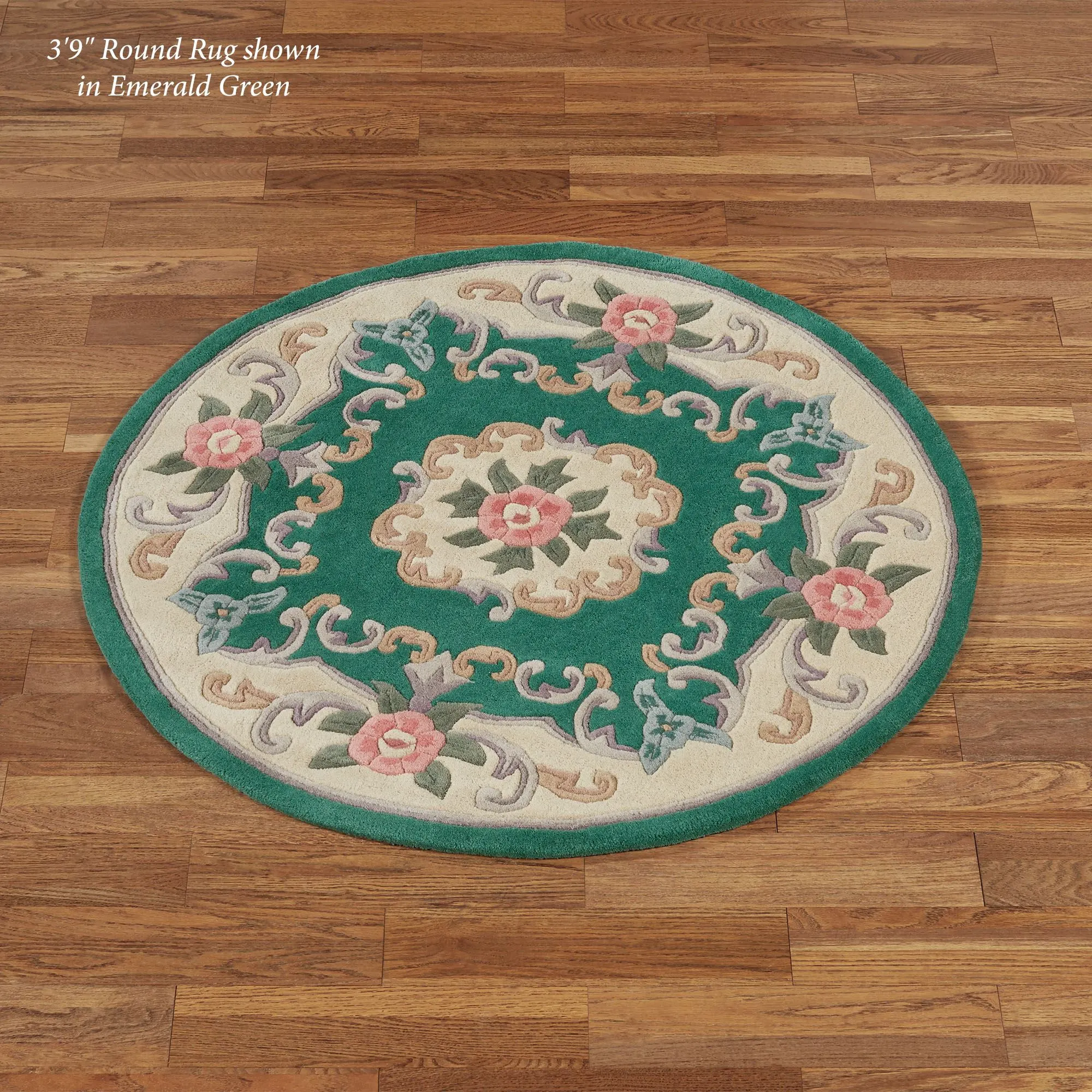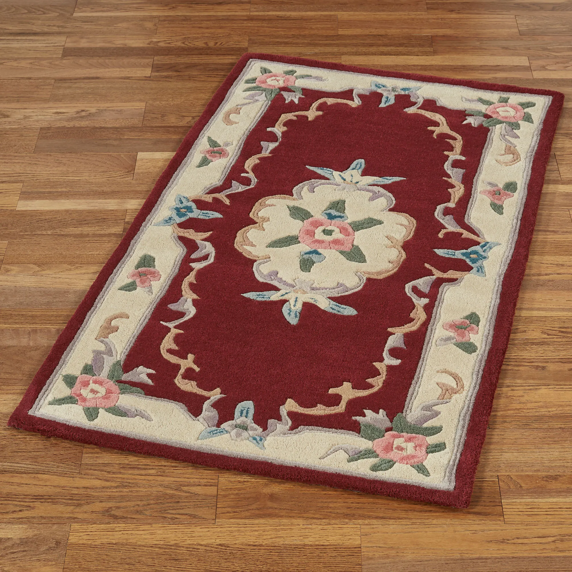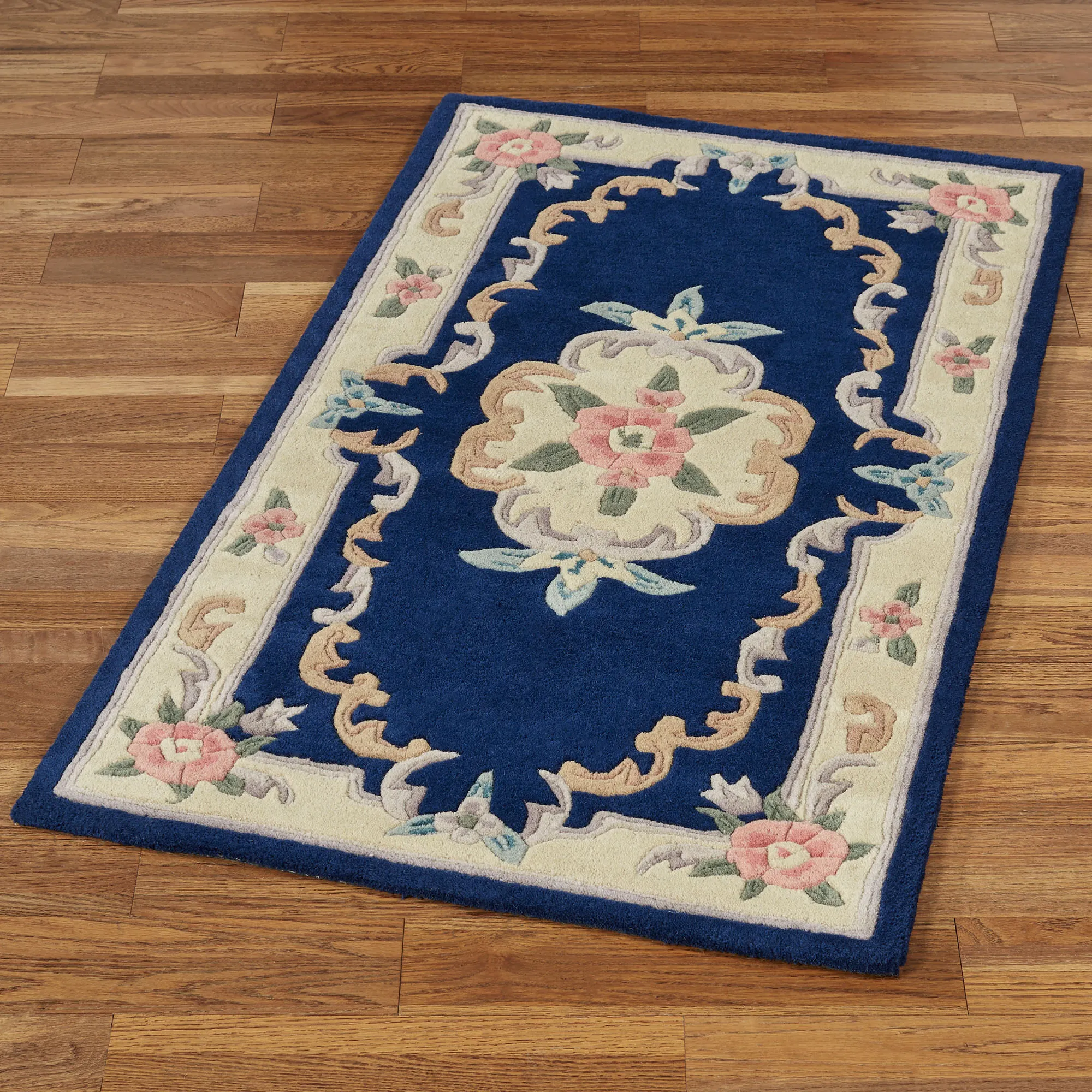 Timeless tradition and a sweet elegance grace the Serena Aubusson II Rugs with charming beauty. These luster-washed wool rugs, .5" thick, wear well and feel soft underfoot. The lovely Aubusson design has intricate detailing of roses, florals, acanthus leaves, and scrolls. A high standard of depth and detail, accomplished through intricate handcarving, makes the designs spring vividly to life. Backing is cloth-covered latex. Due to the handcrafted nature, slight variations in size, color, and design are inherent. Specify Rose, Burgundy, Emerald Green, Ivory, Midnight Blue, or Parisian Blue. We recommend professional cleaning by a rug cleaner. Imported.