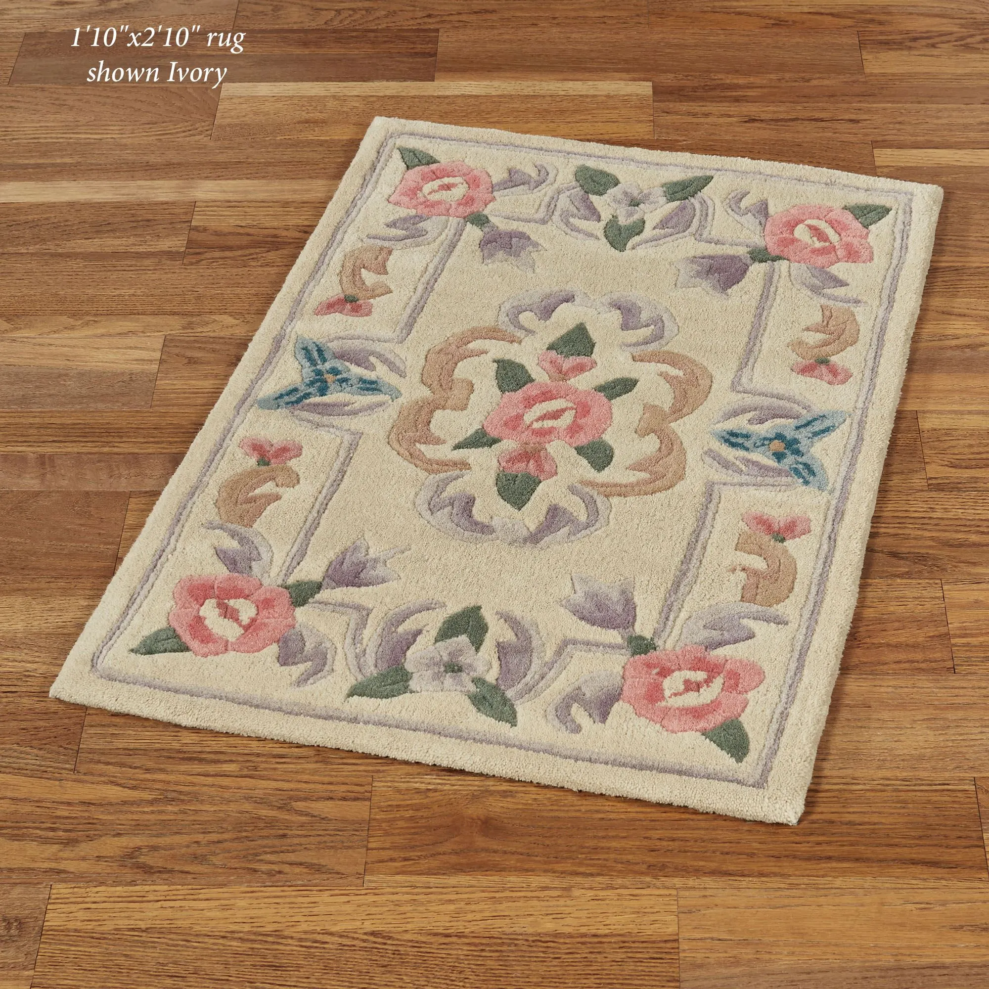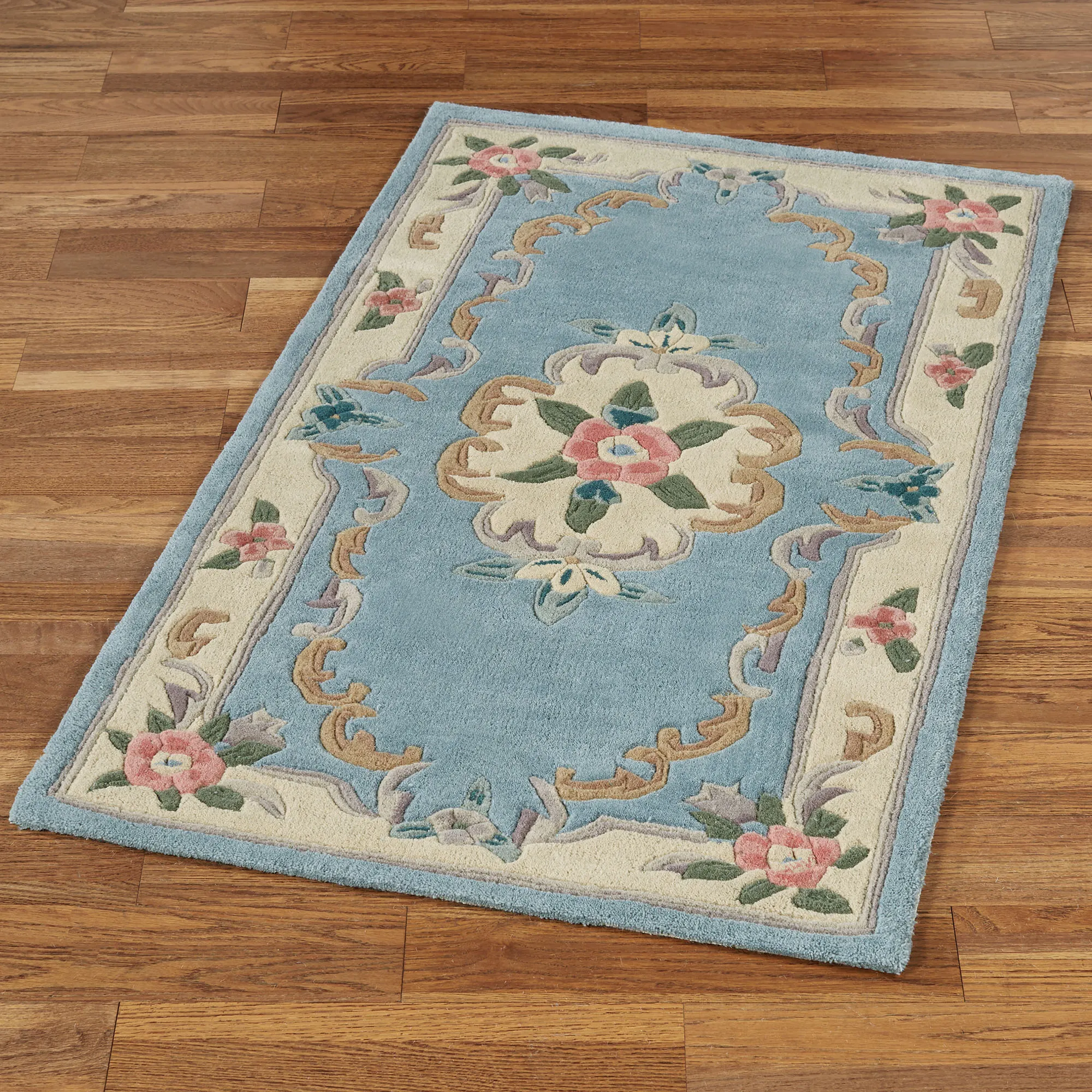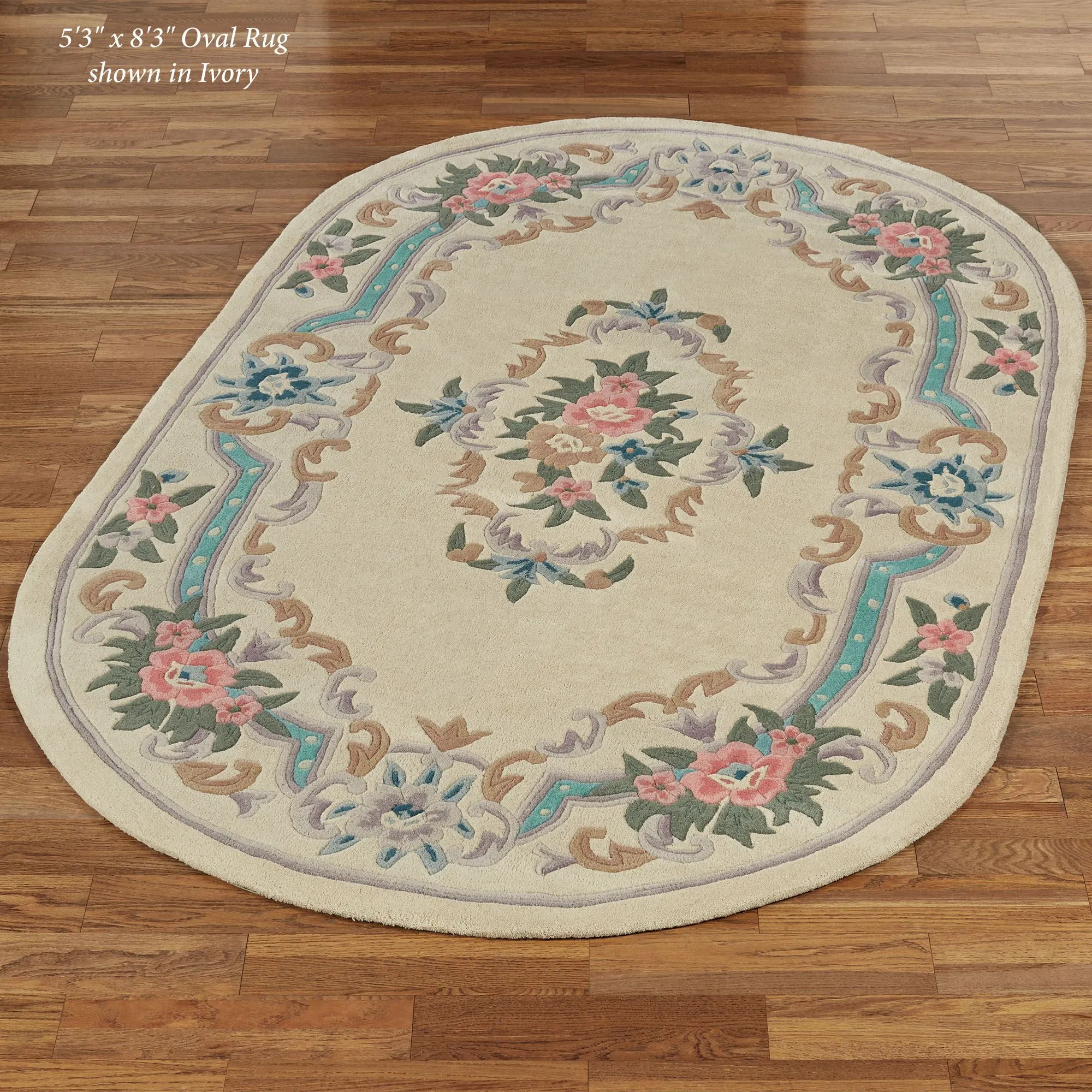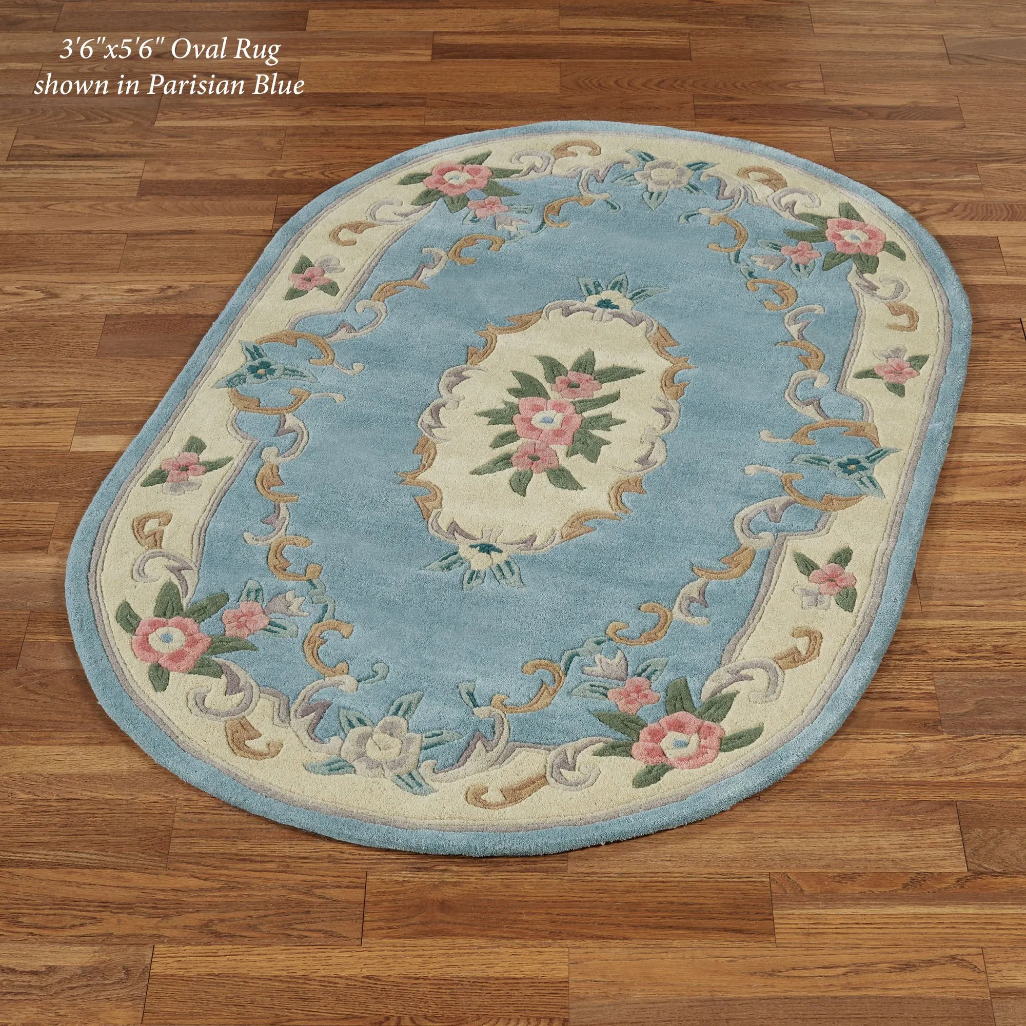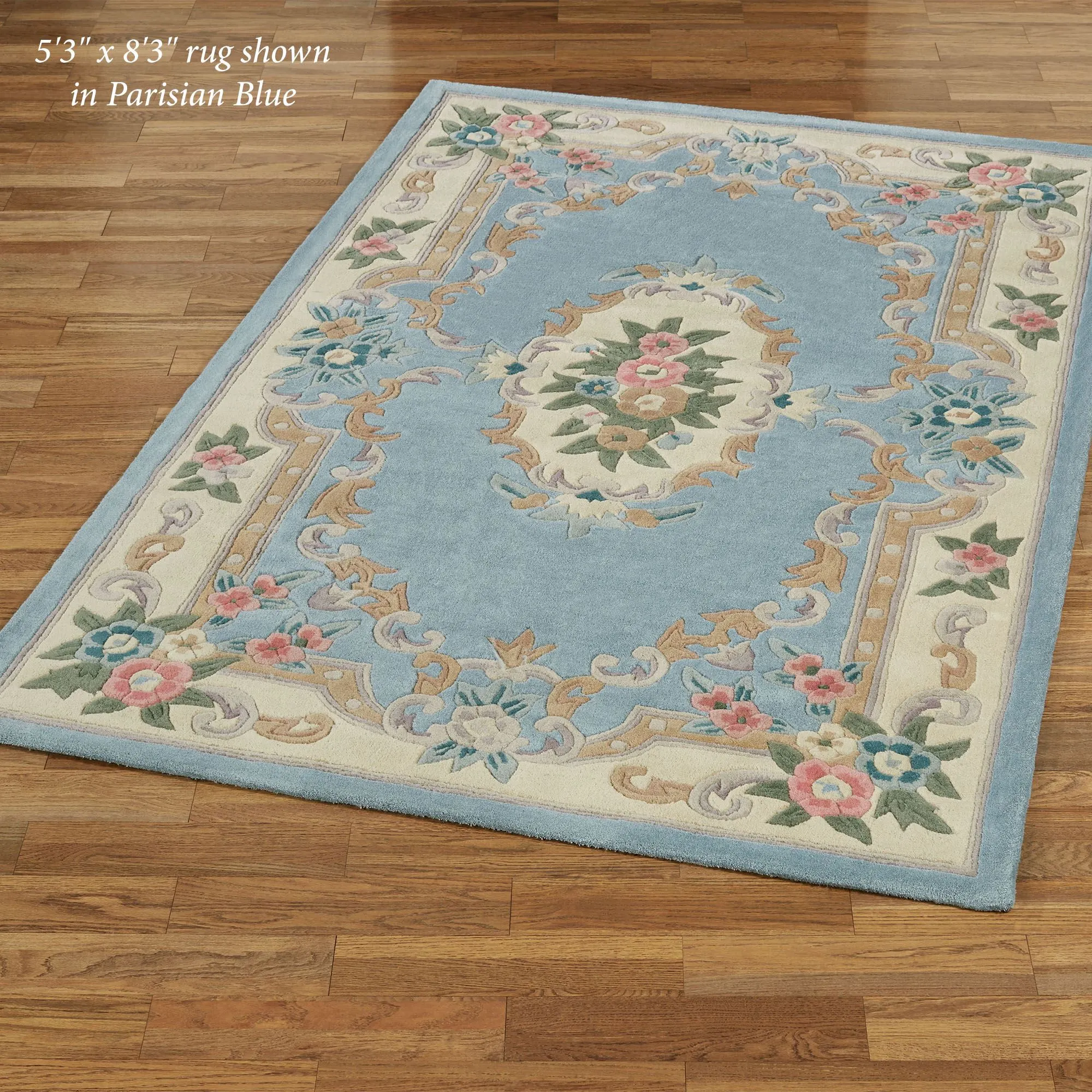 Timeless tradition and a sweet elegance grace the Serena Aubusson II Rugs with charming beauty. These luster-washed wool rugs, .5" thick, wear well and feel soft underfoot. The lovely Aubusson design has intricate detailing of roses, florals, acanthus leaves, and scrolls. A high standard of depth and detail, accomplished through intricate handcarving, makes the designs spring vividly to life. Backing is cloth-covered latex. Due to the handcrafted nature, slight variations in size, color, and design are inherent. Specify Rose, Burgundy, Emerald Green, Ivory, Midnight Blue, or Parisian Blue. We recommend professional cleaning by a rug cleaner. Imported.