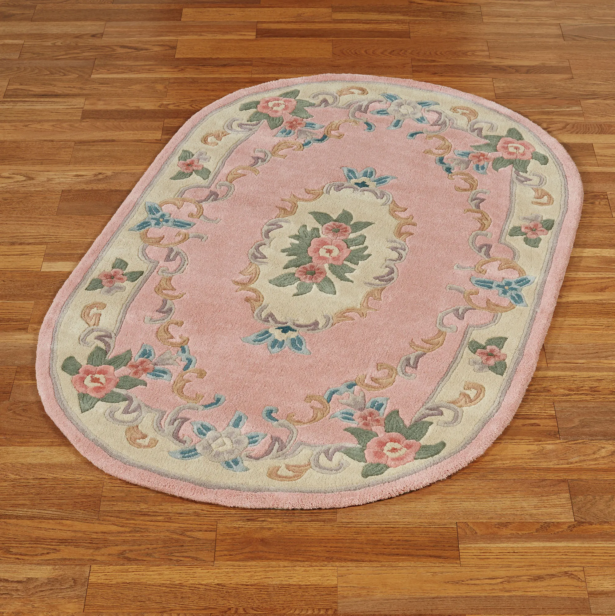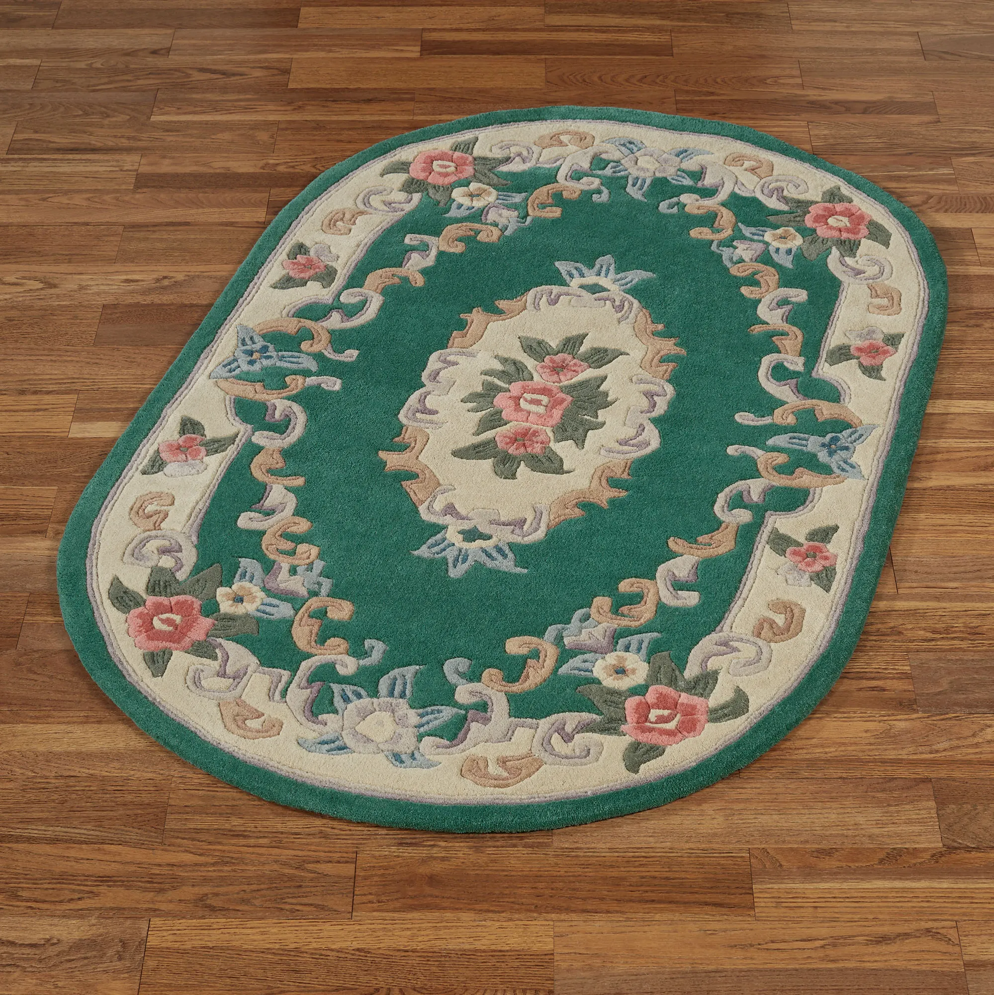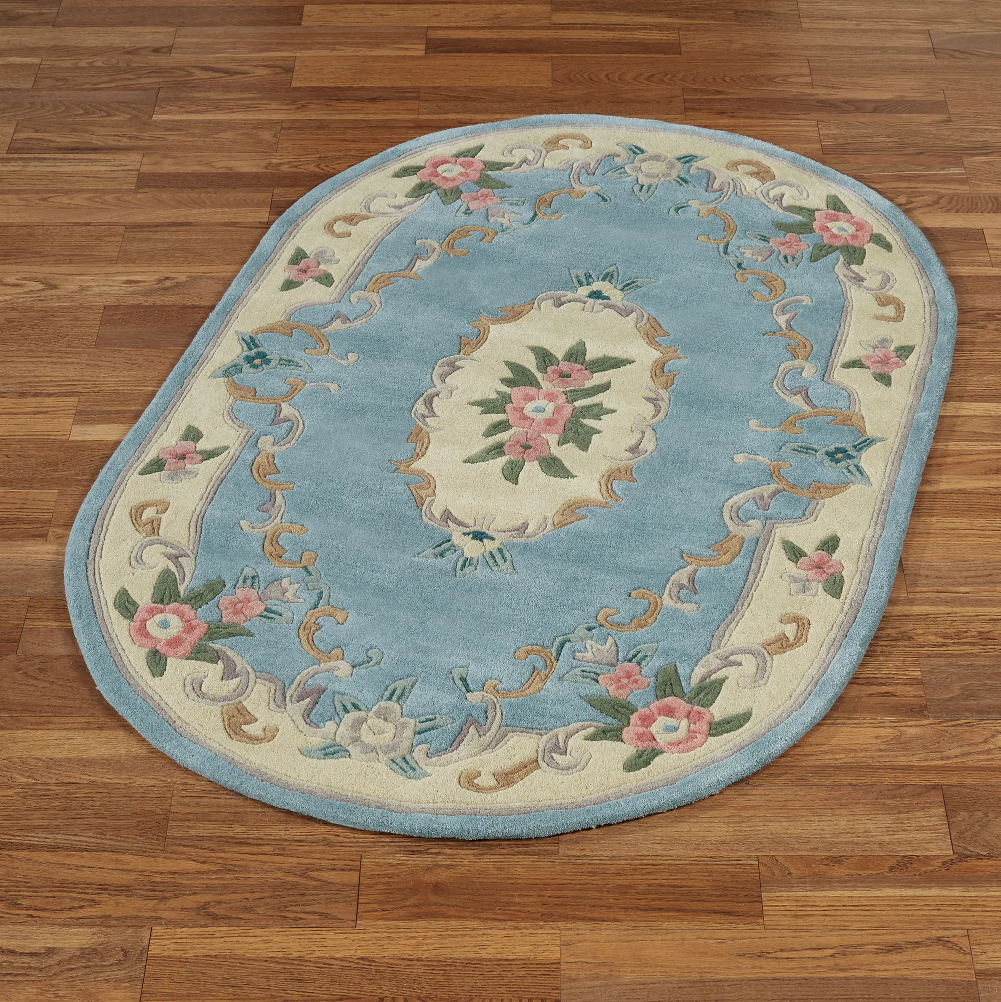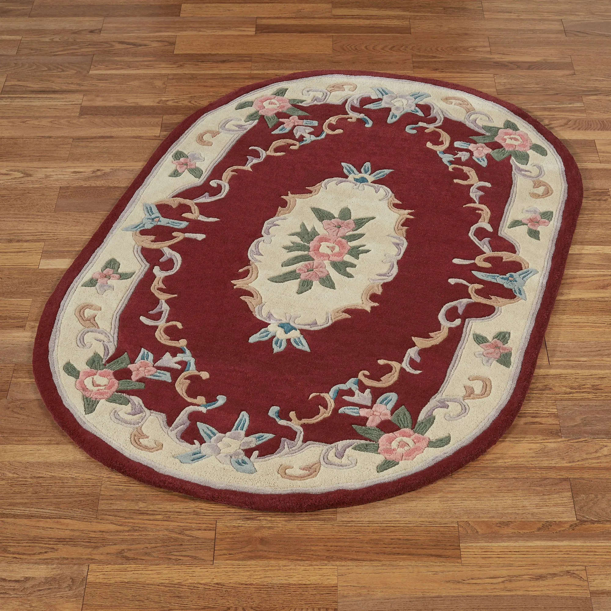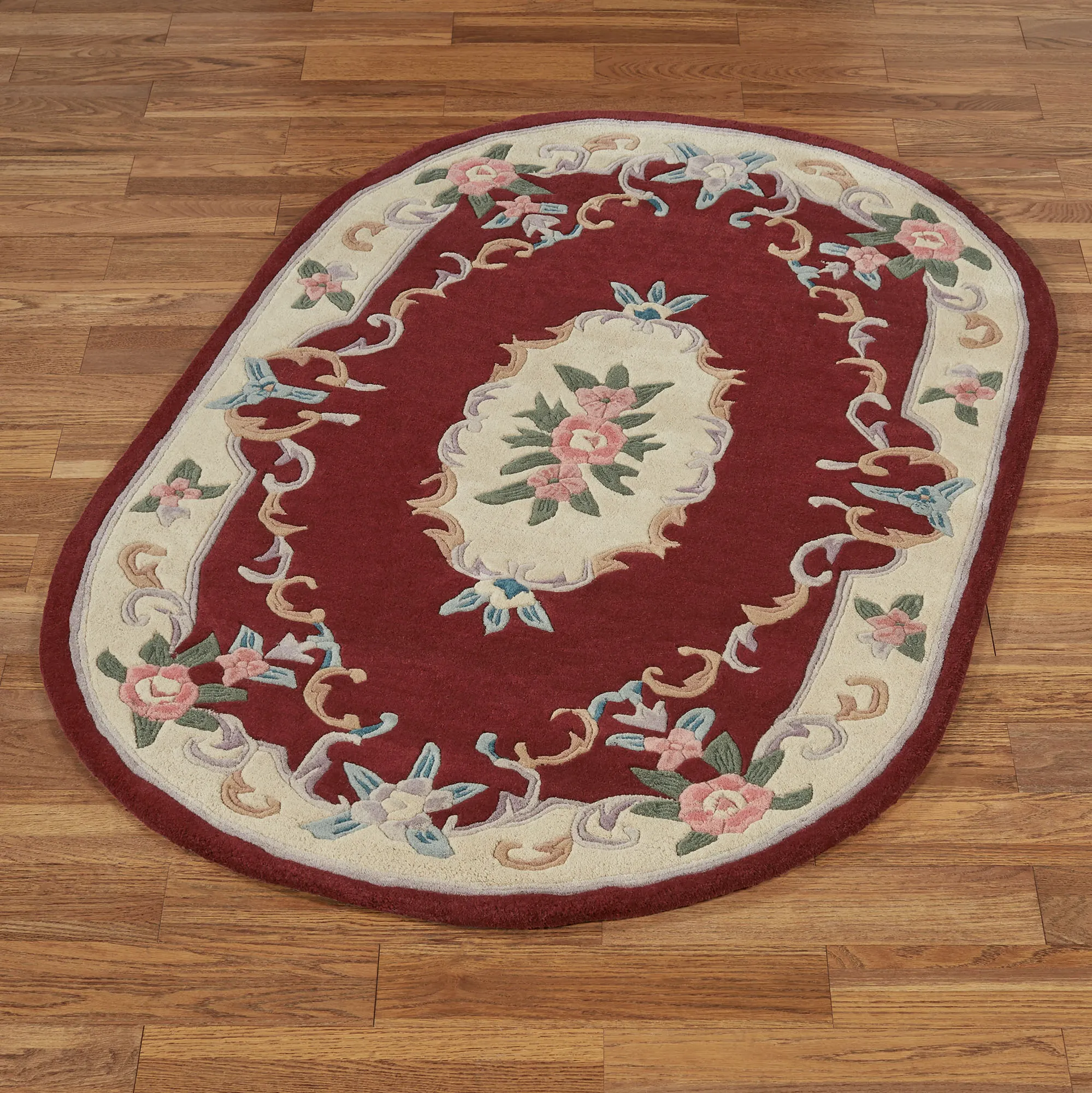 Timeless tradition and a sweet elegance grace the Serena Aubusson II Oval Rugs with charming beauty. These luster-washed wool oval rugs, .5" thick, wear well and feel soft underfoot. The lovely Aubusson design has intricate detailing of roses, florals, acanthus leaves, and scrolls. A high standard of depth and detail, accomplished through intricate handcarving, makes the designs spring vividly to life. Backing is cloth-covered latex. Due to the handcrafted nature, slight variations in size, color, and design are inherent. Specify Burgundy, Emerald Green, Ivory, Midnight Blue, Parisian Blue, or Rose. We recommend professional cleaning by a rug cleaner. Imported.