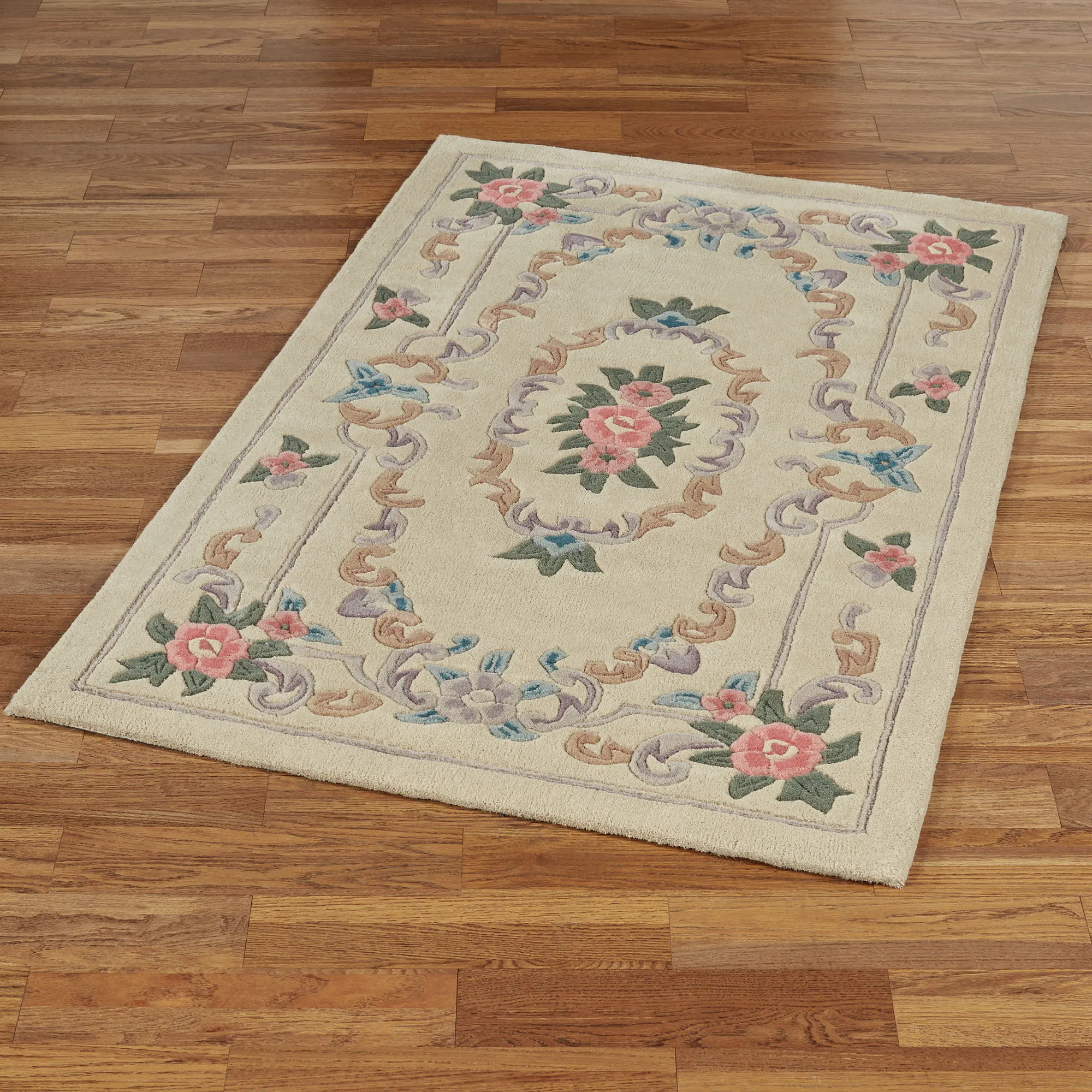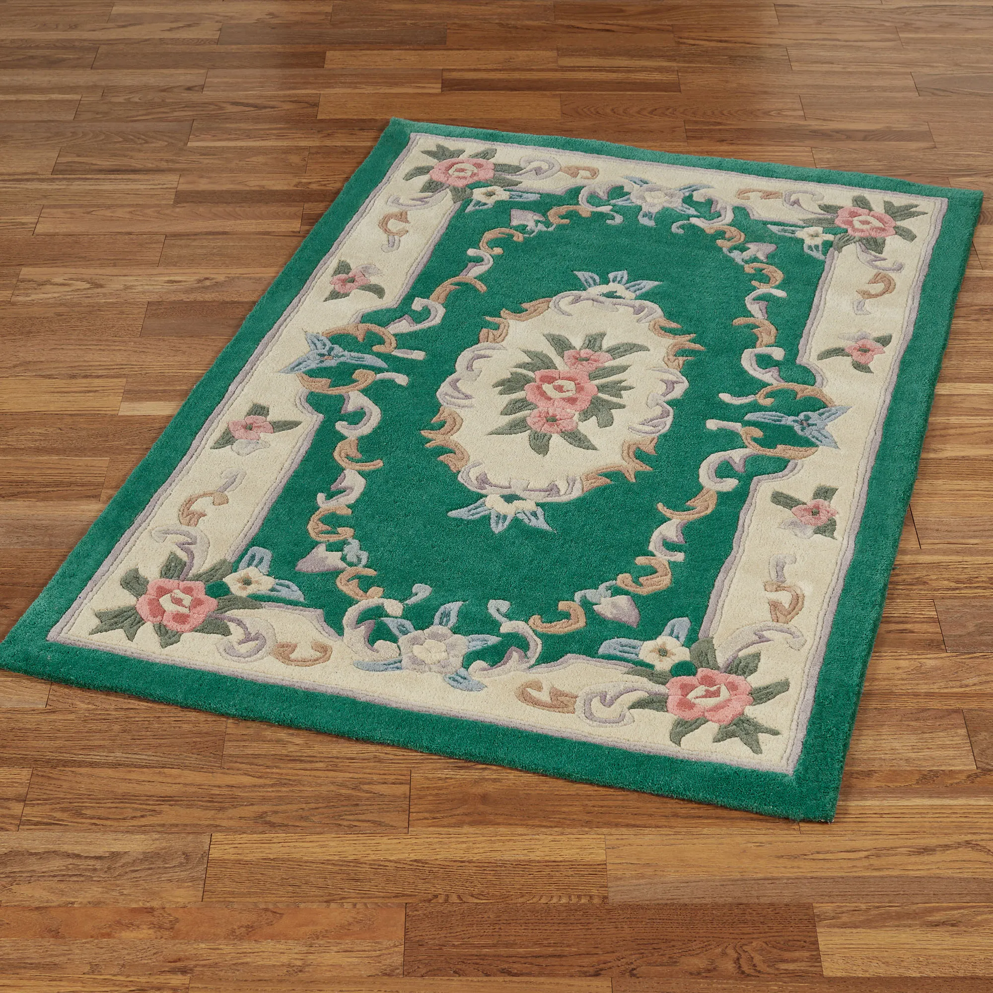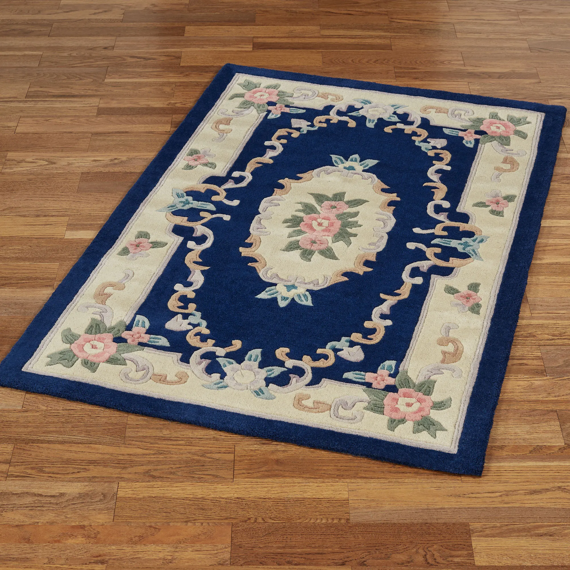 Timeless tradition and a sweet elegance grace the Serena Aubusson II Rugs with charming beauty. These luster-washed wool rugs, .5" thick, wear well and feel soft underfoot. The lovely Aubusson design has intricate detailing of roses, florals, acanthus leaves, and scrolls. A high standard of depth and detail, accomplished through intricate handcarving, makes the designs spring vividly to life. Backing is cloth-covered latex. Due to the handcrafted nature, slight variations in size, color, and design are inherent. Specify Ivory, Burgundy, Emerald Green, Midnight Blue, Parisian Blue, or Rose. We recommend professional cleaning by a rug cleaner. Imported.