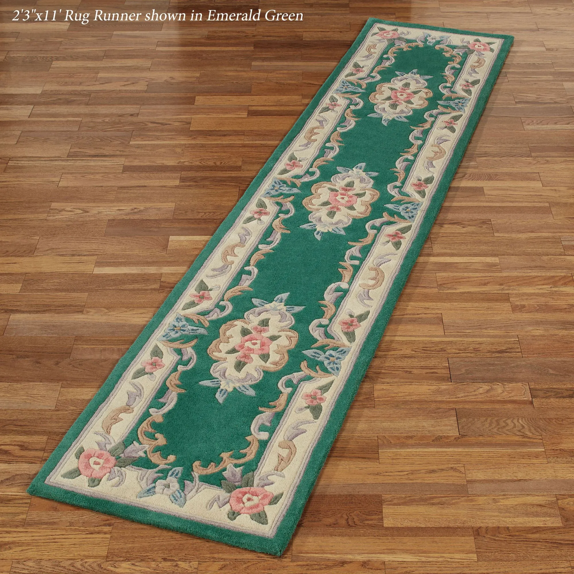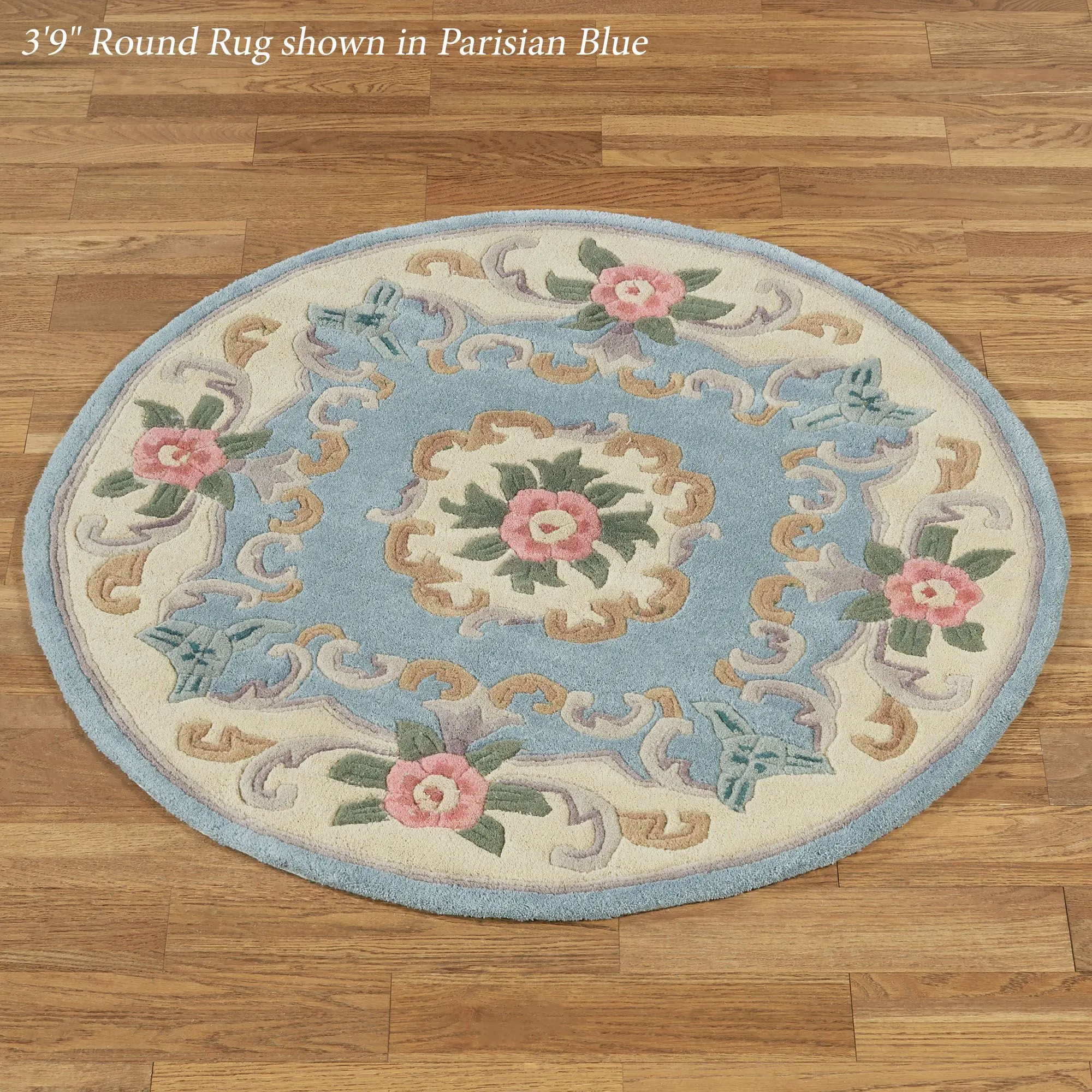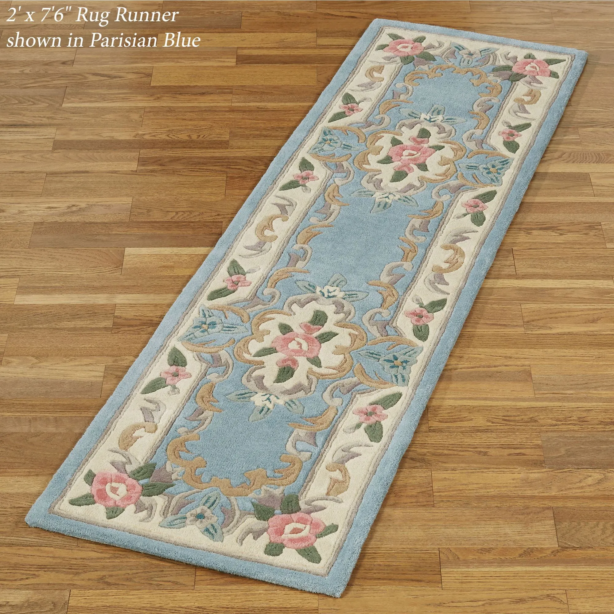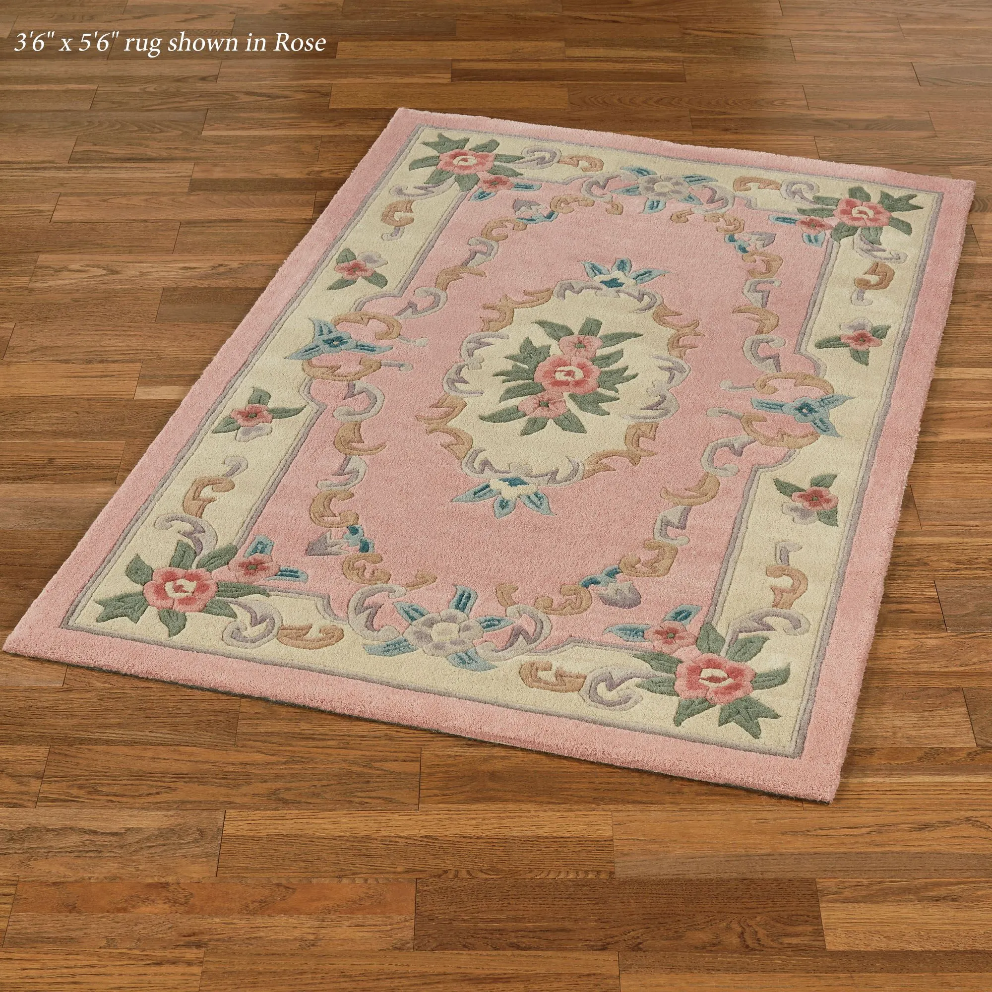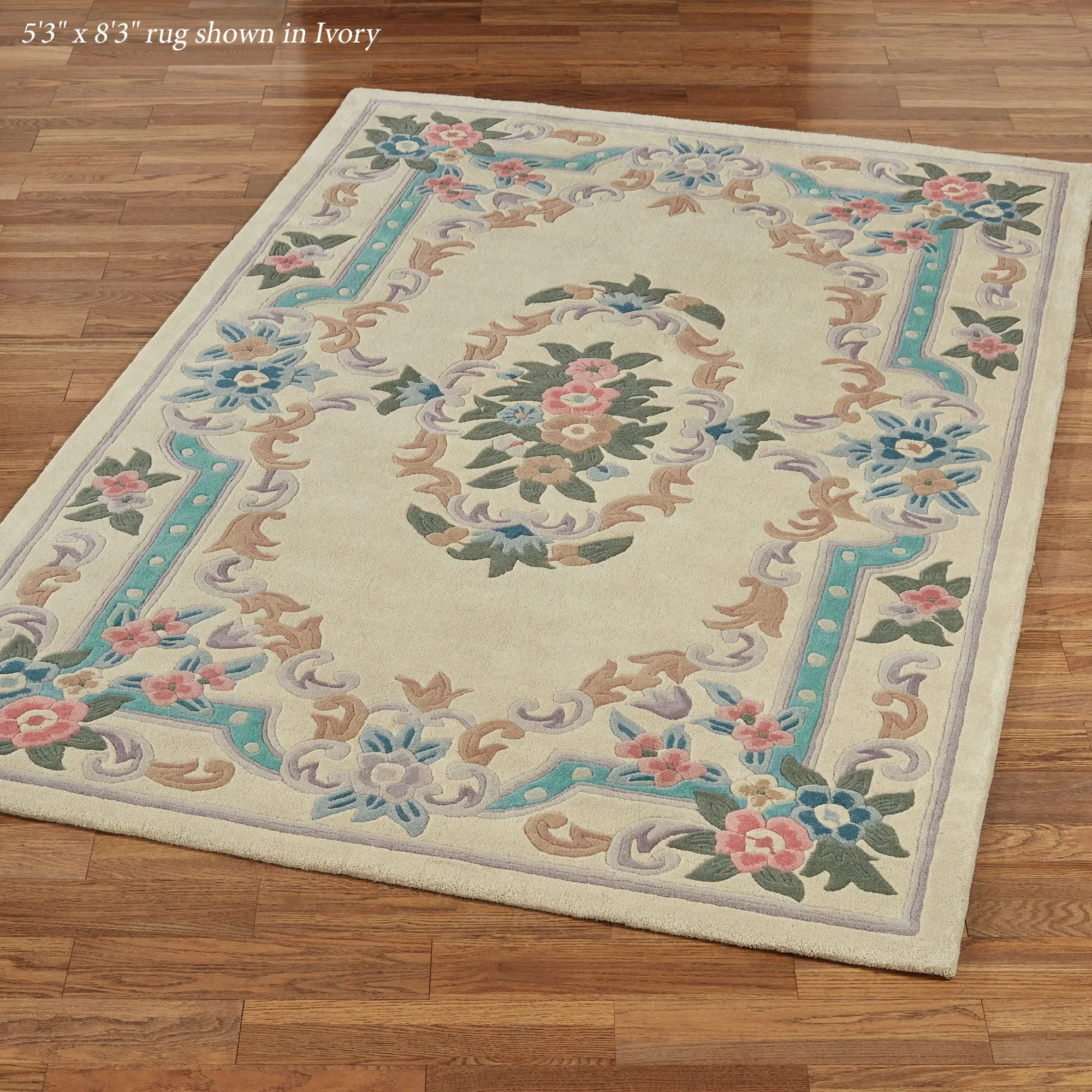 Timeless tradition and a sweet elegance grace the Serena Aubusson II Area Rugs with charming beauty. These luster-washed wool rugs, .5" thick, wear well and feel soft underfoot. The lovely Aubusson design has intricate detailing of roses, florals, acanthus leaves, and scrolls. A high standard of depth and detail, accomplished through intricate handcarving, makes the designs spring vividly to life. Backing is cloth-covered latex. Due to the handcrafted nature, slight variations in size, color, and design are inherent. Specify Ivory, Burgundy, Emerald Green, Midnight Blue, Parisian Blue, or Rose. We recommend professional cleaning by a rug cleaner. Imported.