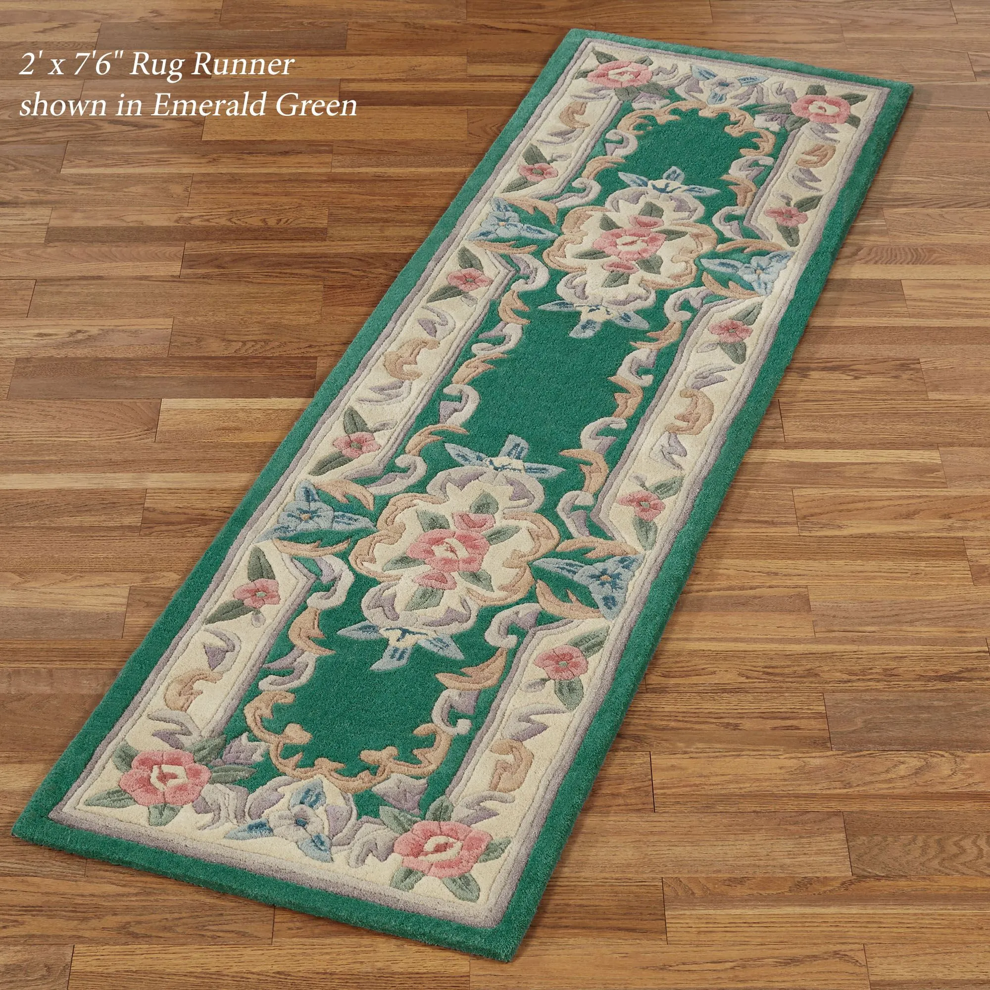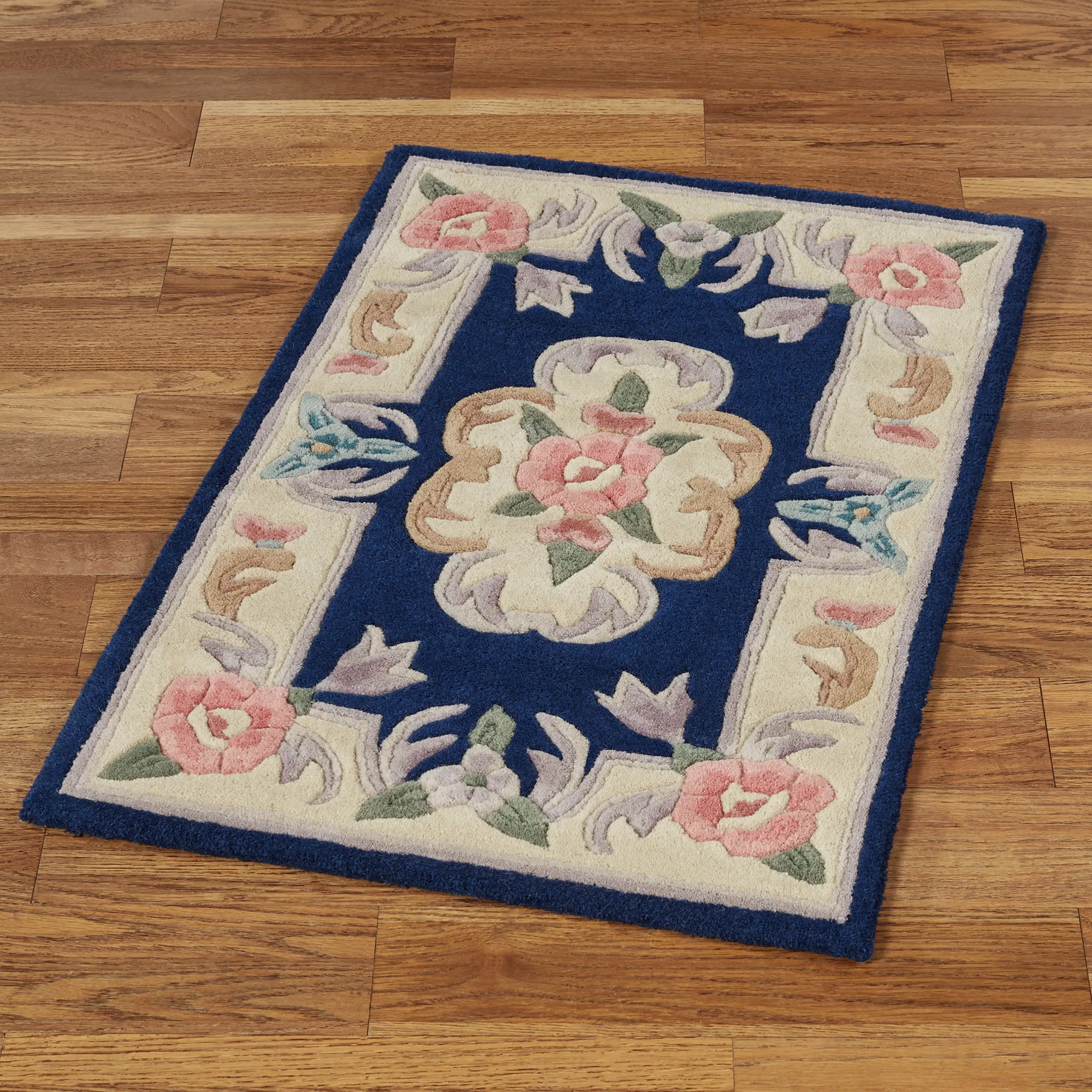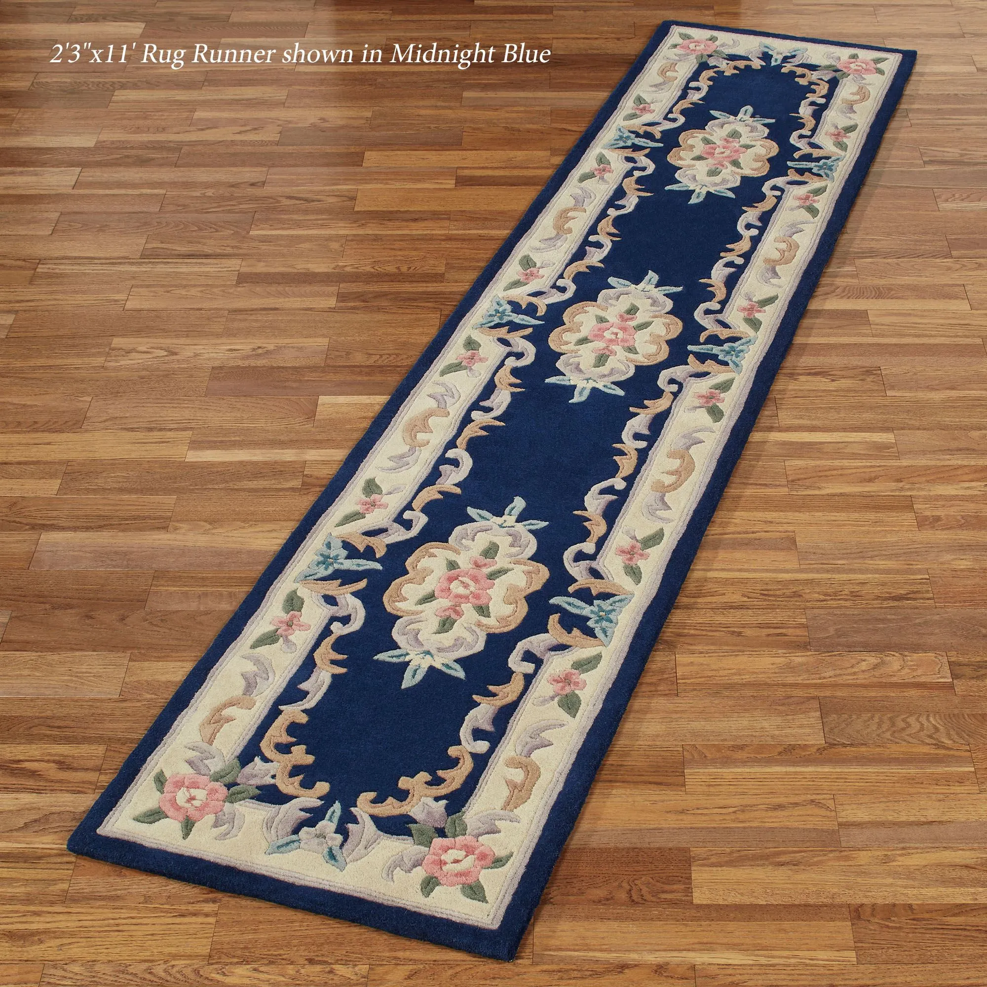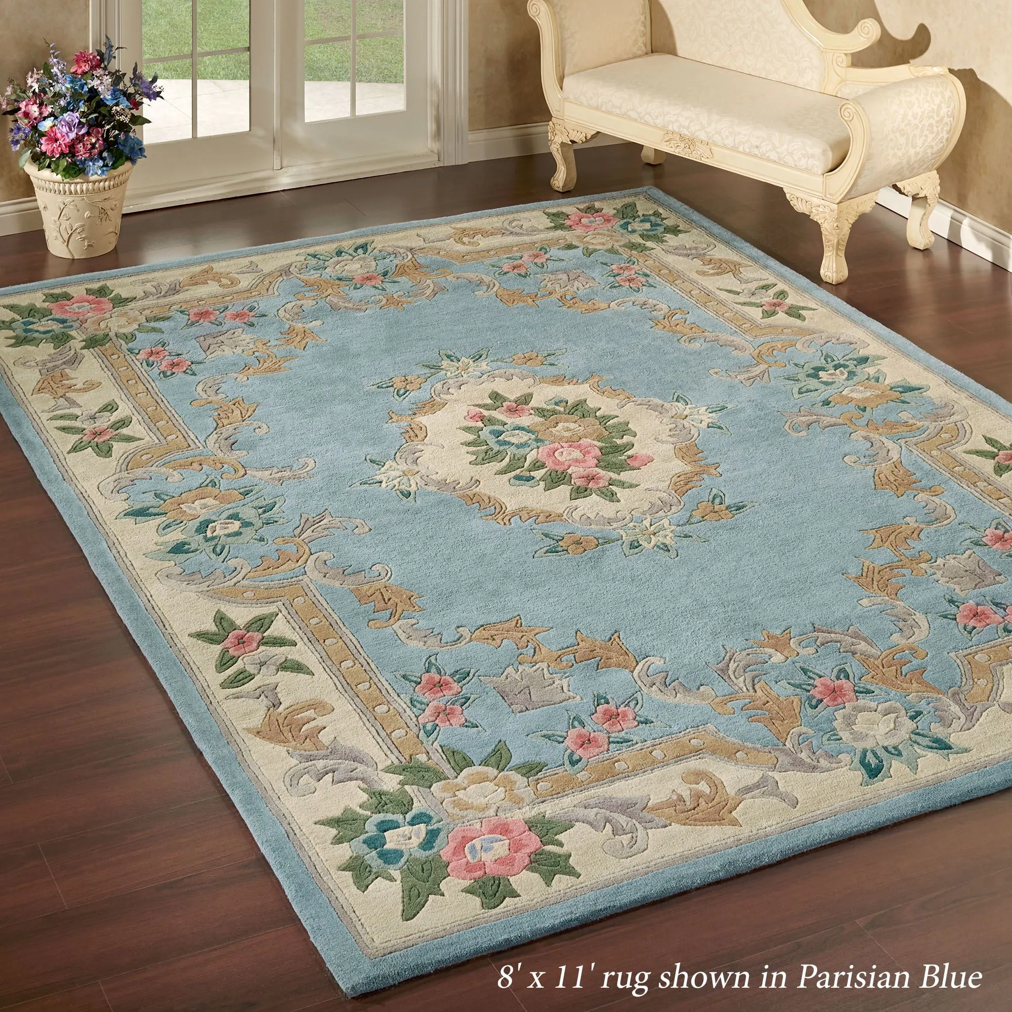 Timeless tradition and a sweet elegance grace the Serena Aubusson II Rugs with charming beauty. These luster-washed wool rugs, .5" thick, wear well and feel soft underfoot. The lovely Aubusson design has intricate detailing of roses, florals, and acanthus leaves; some sizes also have scrolls. A high standard of depth and detail, accomplished through intricate handcarving, makes the designs spring vividly to life. Backing is cloth-covered latex. Due to the handcrafted nature, slight variations in size, color, and design are inherent. Specify Midnight Blue, Burgundy, Emerald Green, Ivory, Parisian Blue, or Rose. We recommend professional cleaning by a rug cleaner. Imported.