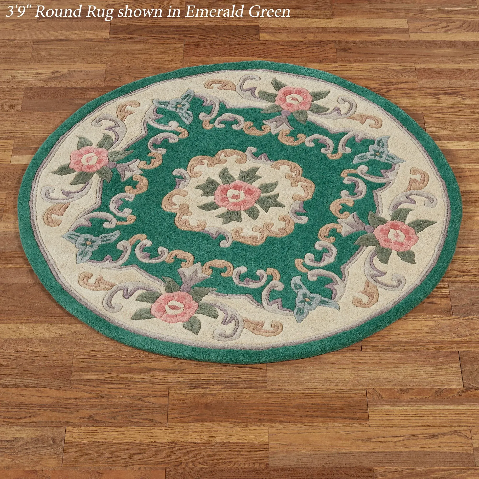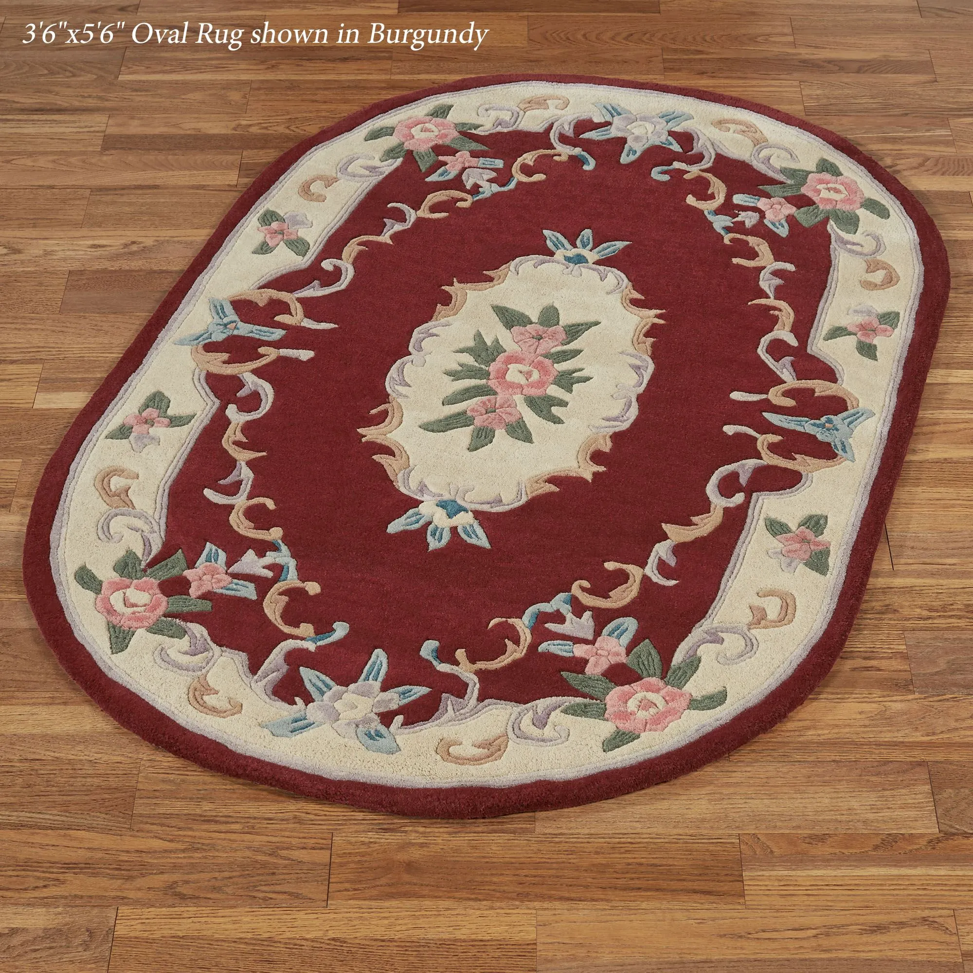 Flowers and leaves accent the corners of rectangles and are interspersed with smaller florals on the oval and round rugs. These hand-tufted rugs offer a wide range of colors and sizes to coordinate room-size rugs with smaller accent or area rugs. Runners may be used to create a smooth visual transition from room to room; round rugs look elegant beneath tables. Design will vary by size.