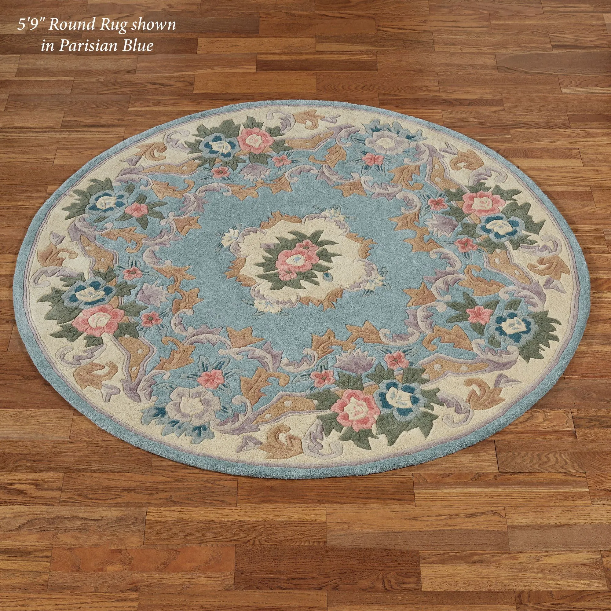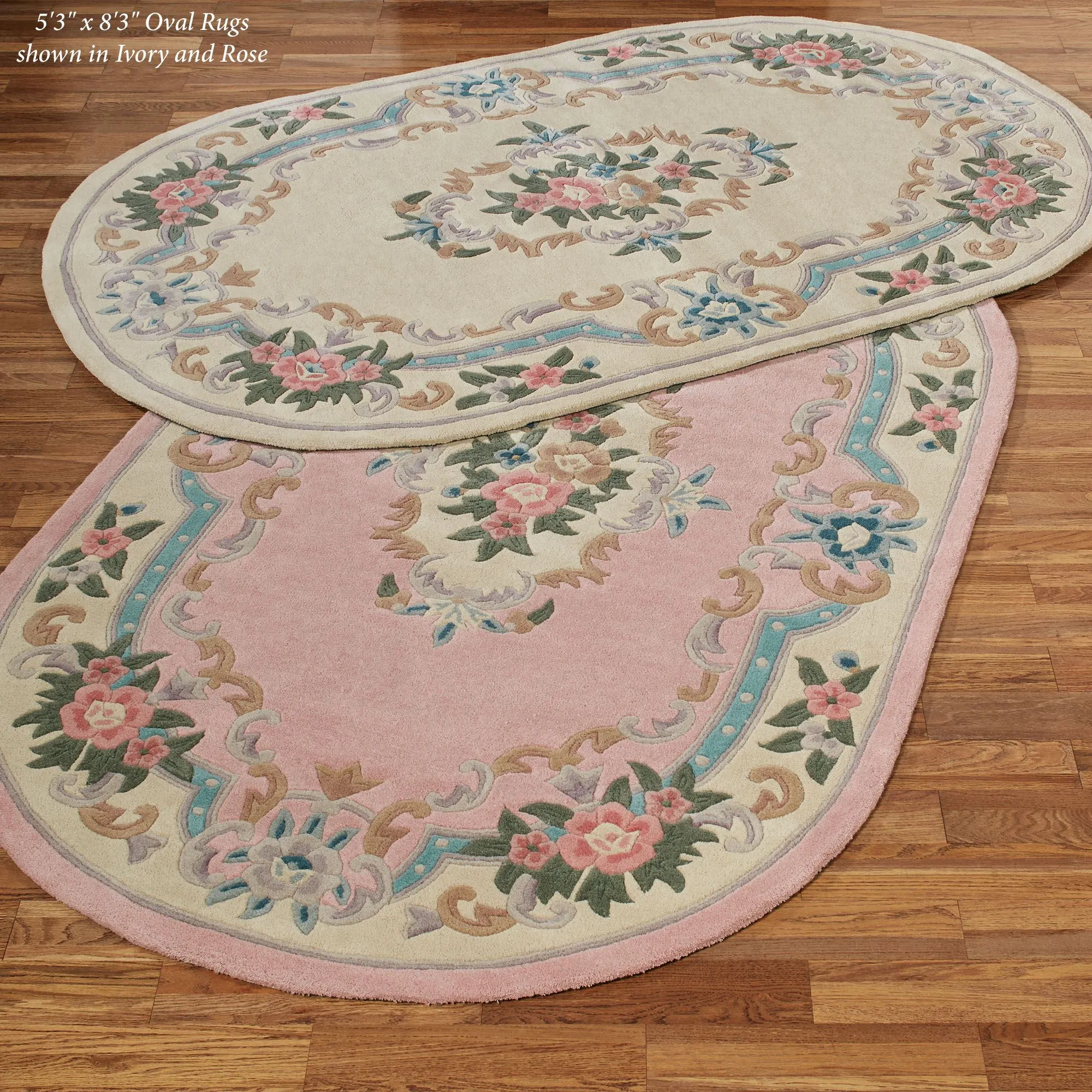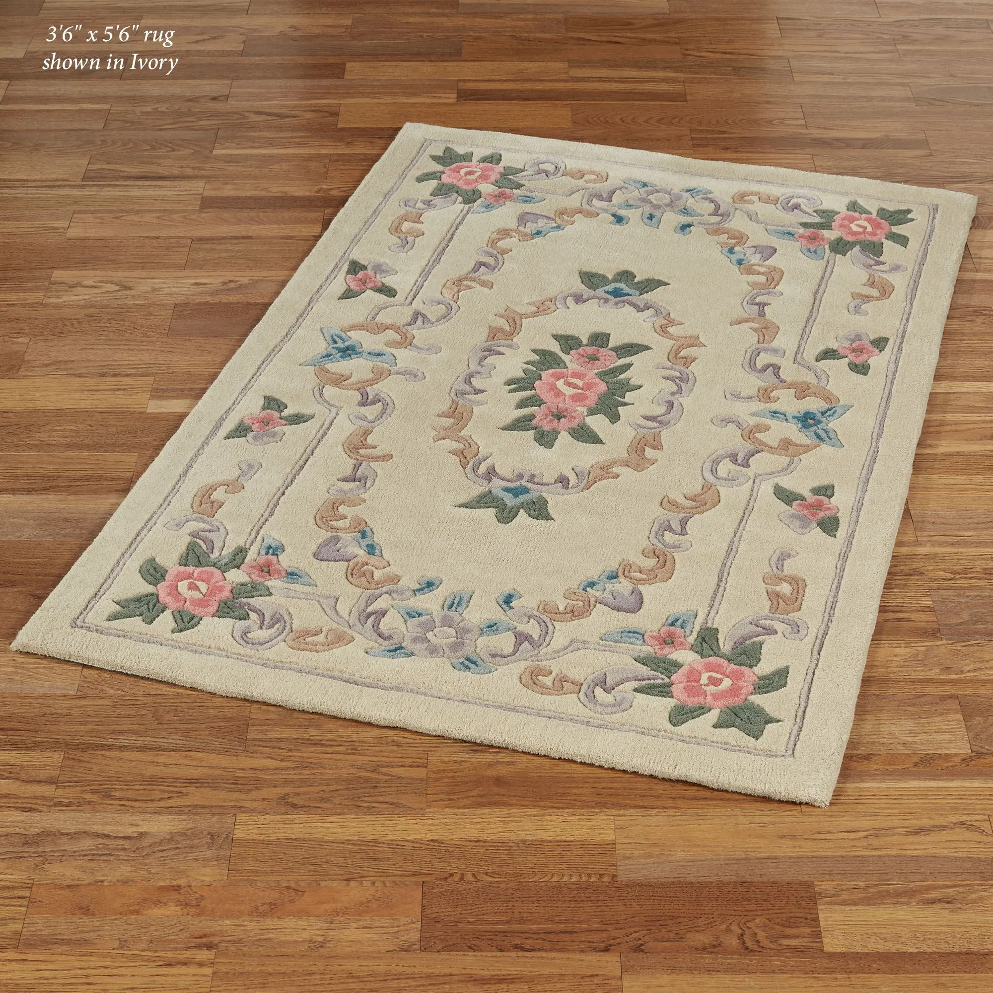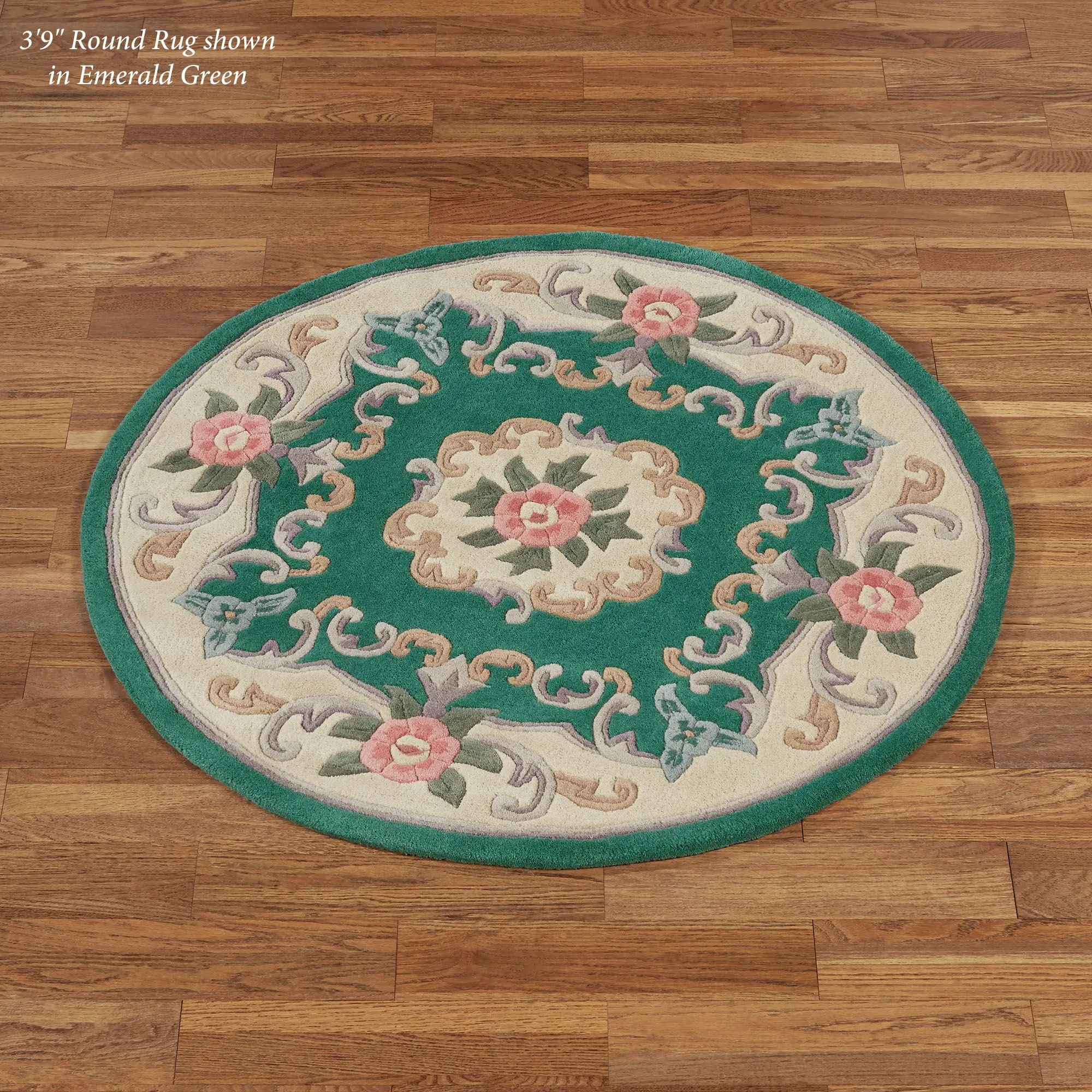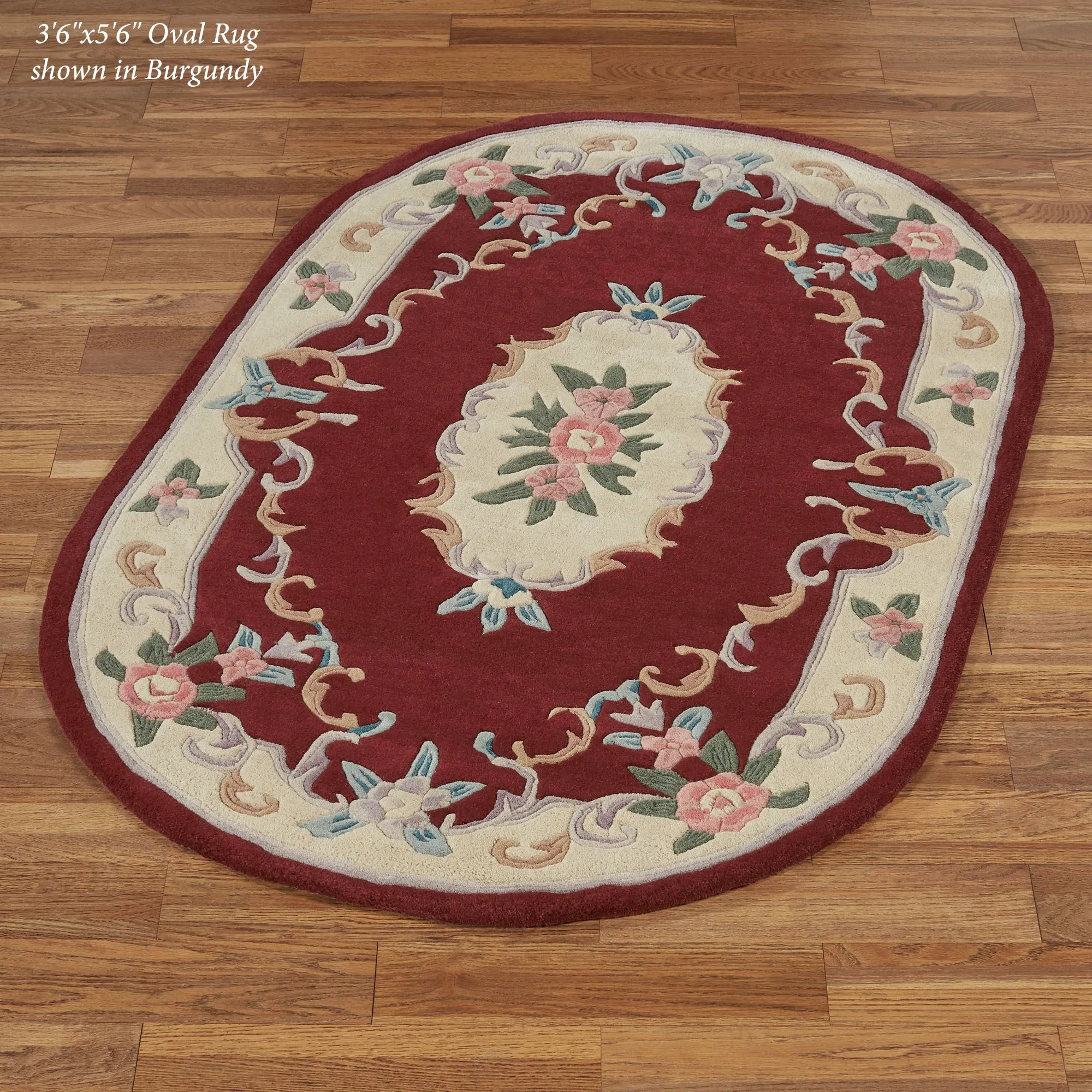 Flowers and leaves accent the corners of rectangles and are interspersed with smaller florals on the oval and round rugs. These hand-tufted rugs offer a wide range of colors and sizes to coordinate room-size rugs with smaller accent or area rugs. Runners may be used to create a smooth visual transition from room to room; round rugs look elegant beneath tables. Design will vary by size.