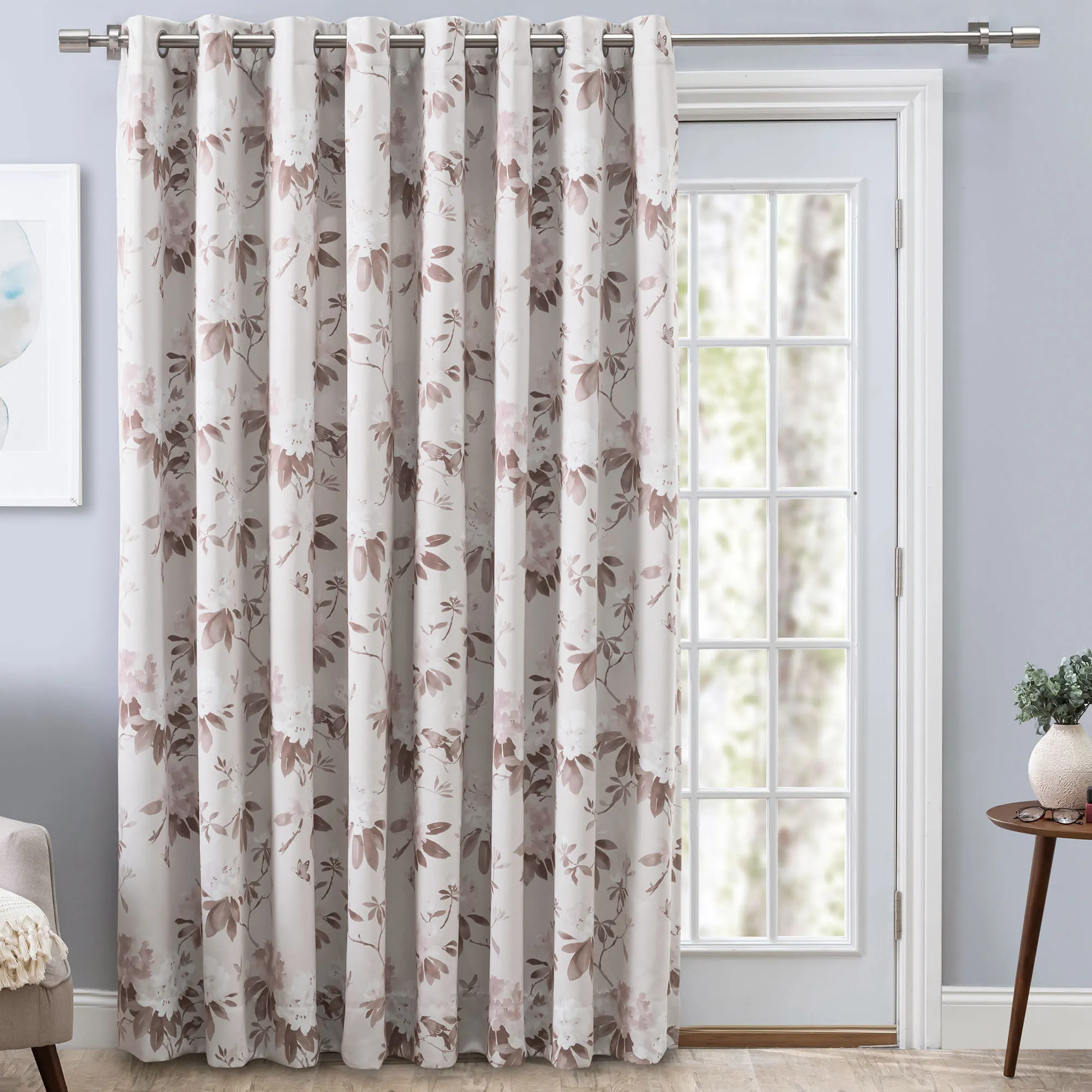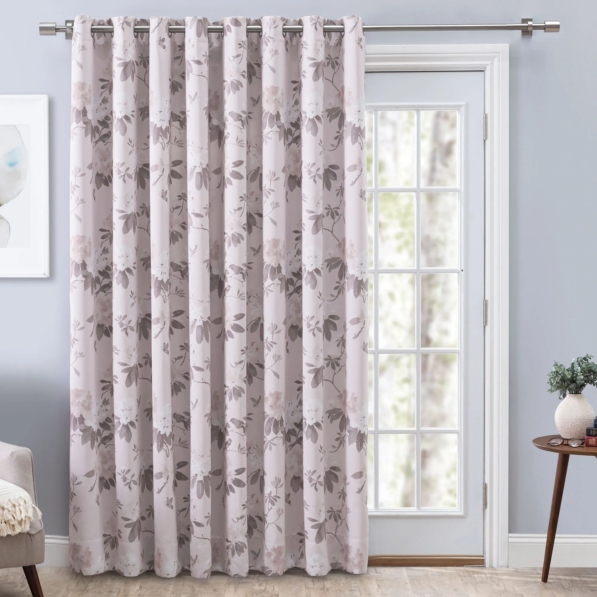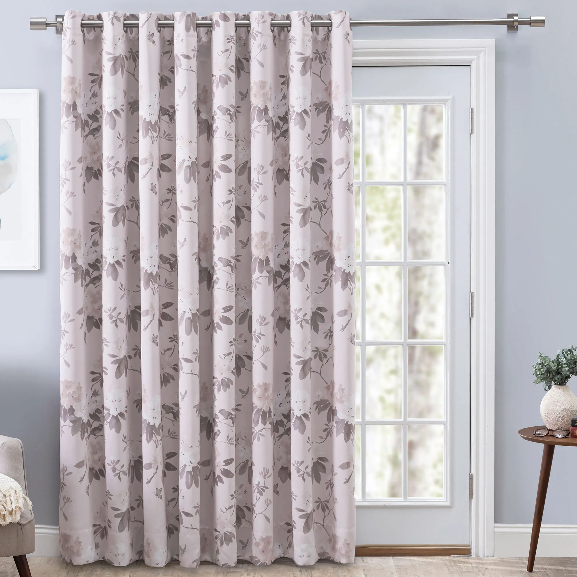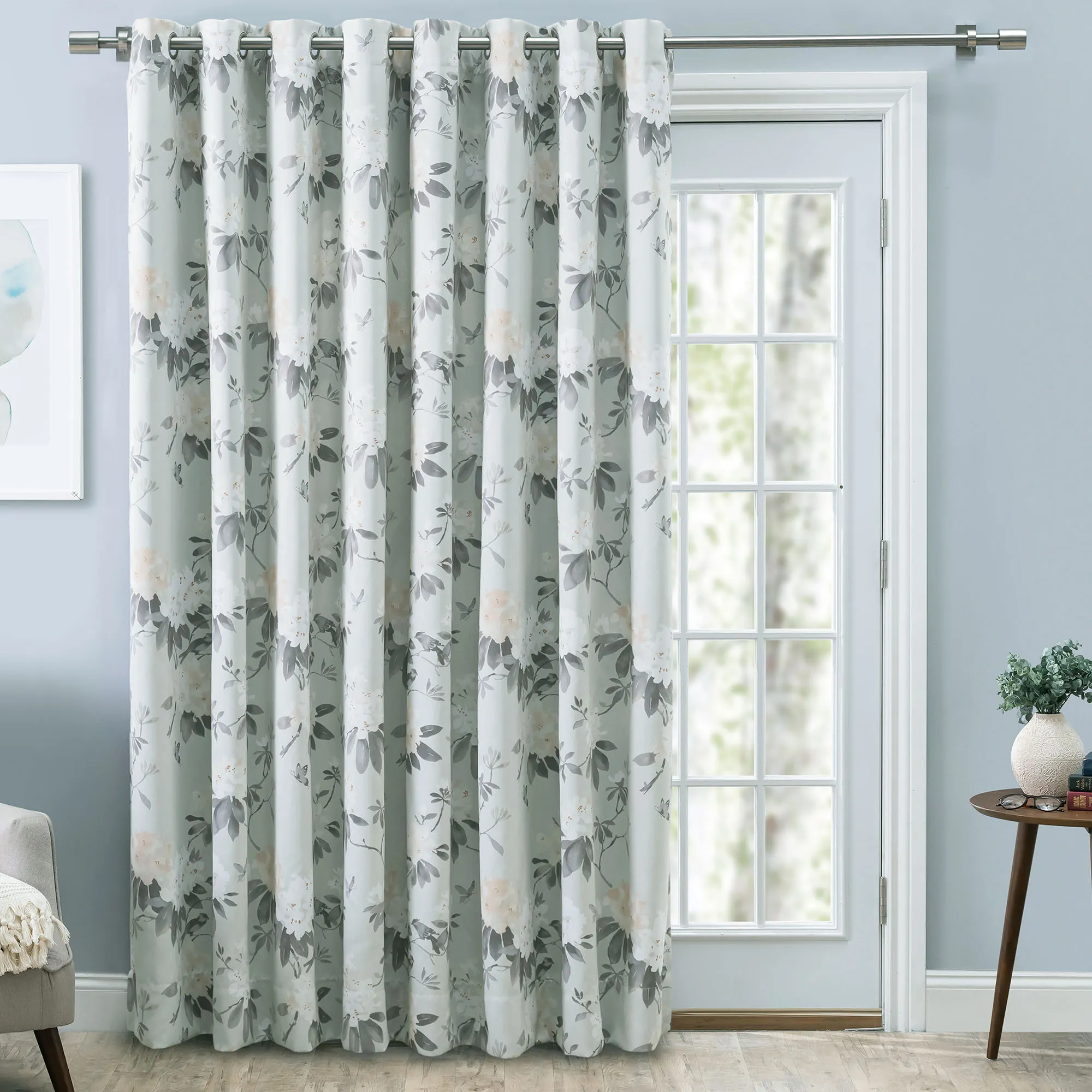 Serene Garden Floral Room Darkening Grommet Patio Panel