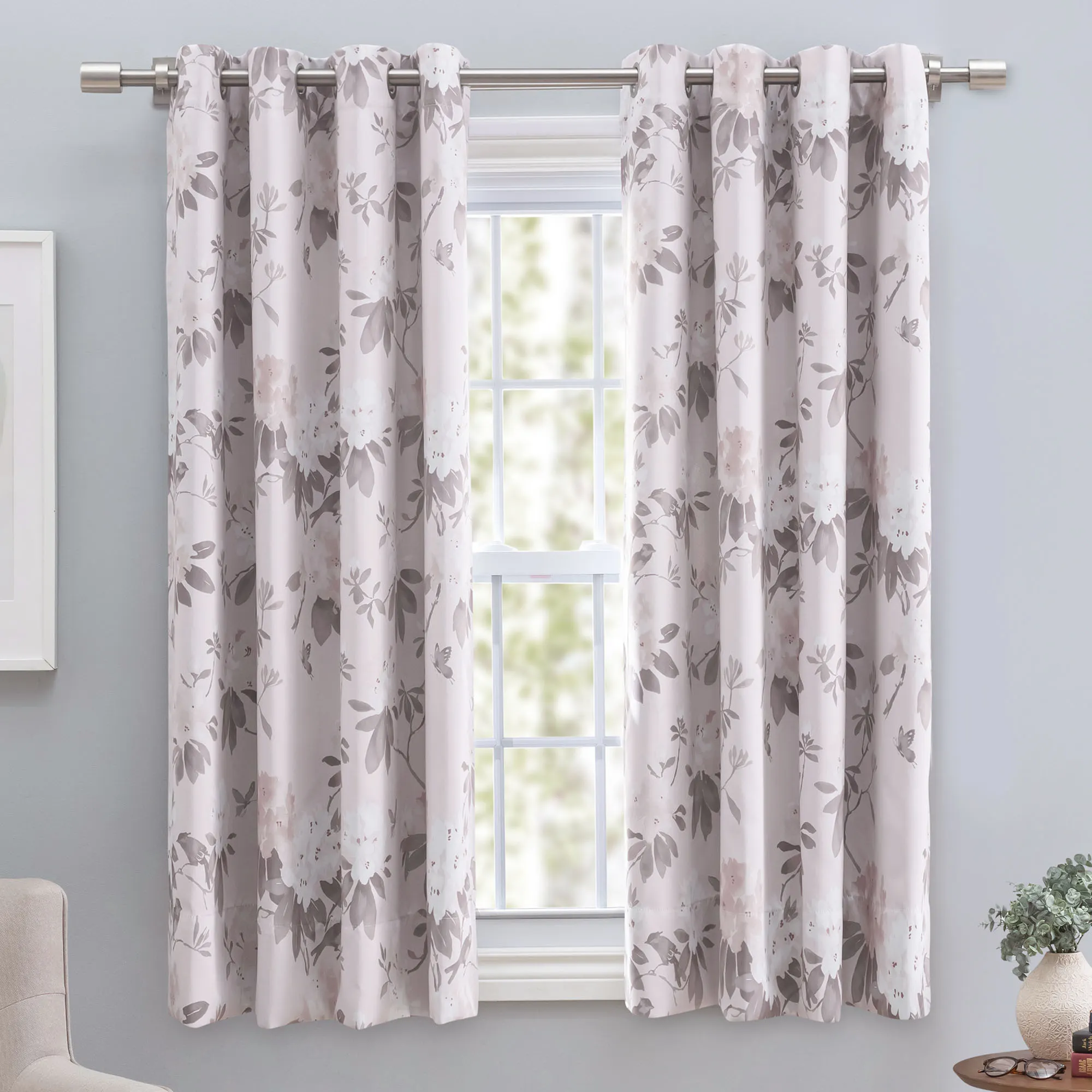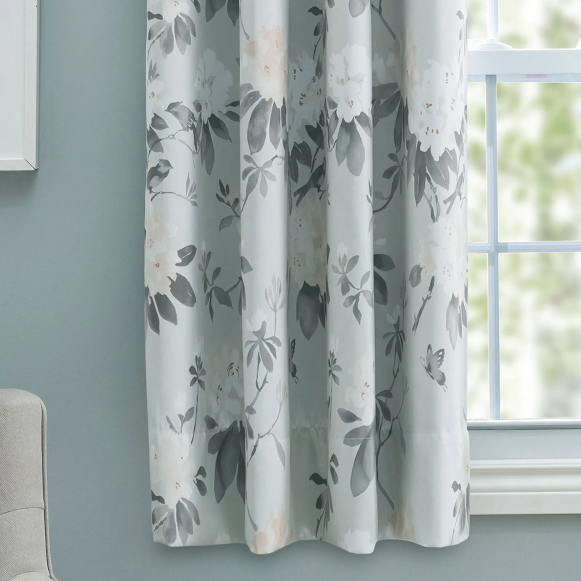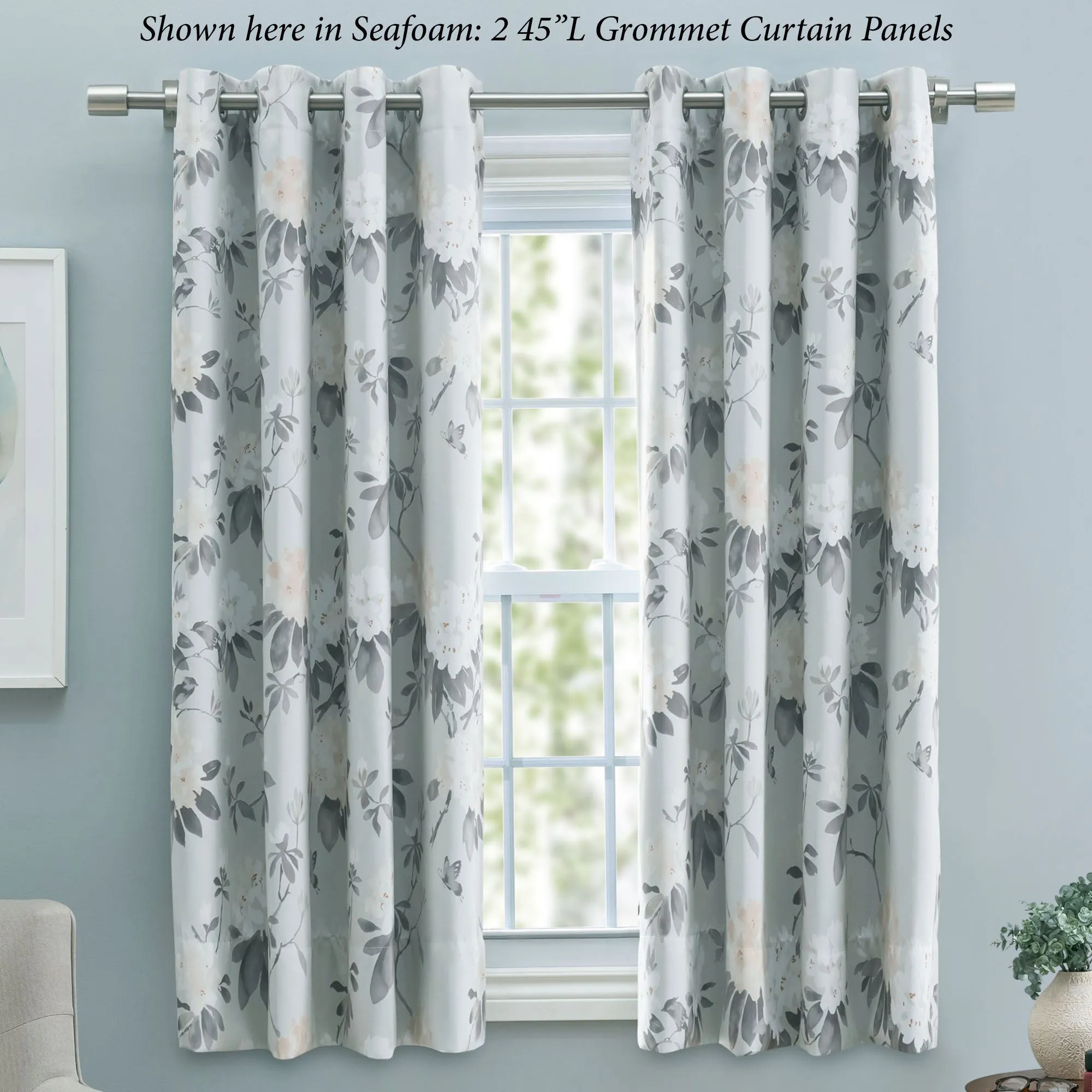 Serene Garden Floral Room Darkening Short Grommet Curtain Panel