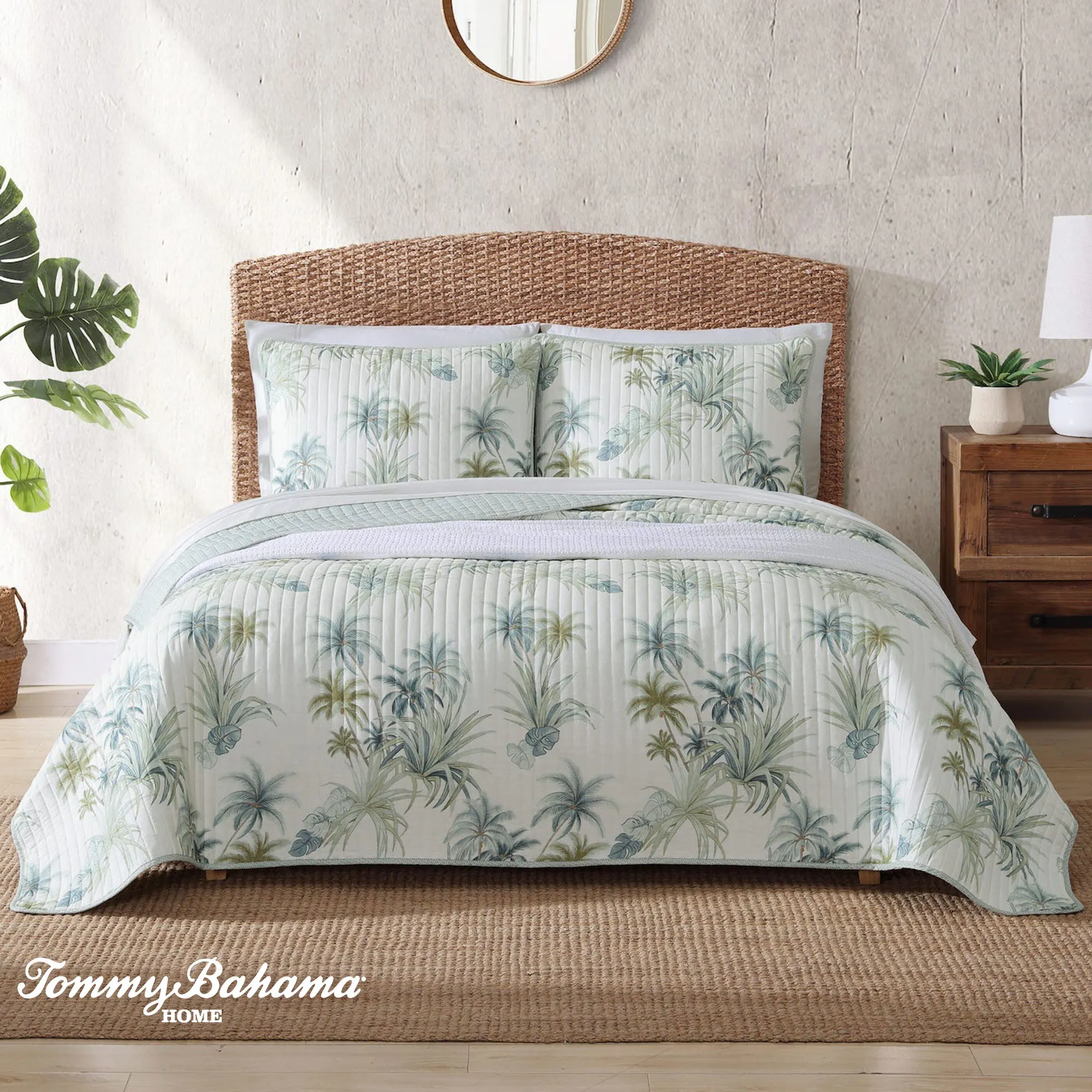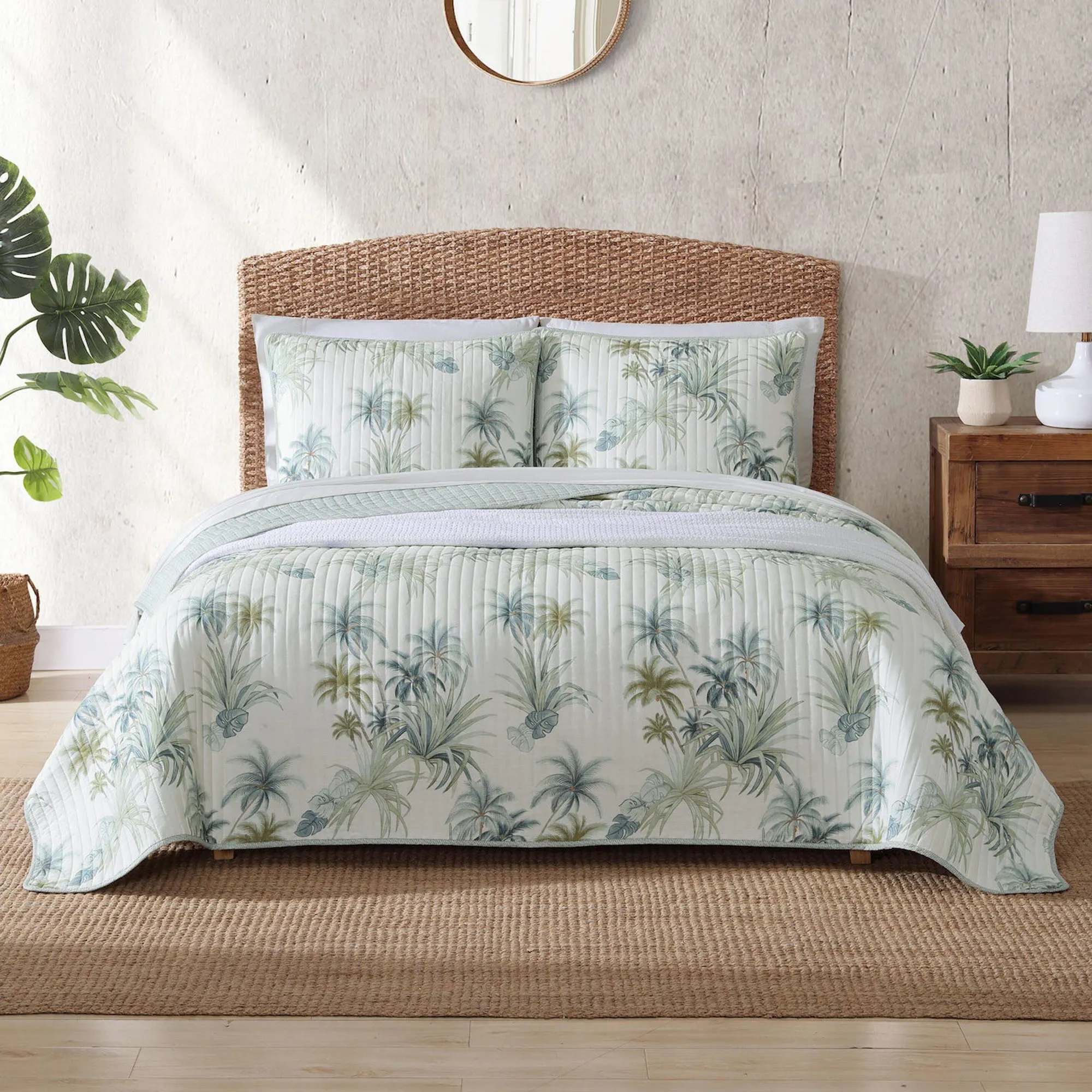 Serenity Palms Ivory Tropical Palm Tree Quilt Bedding by Tommy Bahama