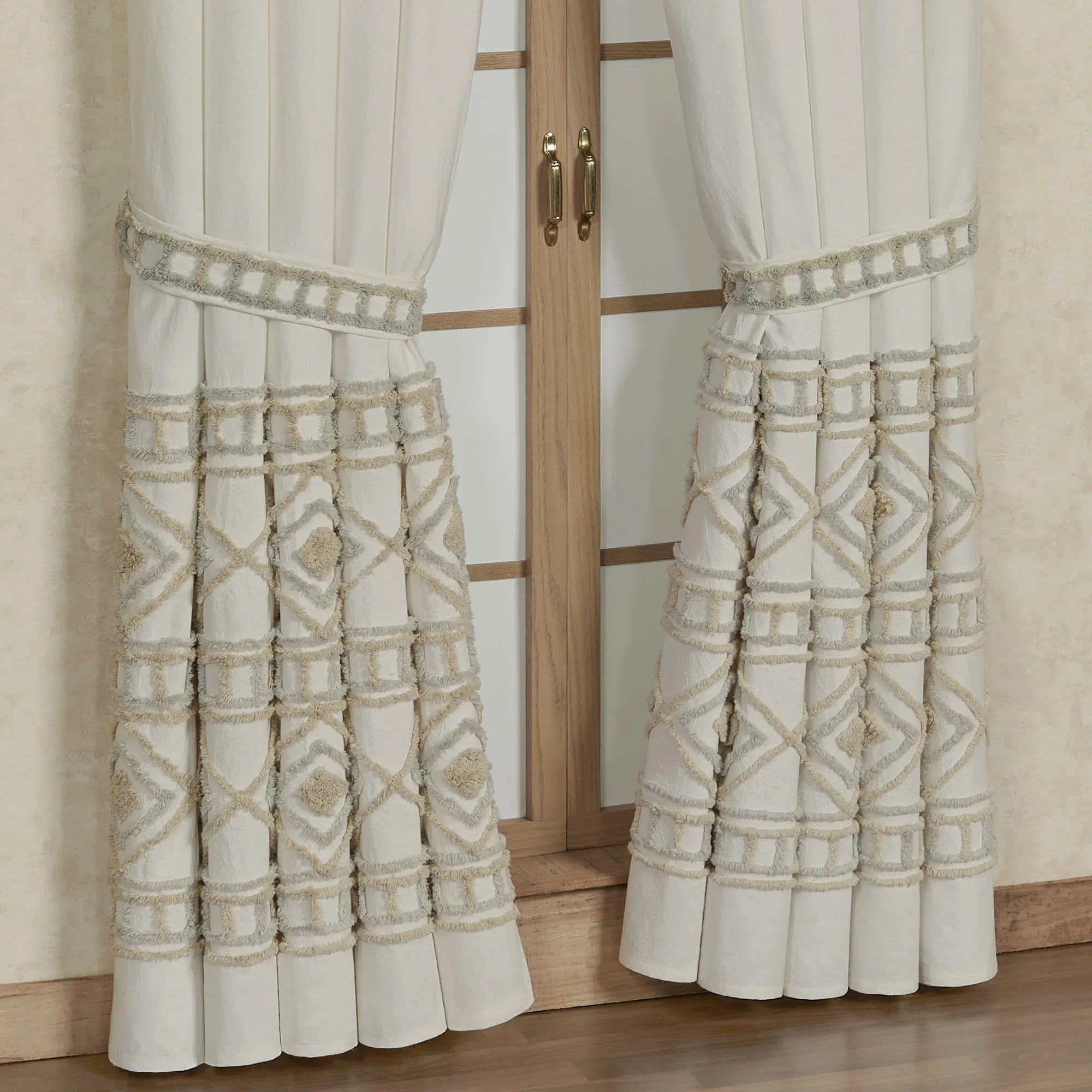 Serenta Ecru Tufted Cotton Chenille Geometric Window Treatment