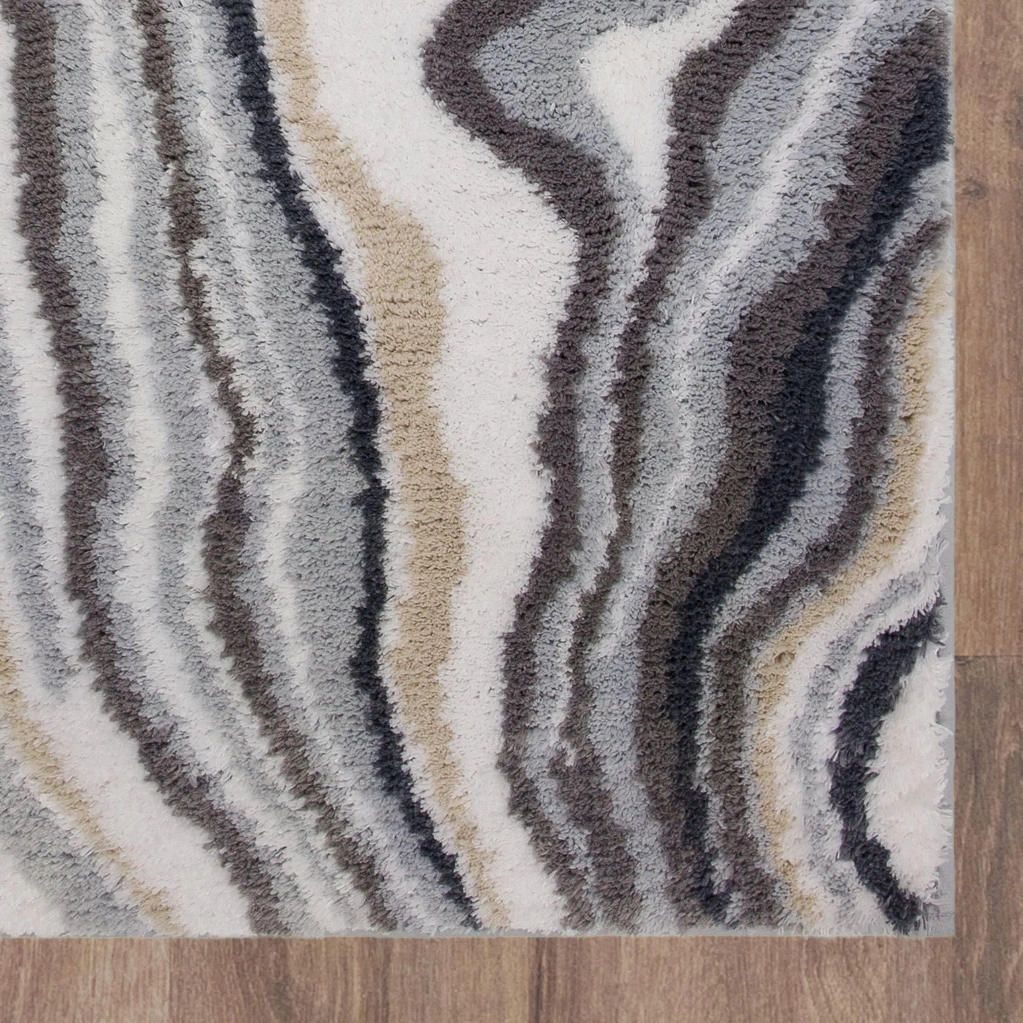 Serpentine marbled hues add intrigue to this super-soft bath rug. With a cushioned feel, the .5" thick rug features a micro denier polyester face backed in a thick gel foam latex that creates a nonslip, skid-resistant surface. Gray, charcoal, and dark beige colors combine with off-white and dark gray to create an abstract marbled design. Rectangle Rug is available in two sizes. Runner is 24"x60" (2'x5'). One-year limited manufacturer defects warranty. Machine washable. Imported.