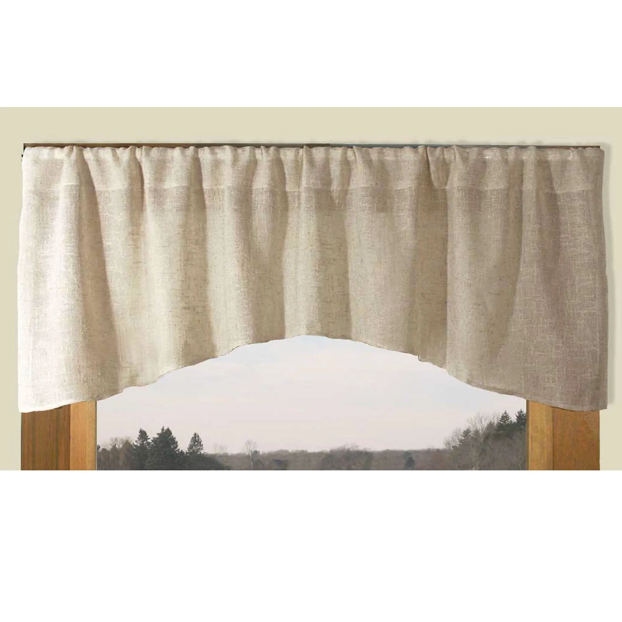Crescent Valance has a 13" center drop; measures 52"Wx18"L.