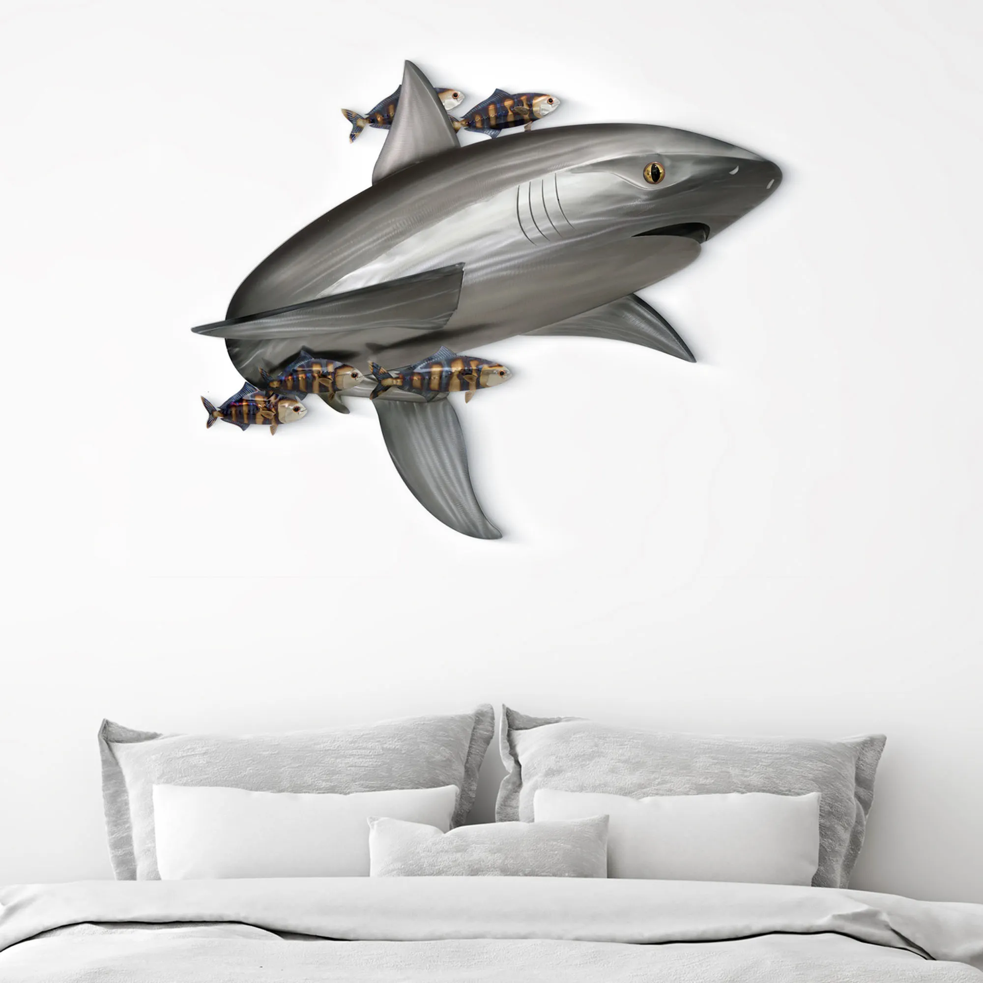Shark and Friends Indoor Outdoor Stainless Steel Wall Sculpture