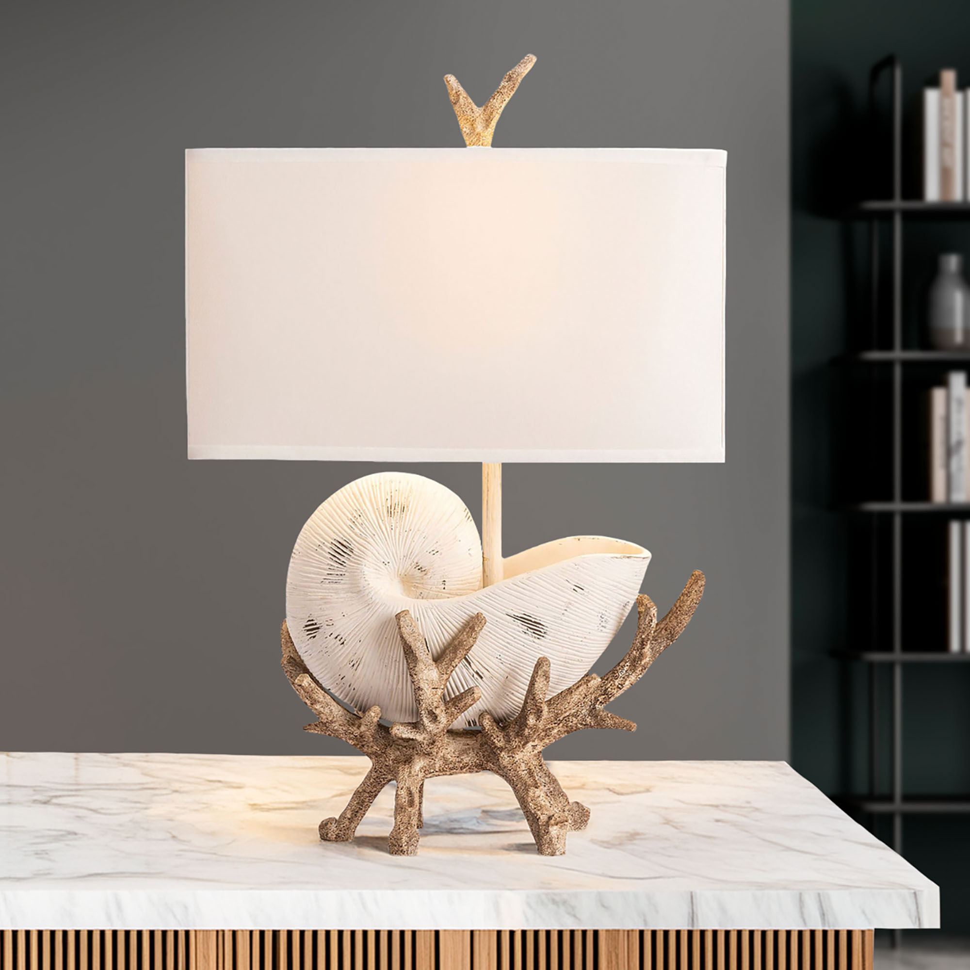 Nautilus Shell and Driftwood Coastal Table Lamp