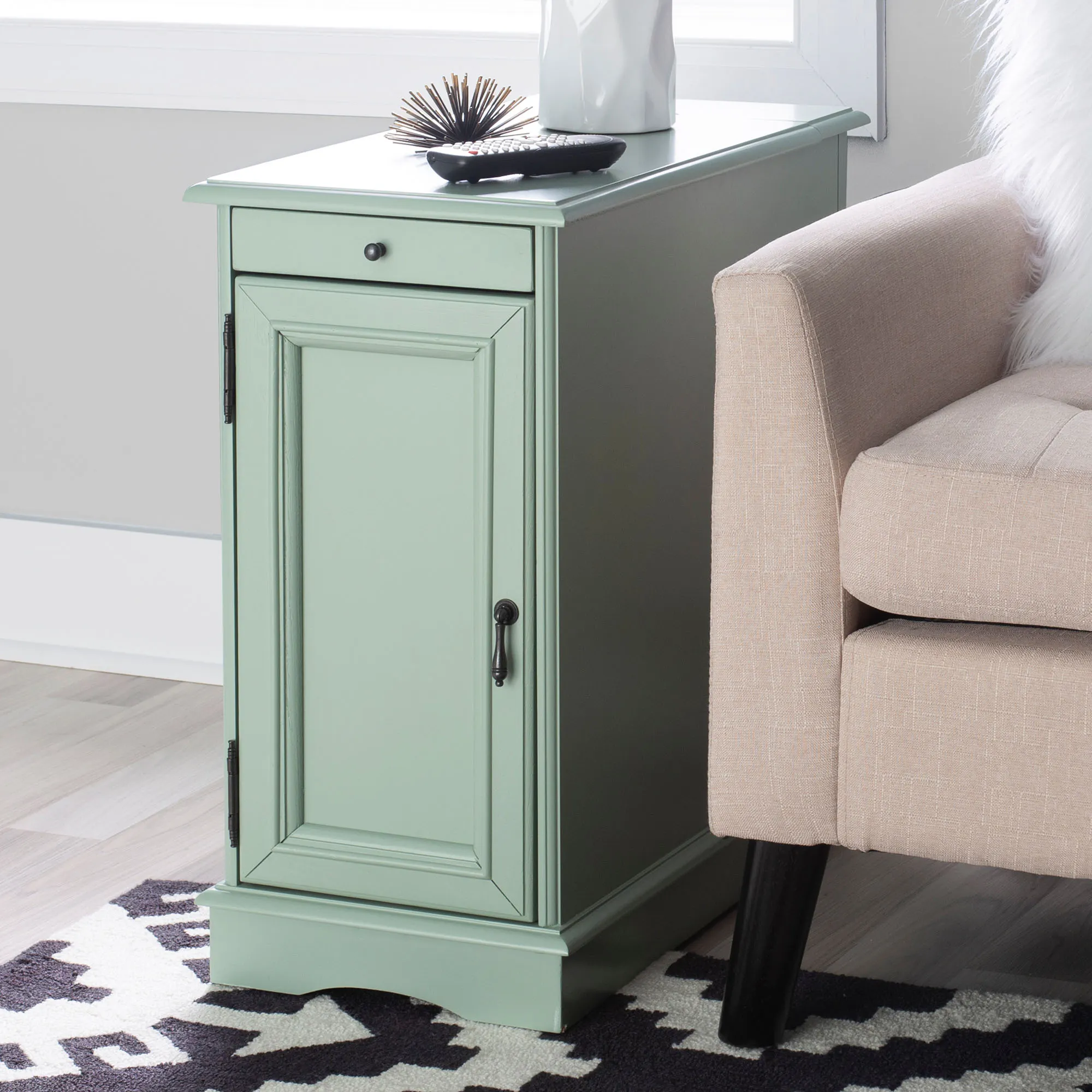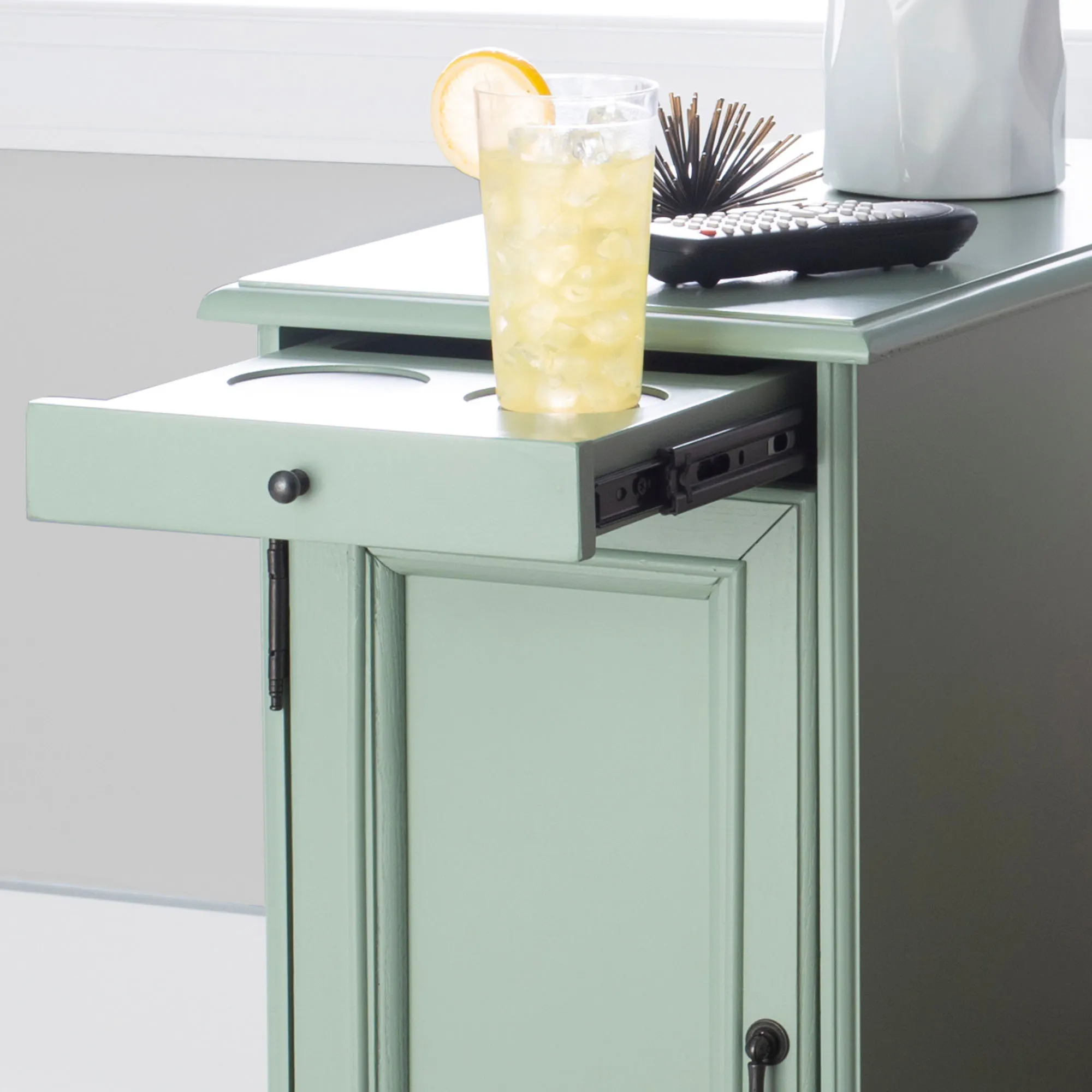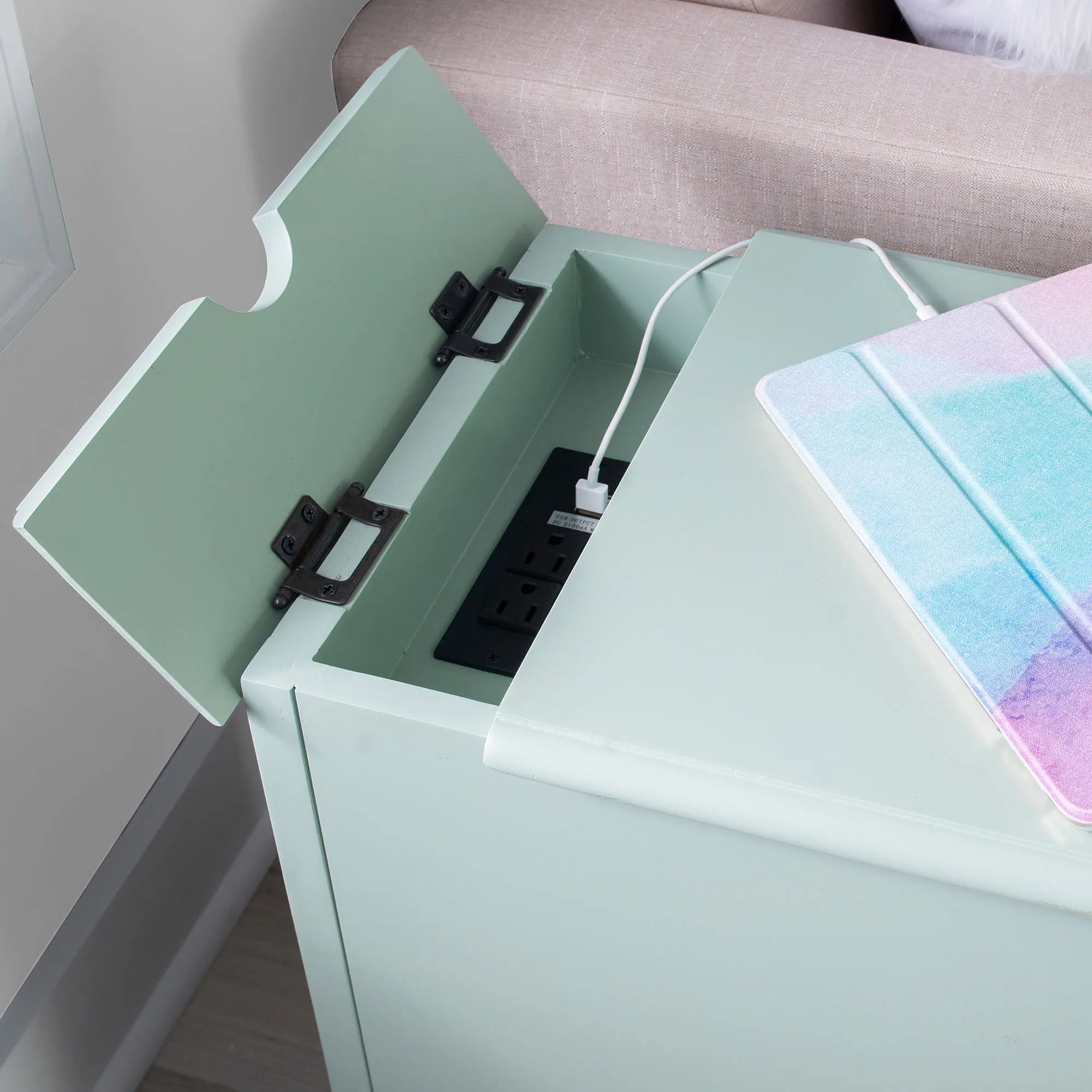 Shiloh Aqua Wooden Chairside Storage Table with USB and Outlets