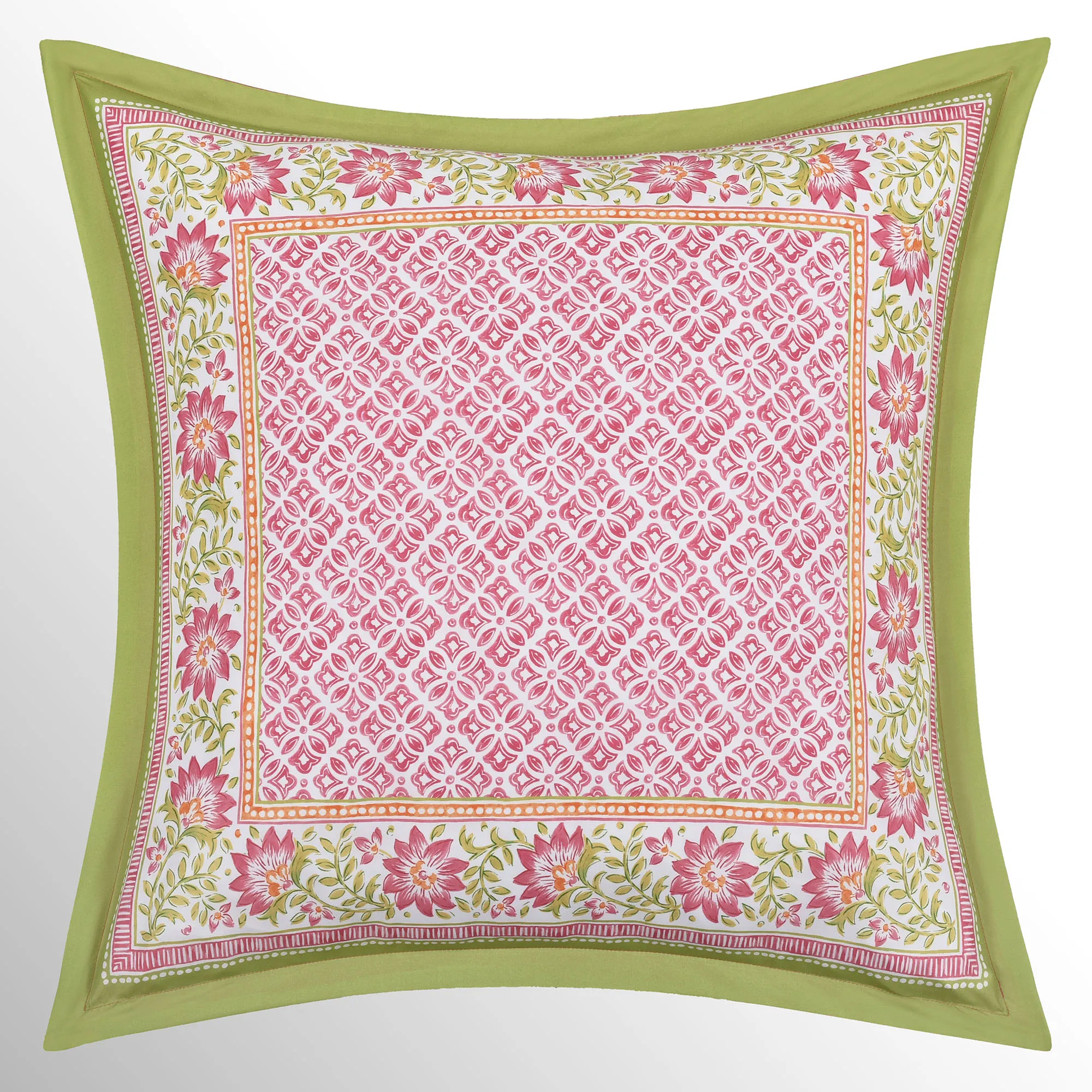 European Sham has green flanged edges; zipper closure.