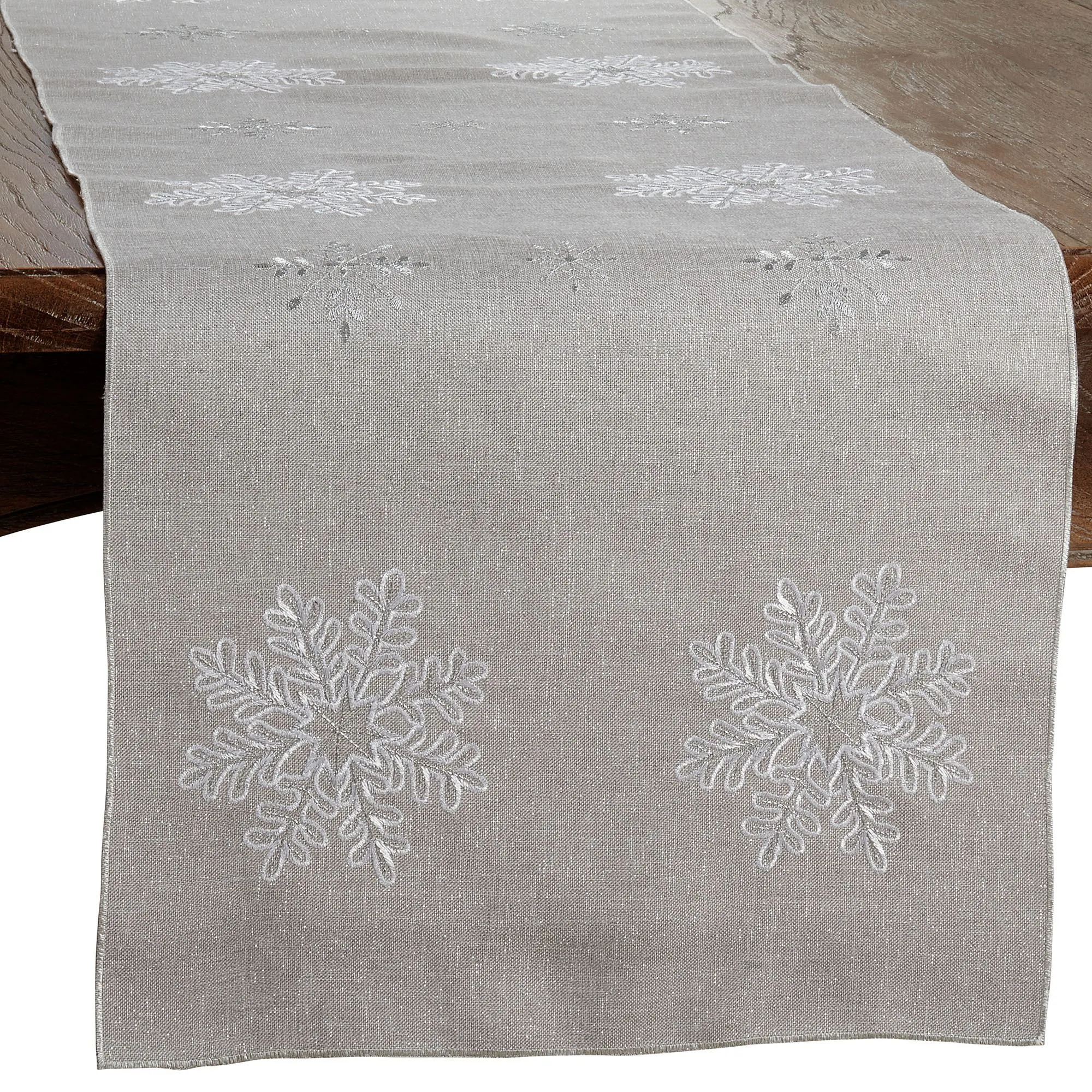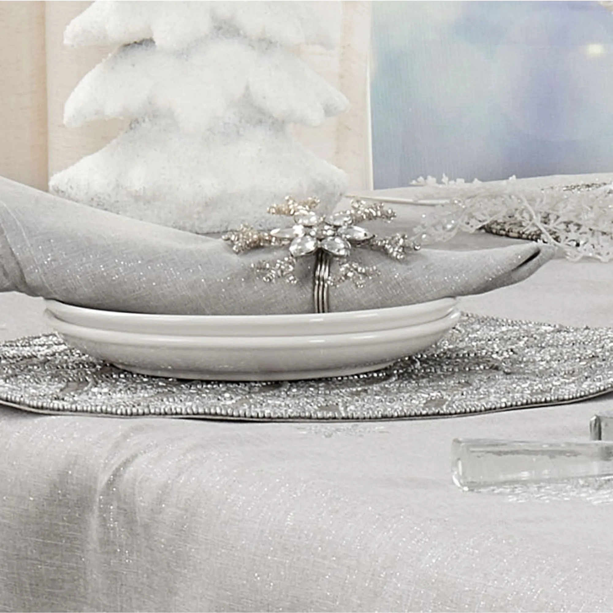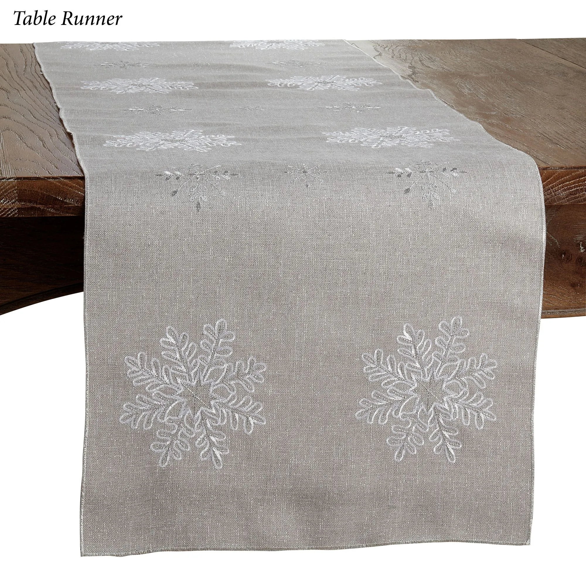 Shimmer Snowflake Embroidered Silver Winter Table Linens