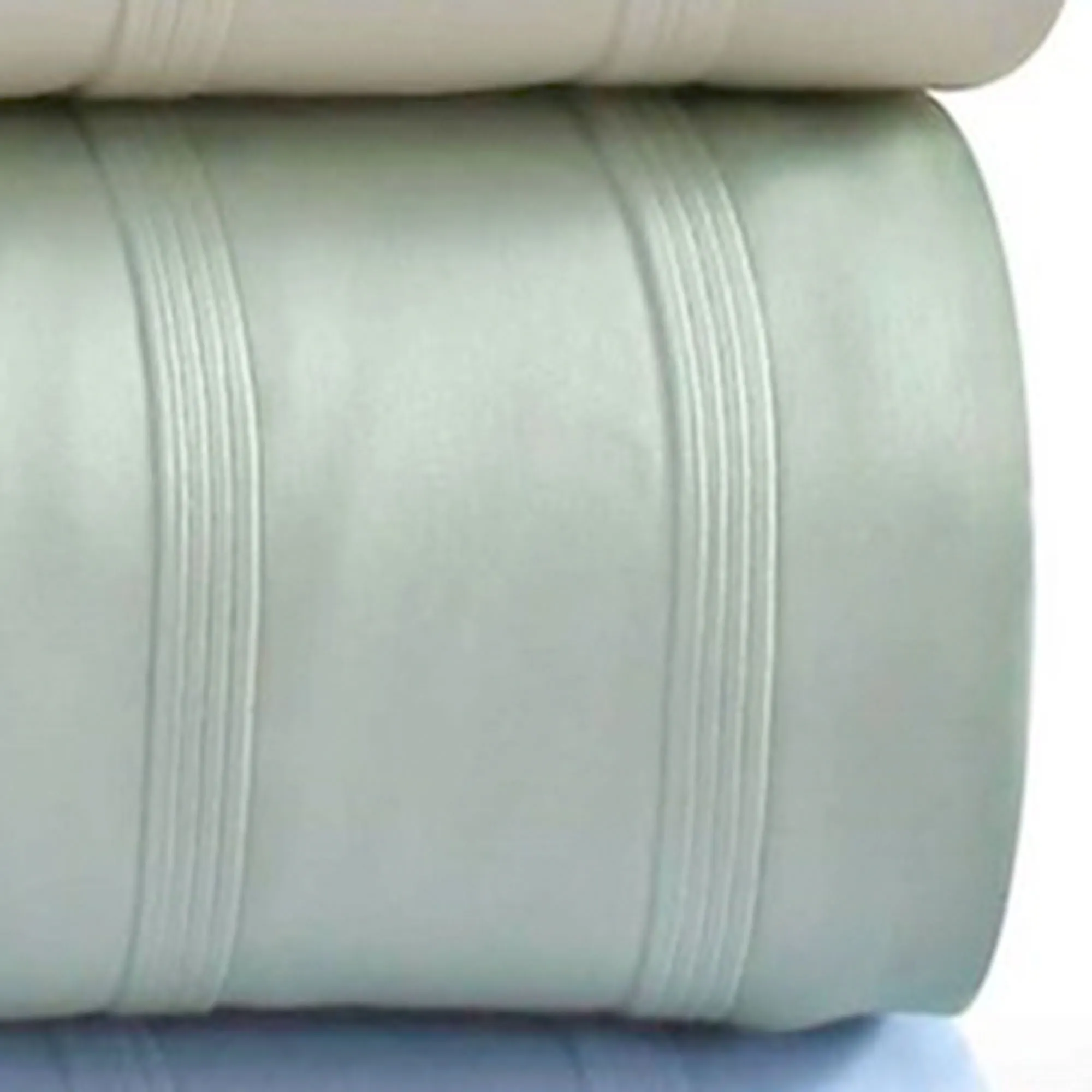 Enjoy napping or sleeping on the soft and comfortable Siesta Sheet Set. Made of rayon, these OEKO-TEX(R) certified sateen sheets are a solid color. The flat sheet and pillowcases have a 4" hem with accent stitches, and the fitted sheet has elastic all around with 18" deep pockets to fit up to a 21" deep mattress. Sheet set includes flat sheet, fitted sheet, and pillowcases. Machine washable. Imported.
