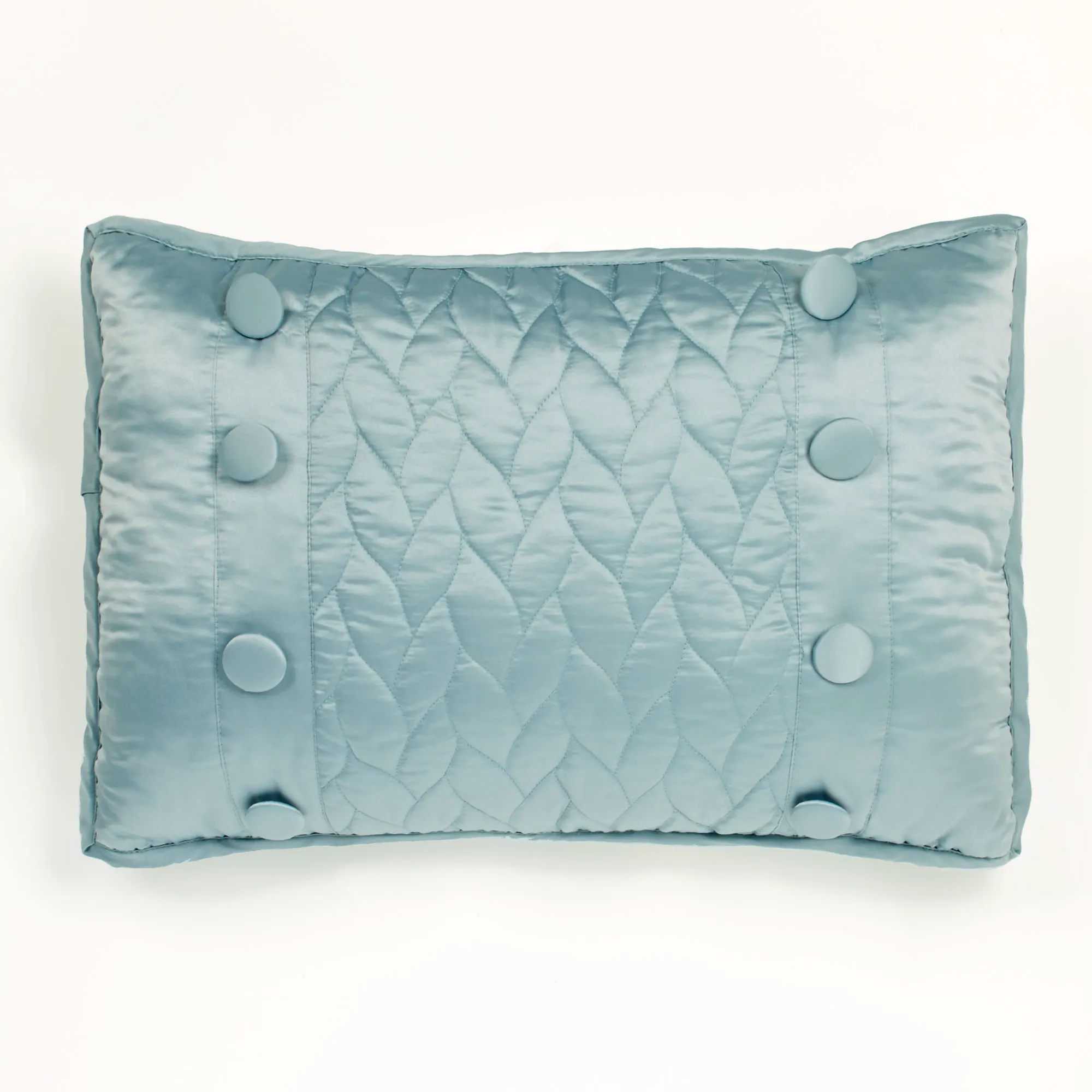 This throw pillow is absolutely gorgeous! Beautiful shade of blue, has excellent quality fabric and detailing. However, it was a bit too big for my bed. A few inches smaller in length and width would have worked better for me.