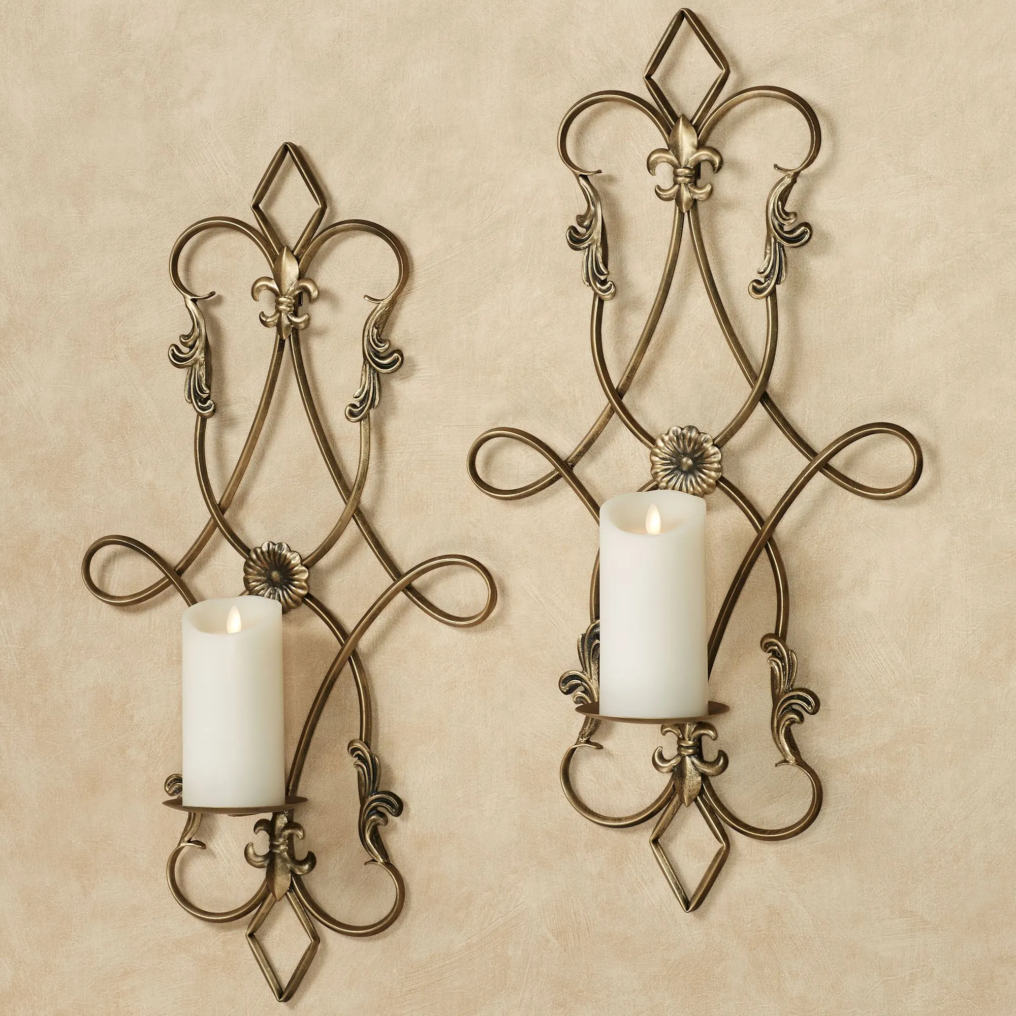 Silvana Antique Gold Ornate Fleur de Lis Metal Wall Sconce Pair