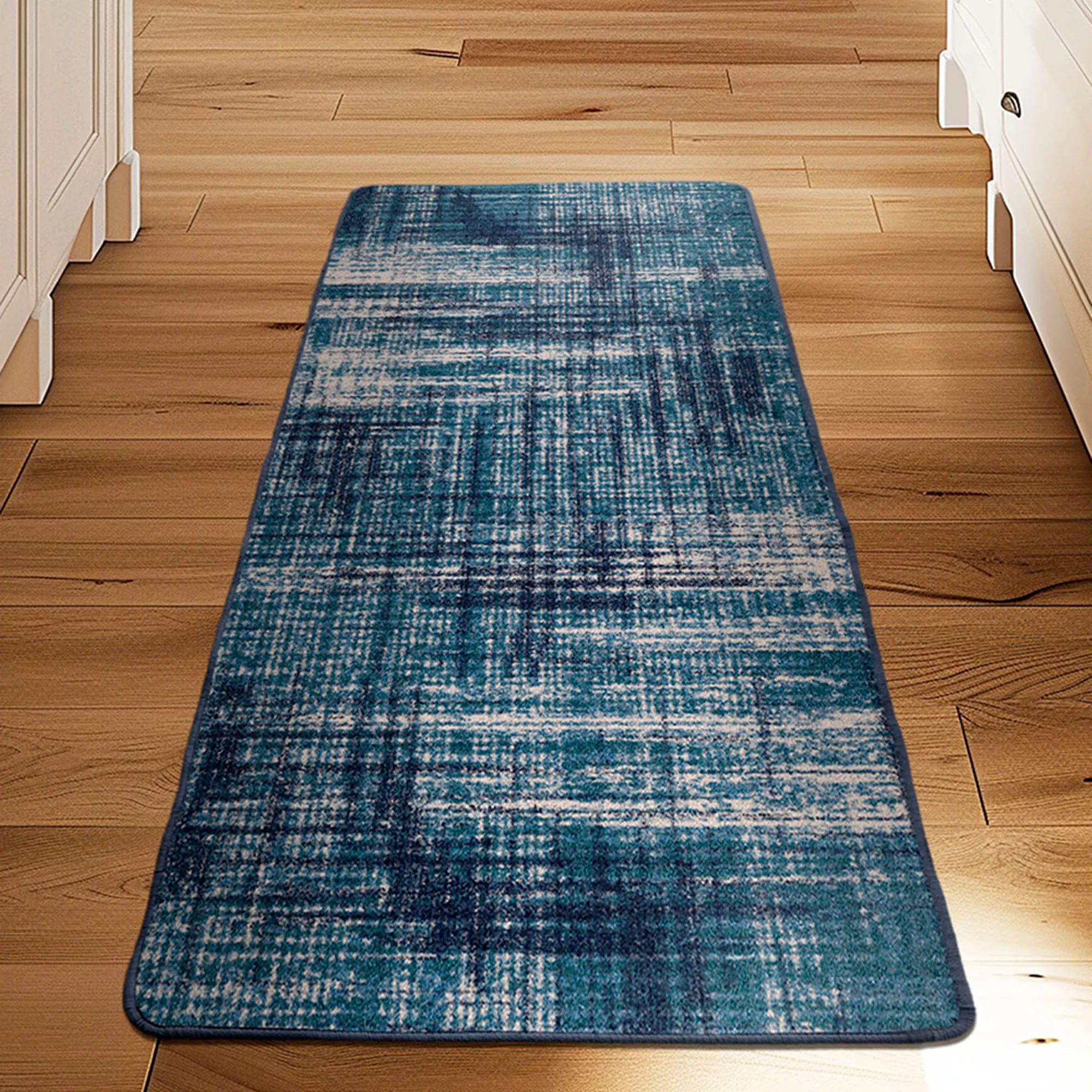 Simply Casual Blue Stain Resistant Abstract Area Rugs