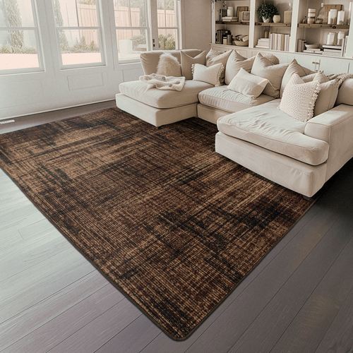 Simply Casual Brown Stain Resistant Abstract Area Rugs