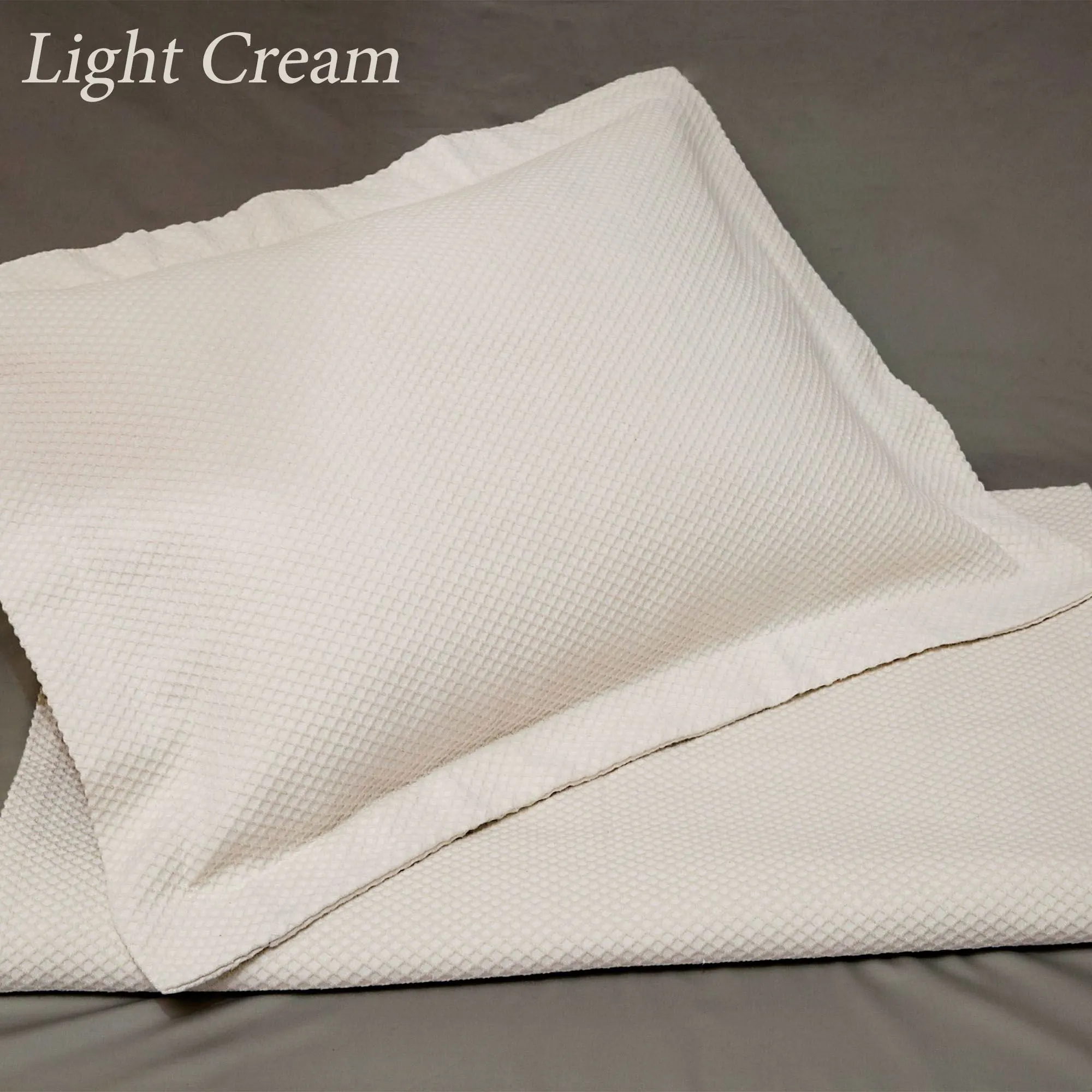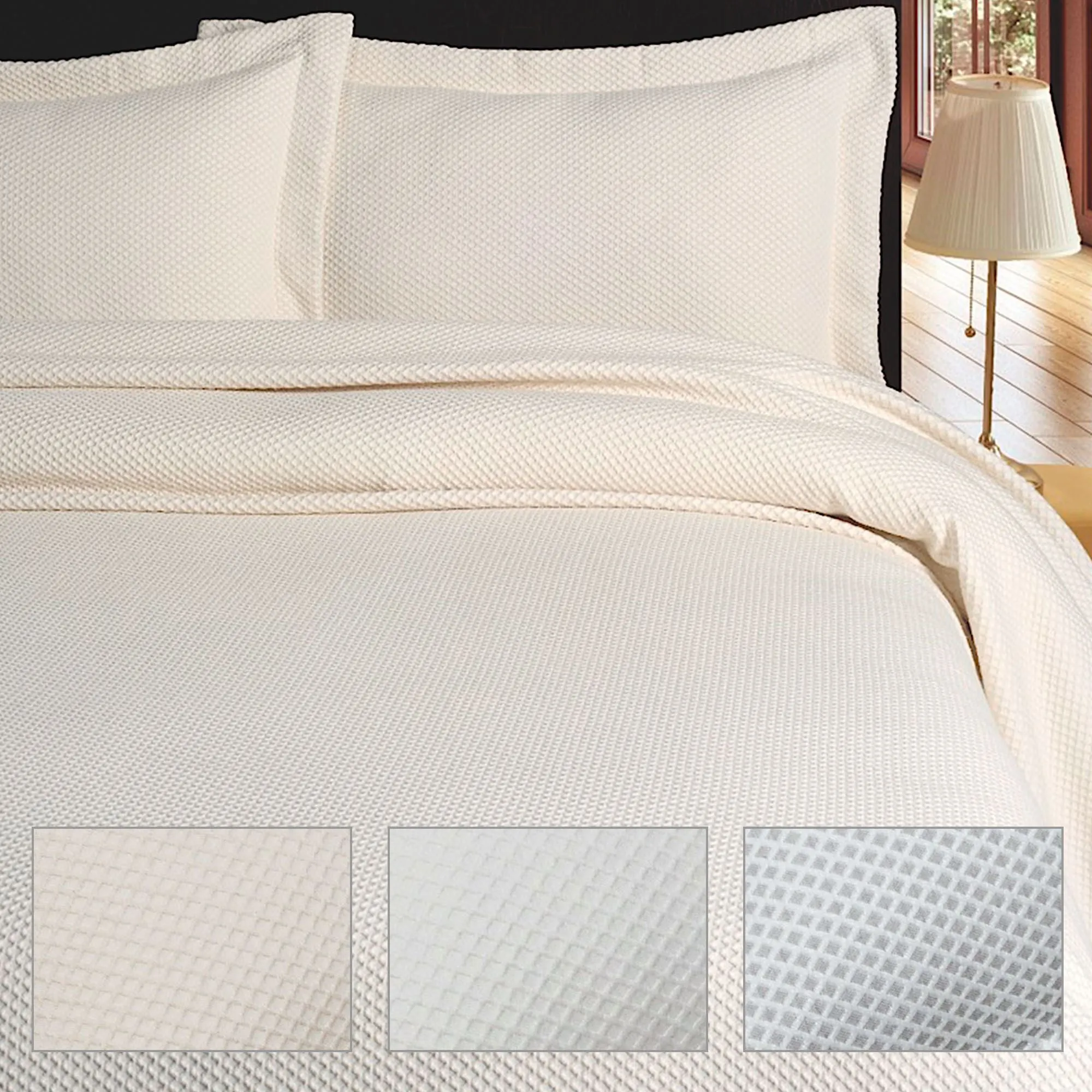 The elegant Soft Diamond Matelasse Coverlet by Belle Epoque(TM) adds a timeless addition to your bedroom. This oversized, solid color, cotton/polyester coverlet features a textured, woven diamond matelasse design outlined in white on all except Light Cream. Machine washable.