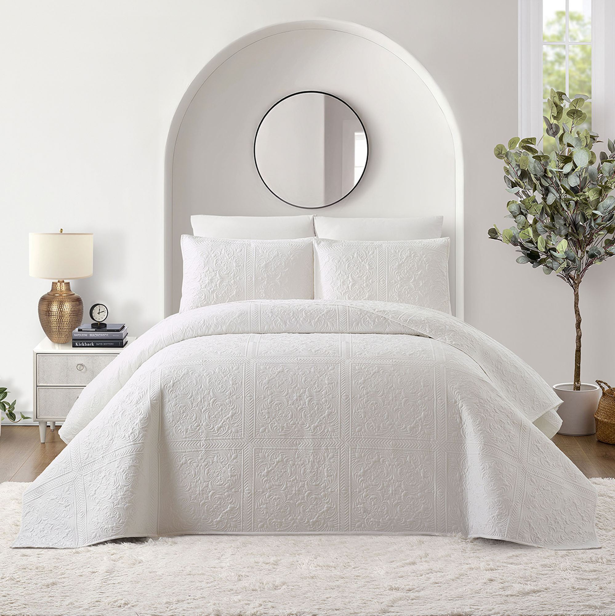 Modern Heirloom Solid Stitch Lightweight Solid White Bedspread Set Bedding