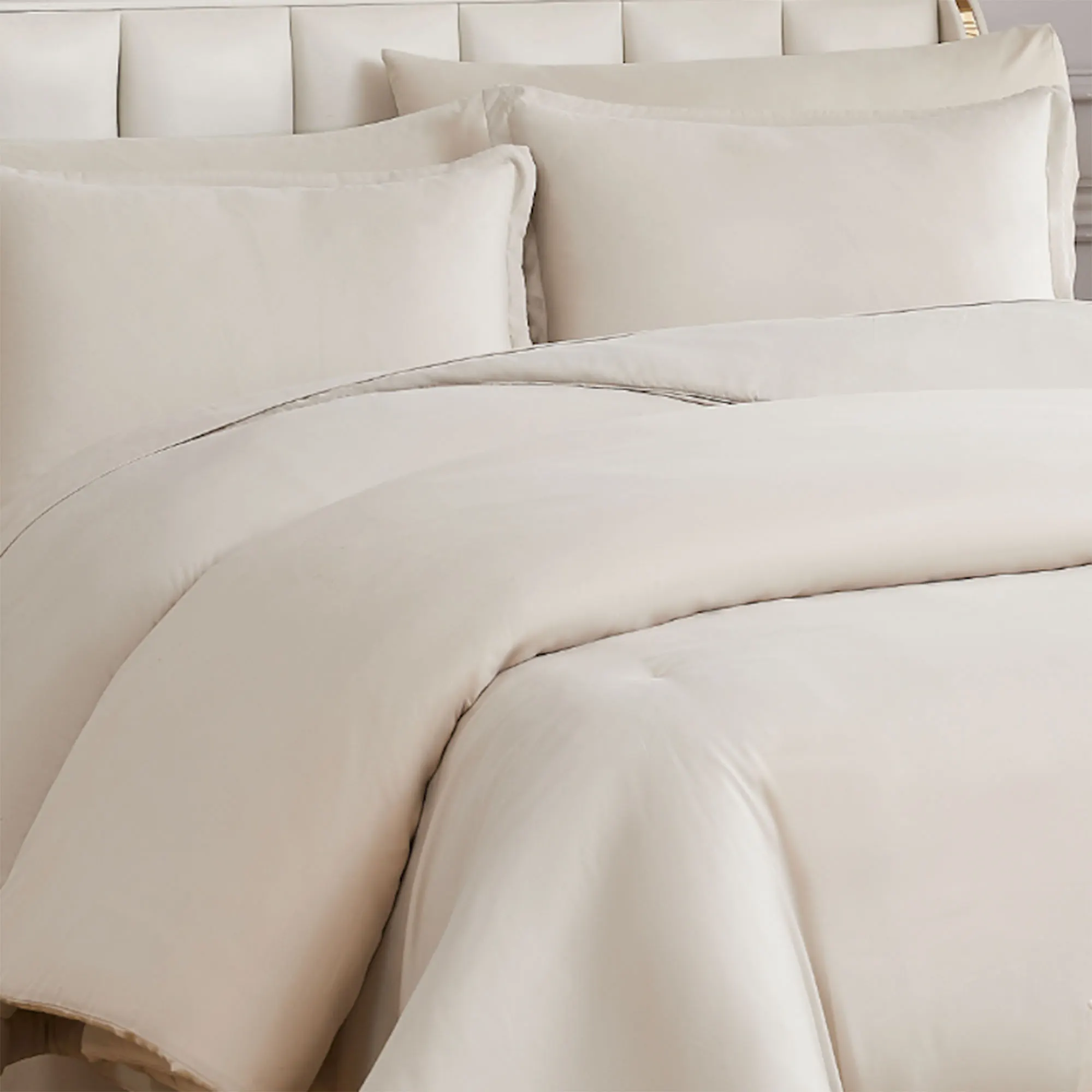 Solitude 5-7 pc Easy Care Solid Beige Comforter Bed Set by Sherry Kline