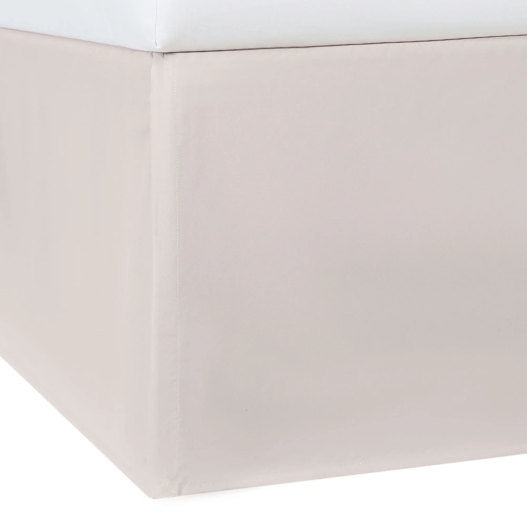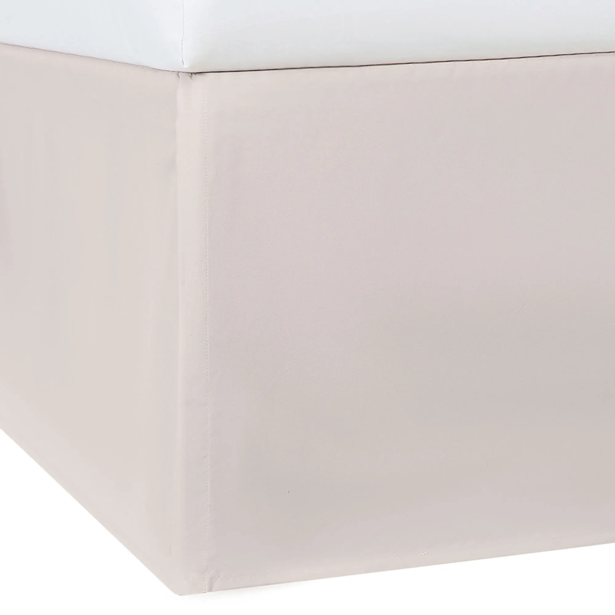 Bedskirt has a solid color 15" drop with kick pleats and split corners; imported. Specify Twin, Full, Queen, King, or Cal King.
