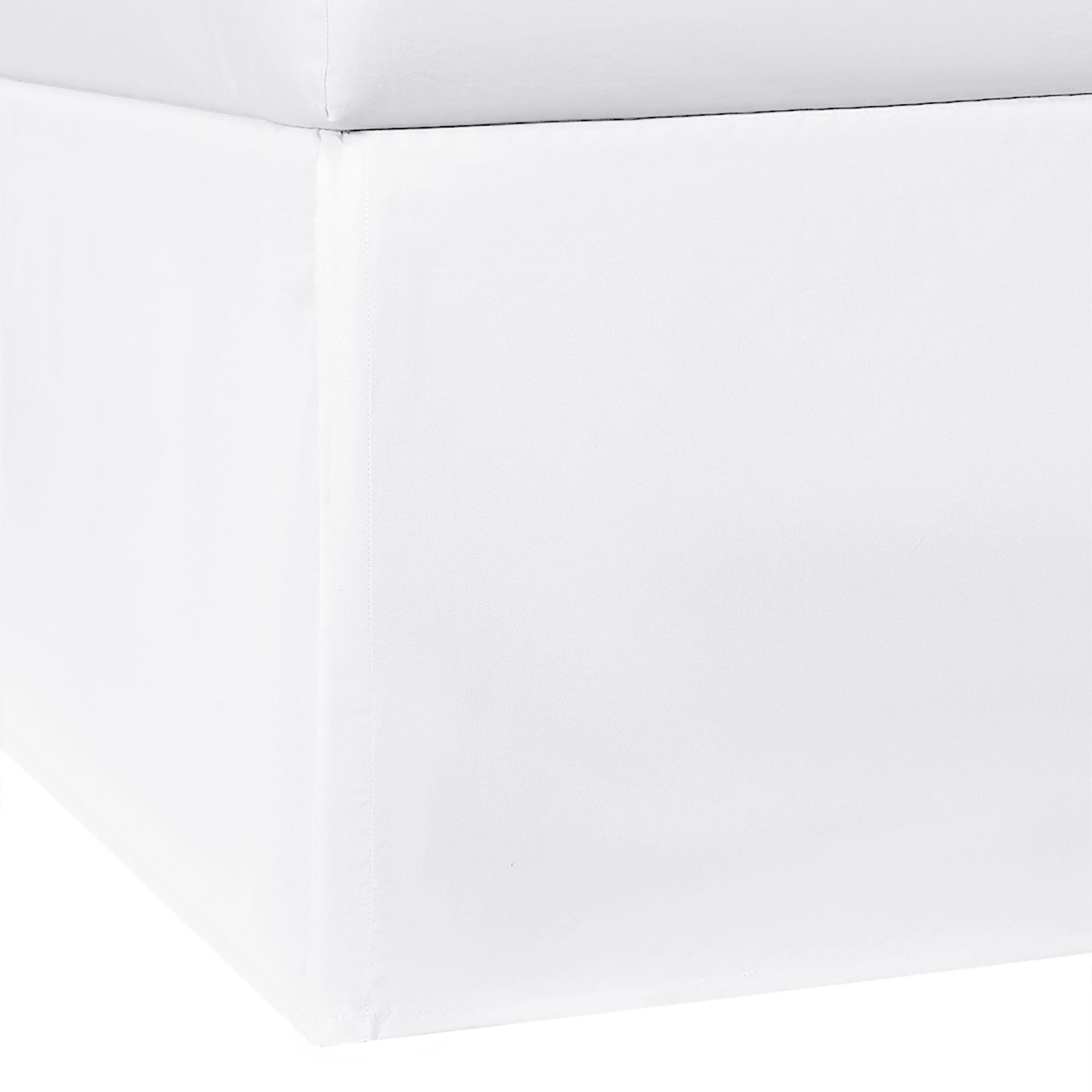 Bedskirt has a solid color 15" drop with kick pleats and split corners; imported. Specify Twin, Full, Queen, King, or Cal King.