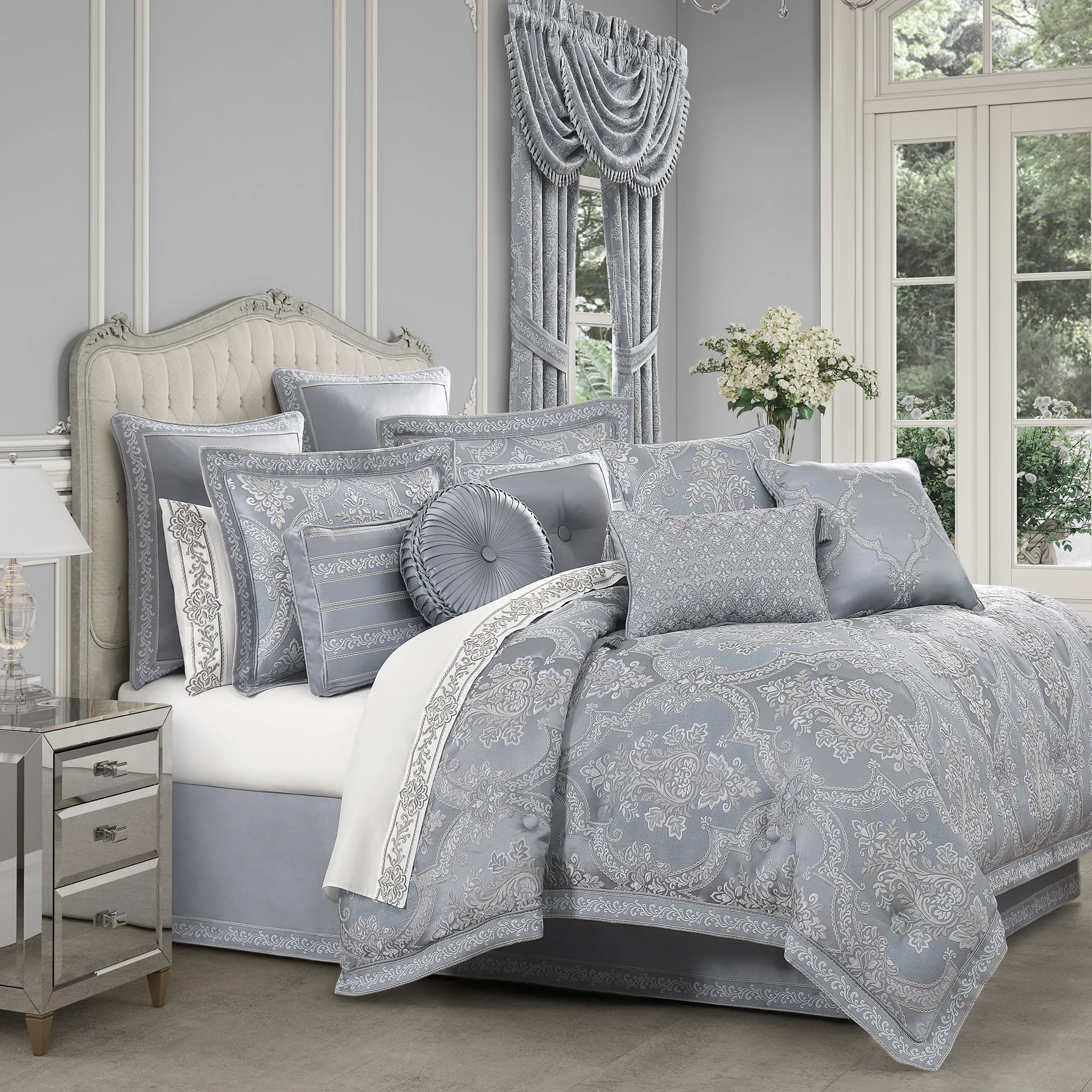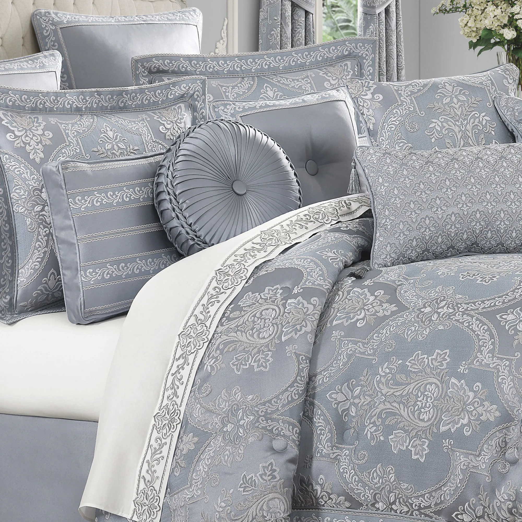Sondra Powder Blue Damask Comforter Set Luxury Bedding by J Queen New York