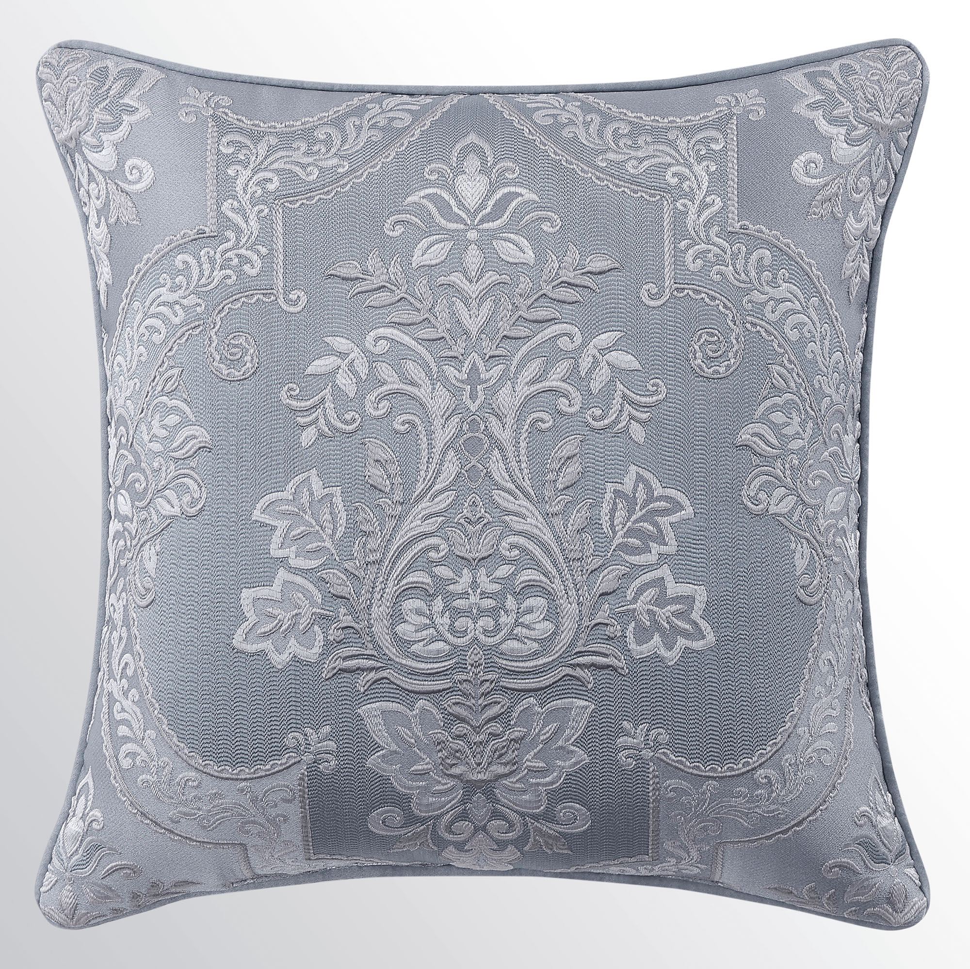 Luxuriate in the lavish allure of the Sondra Bedding. From J. Queen New York, the jacquard-woven polyester ensemble features timeless damask encased in quatrefoils on smooth and intricate herringbone-textured grounds. Leafy scrollwork trim creates exquisite borders for the quatrefoils as well as embellishing other elements in a grand design. Hues of powder blue envelop the ensemble in a soothing tone.