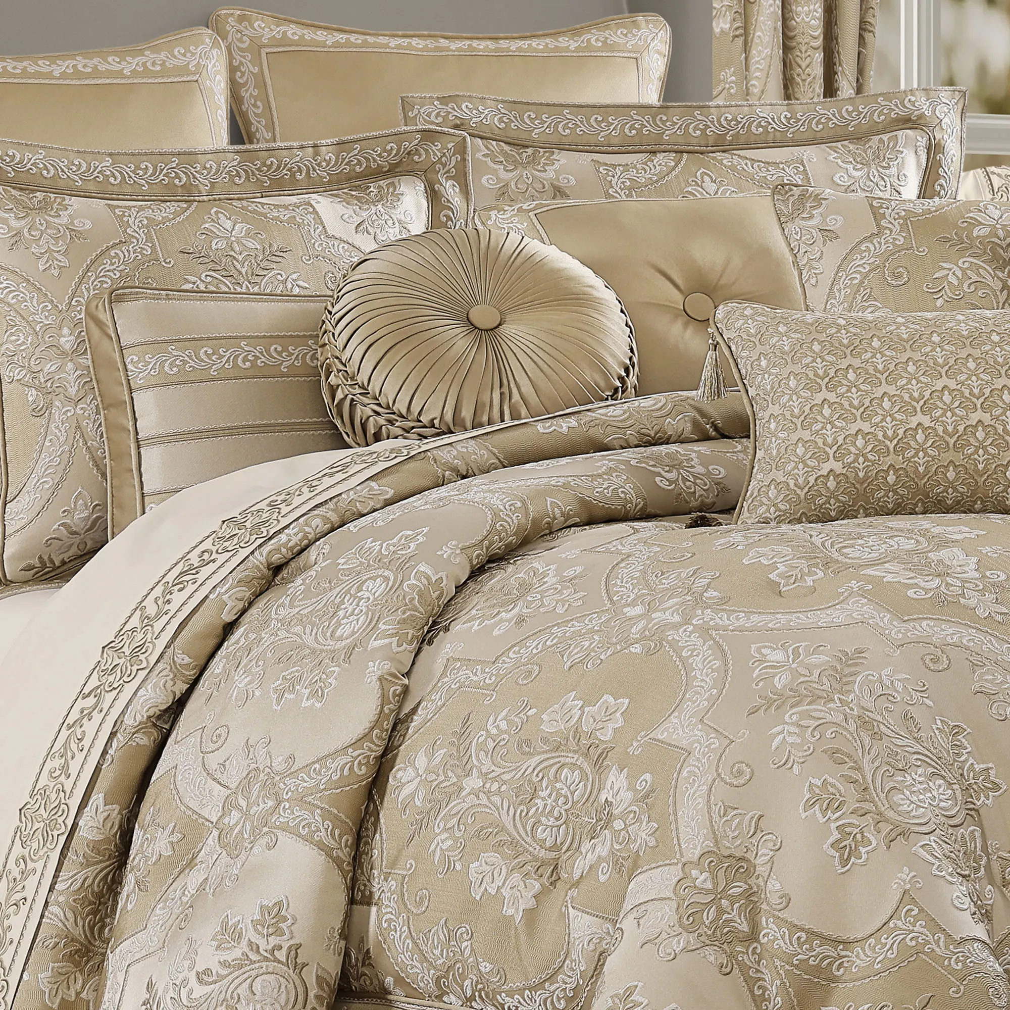 Sondra Gold Damask Comforter Set Luxury Bedding by J Queen New York