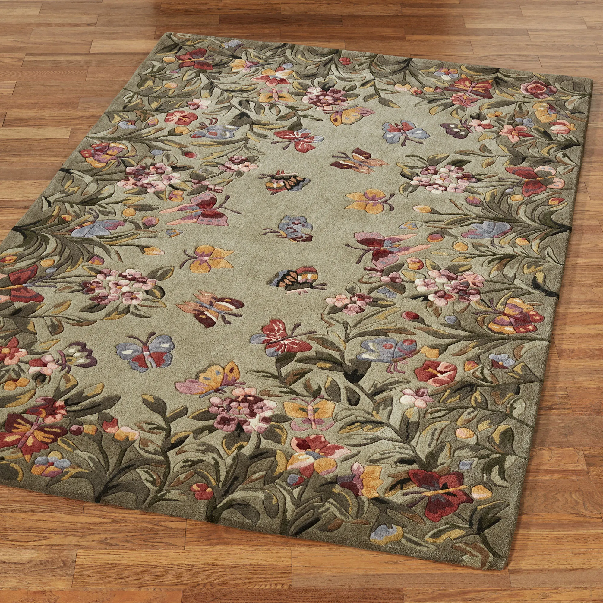 Sophia Garden Butterfly Floral Hand Tufted Wool Area Rugs
