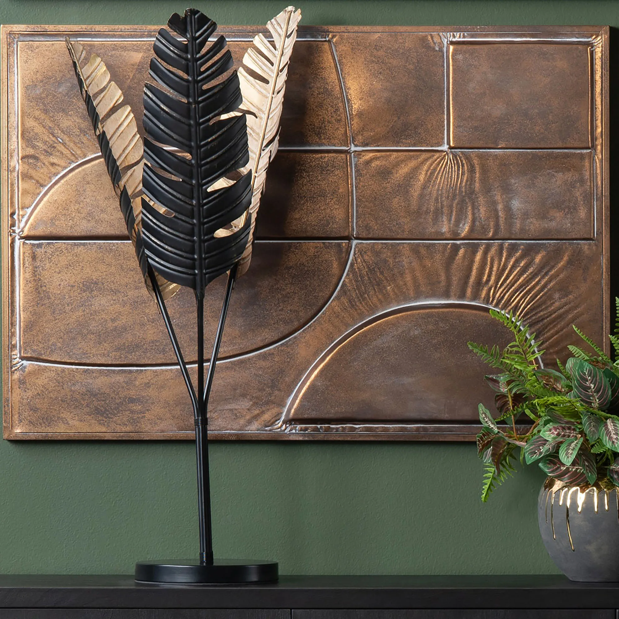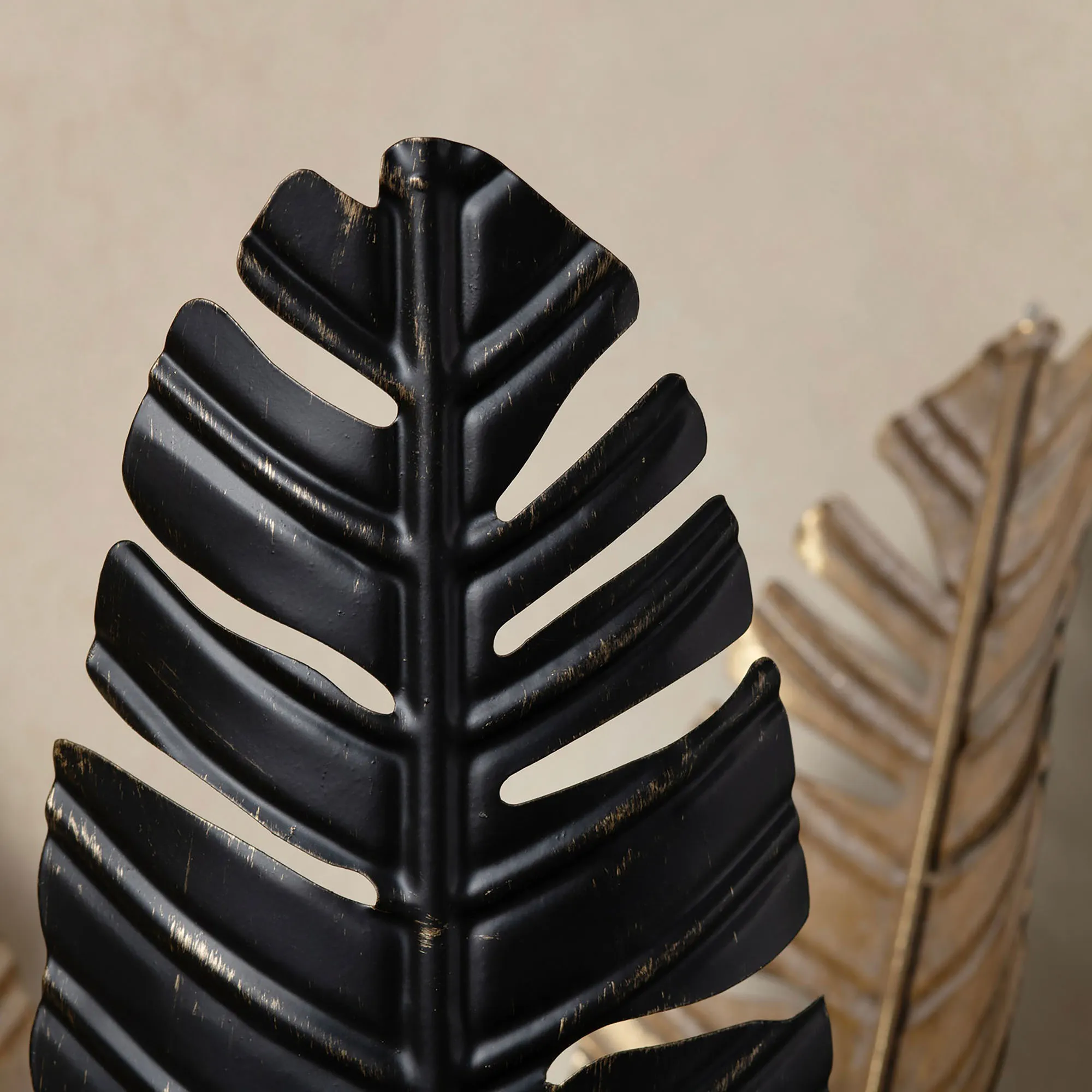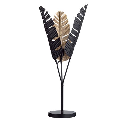 Soren Black and Gold Metal Tropical Palm Leaf Torchiere Table Lamp