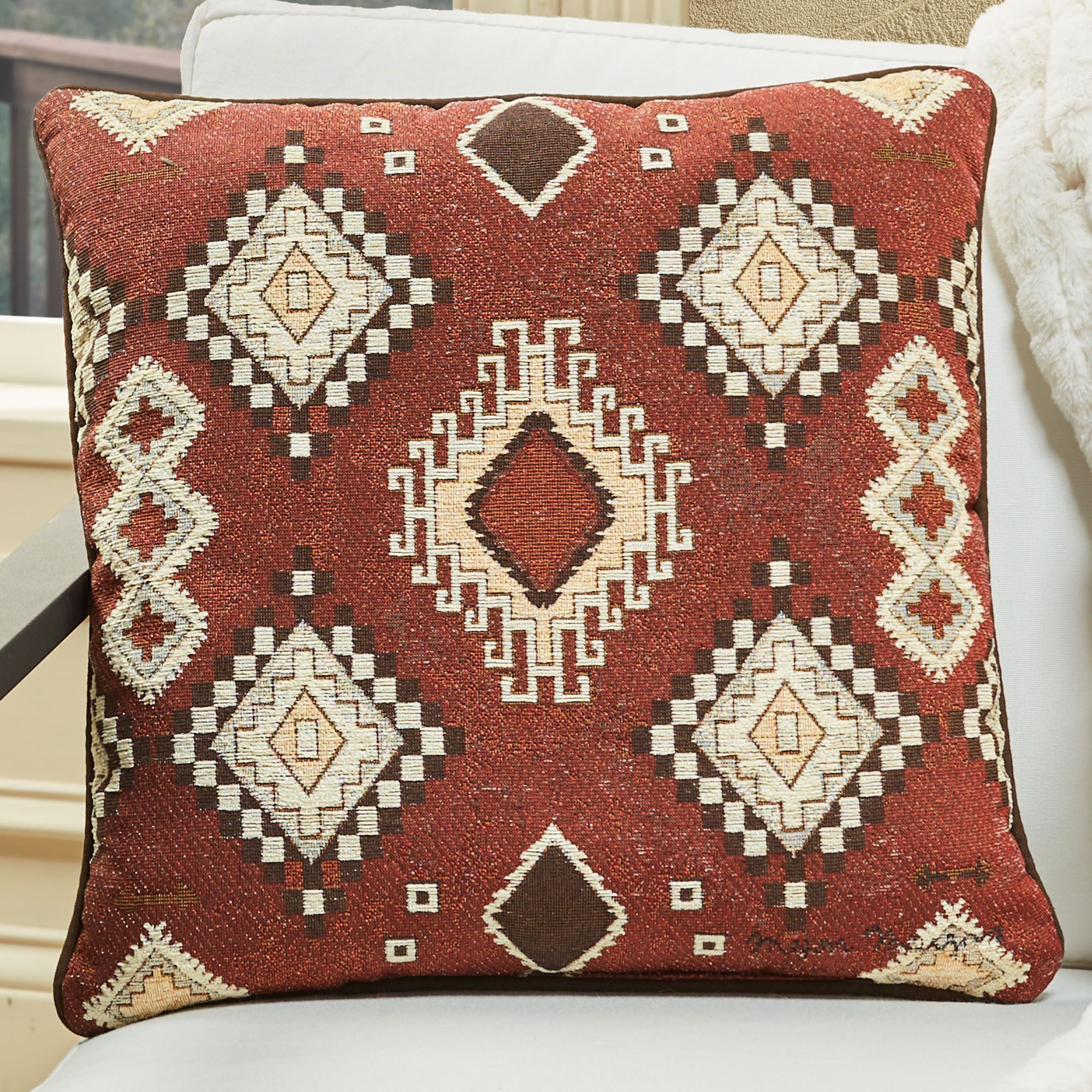 The Southwest Diamond Pillow dazzles any space with a little bit of rustic flair. This reversible, rayon/polyester/cotton pillow, from Manual Woodworkers(TM) and (C)Megan Meagher/World Art Group, features geometric motifs on a cinnabar background. The reverse has motifs on a light cream background. Colors include shades of brown, ivory, and cinnabar. Measures 17" sq. For indoor use only. Fill is polyester. Dry or spot clean. Imported/USA.