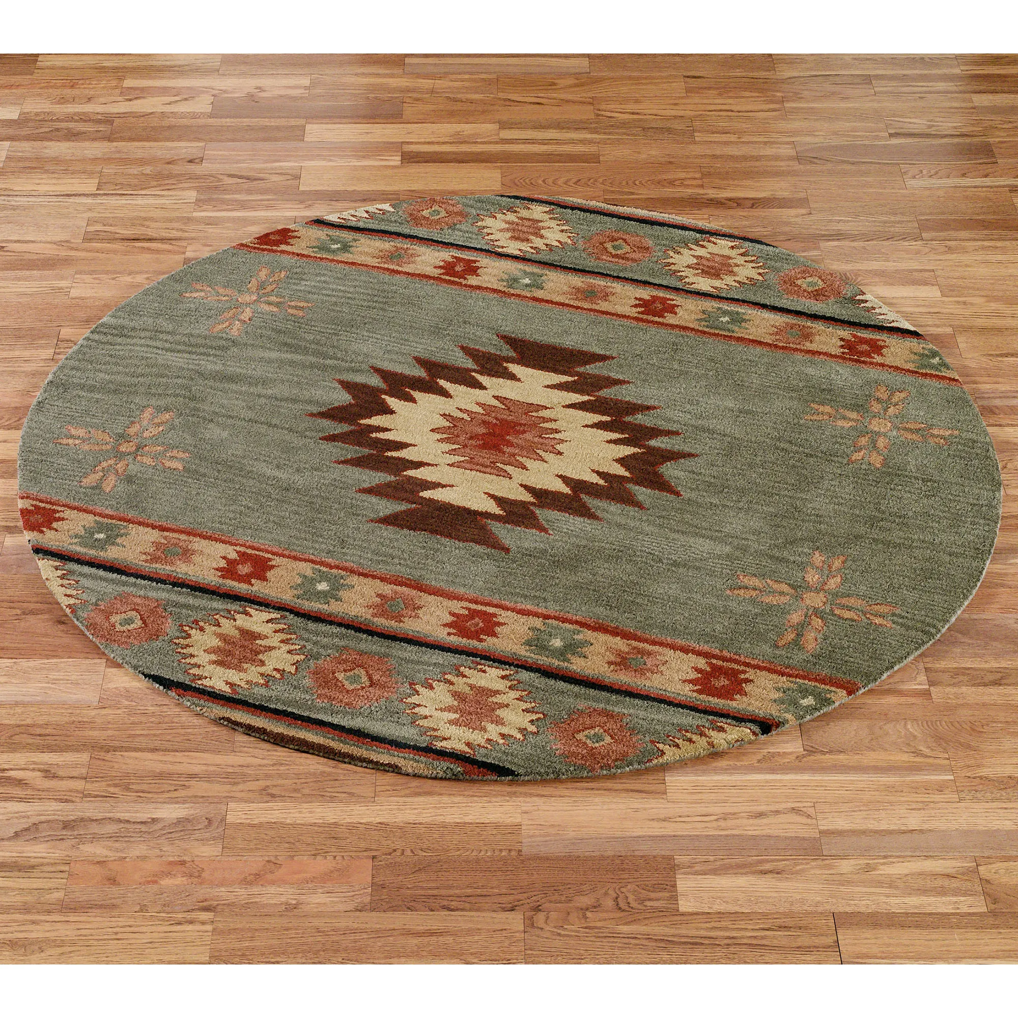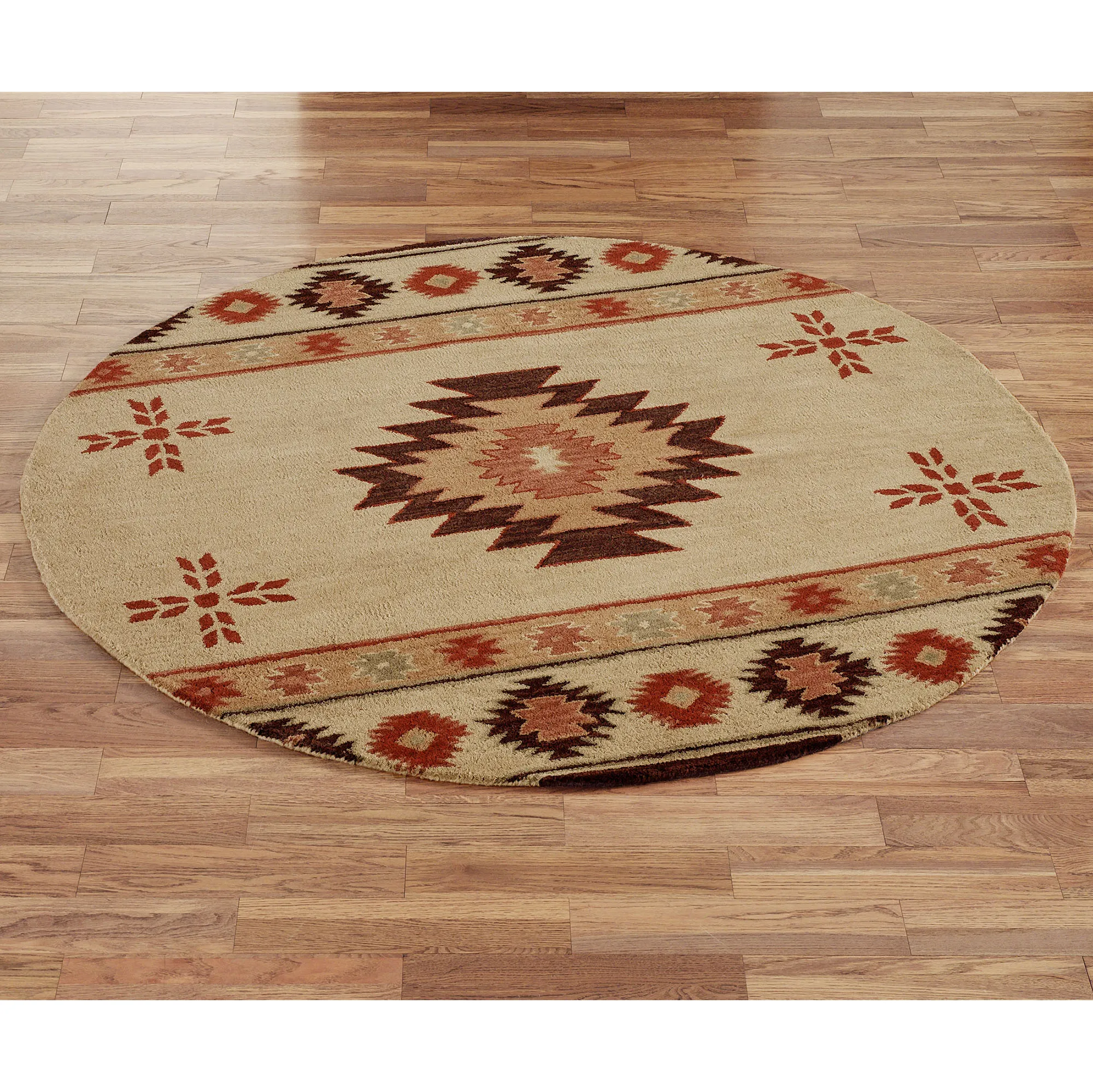 Ancient motifs adorn the hand-tufted wool Southwest Diamond Round Rugs. Floor accents, .625" thick, display a large diamond design in the center and smaller diamond designs in the borders. We recommend professional cleaning by a rug cleaner. Imported.