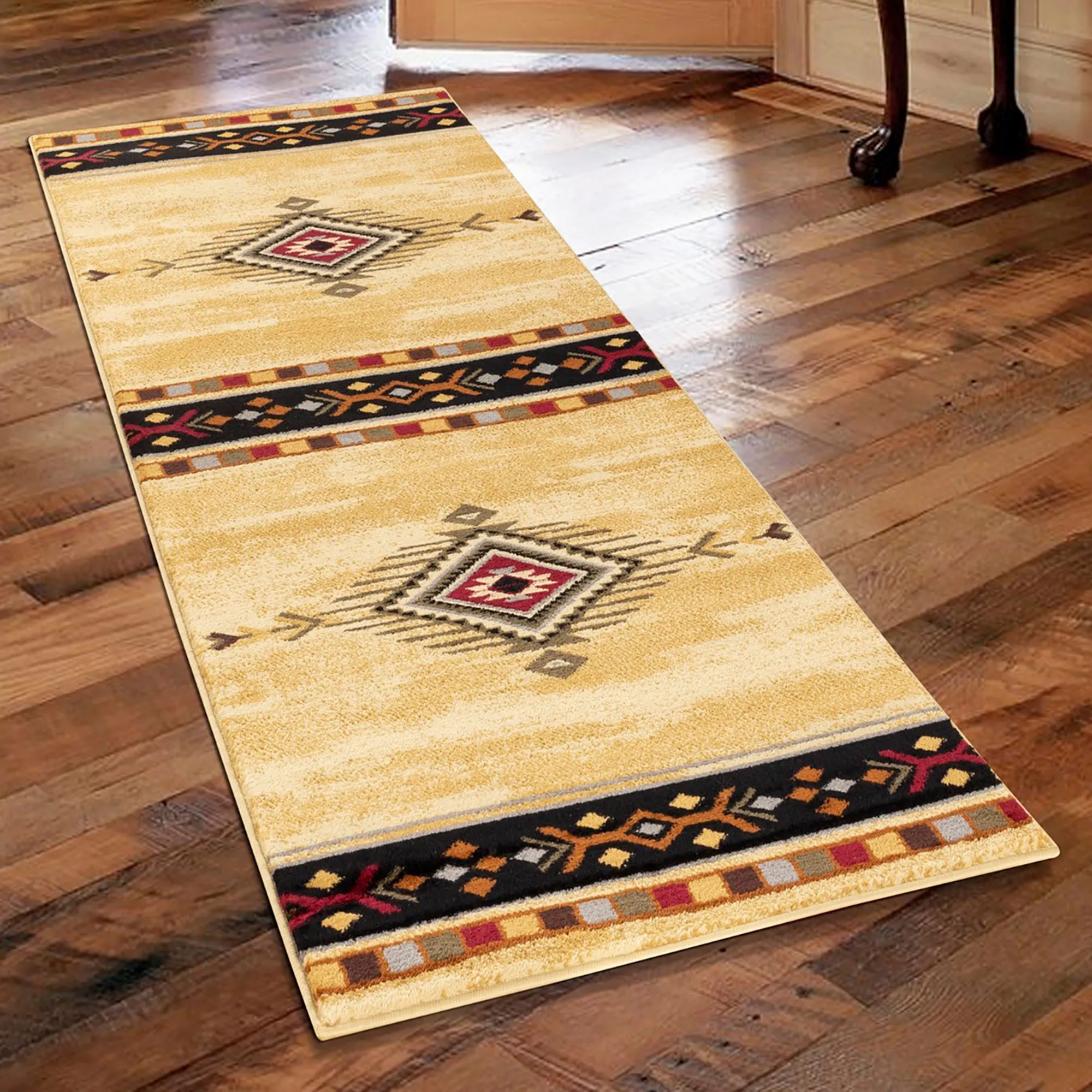 Diamond designs and geometrics add tribal style to the Southwest Fever Cream Rug. The polypropylene area rug, .39" thick, has unique motifs with a distressed appearance. The cream coloration includes shades of wine, ivory, gray, gold, tan, black, and brown. Backing is jute. We recommend professional cleaning by a rug cleaner. Imported.